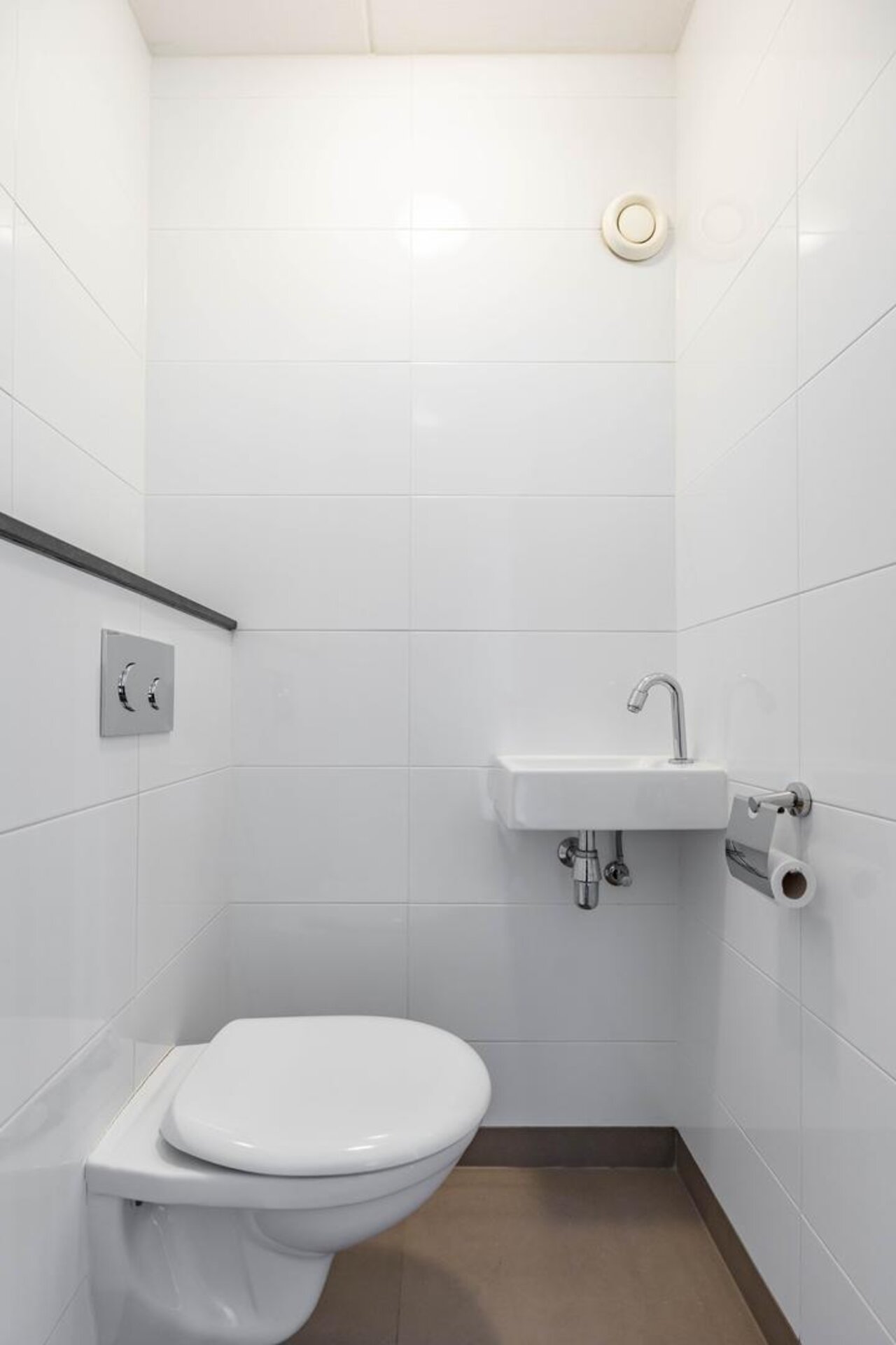 Entree/hal met meterkast en toilet voorzien van wandcloset en fonteintje. De lichte woonkamer aan de achterzijde is circa 29 m² groot en biedt via een schuifpui toegang tot de tuin. Aan de voorzijde vindt je de moderne open keuken, geplaatst in hoekopstelling met diverse inbouwapparatuur zoals een inductiekookplaat, afzuigkap, oven, koelkast en vaatwasser.