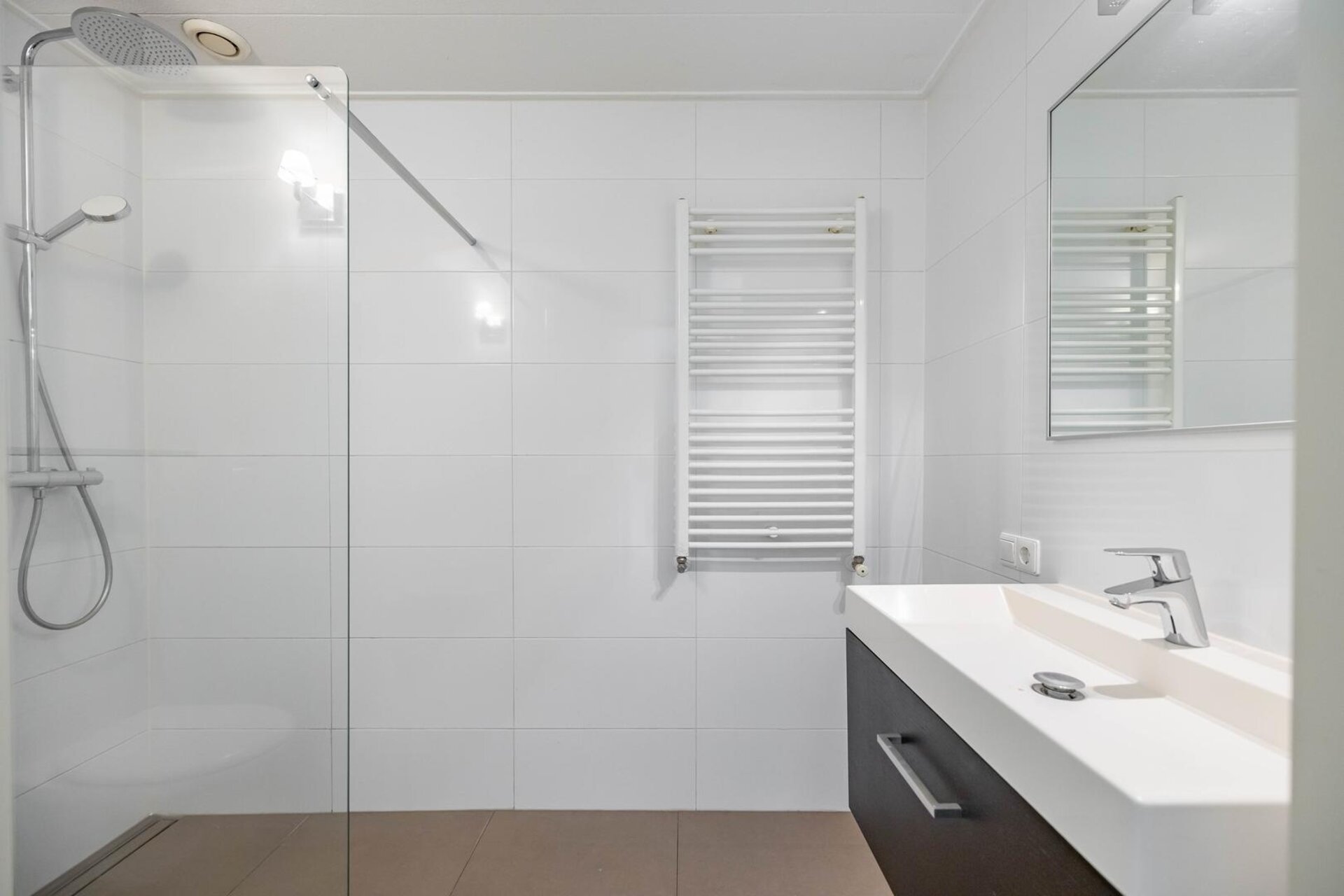 Overloop met daaraan 3 slaapkamers van respectievelijk 5 m², 6 m² en 15 m². De nette badkamer is voorzien van inloopdouche, wastafel met -meubel, designradiator en een tweede toilet.