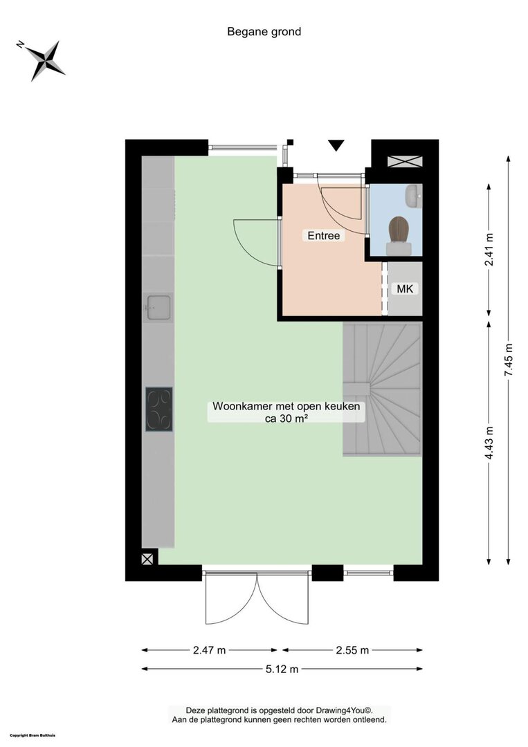 entree/hal met meterkast en toilet voorzien van wandcloset en fonteintje, fraaie woonkeuken met moderne keuken in rechte opstelling voorzien van diverse inbouwapparatuur en openslaande deuren naar de zonnige tuin op het westen!