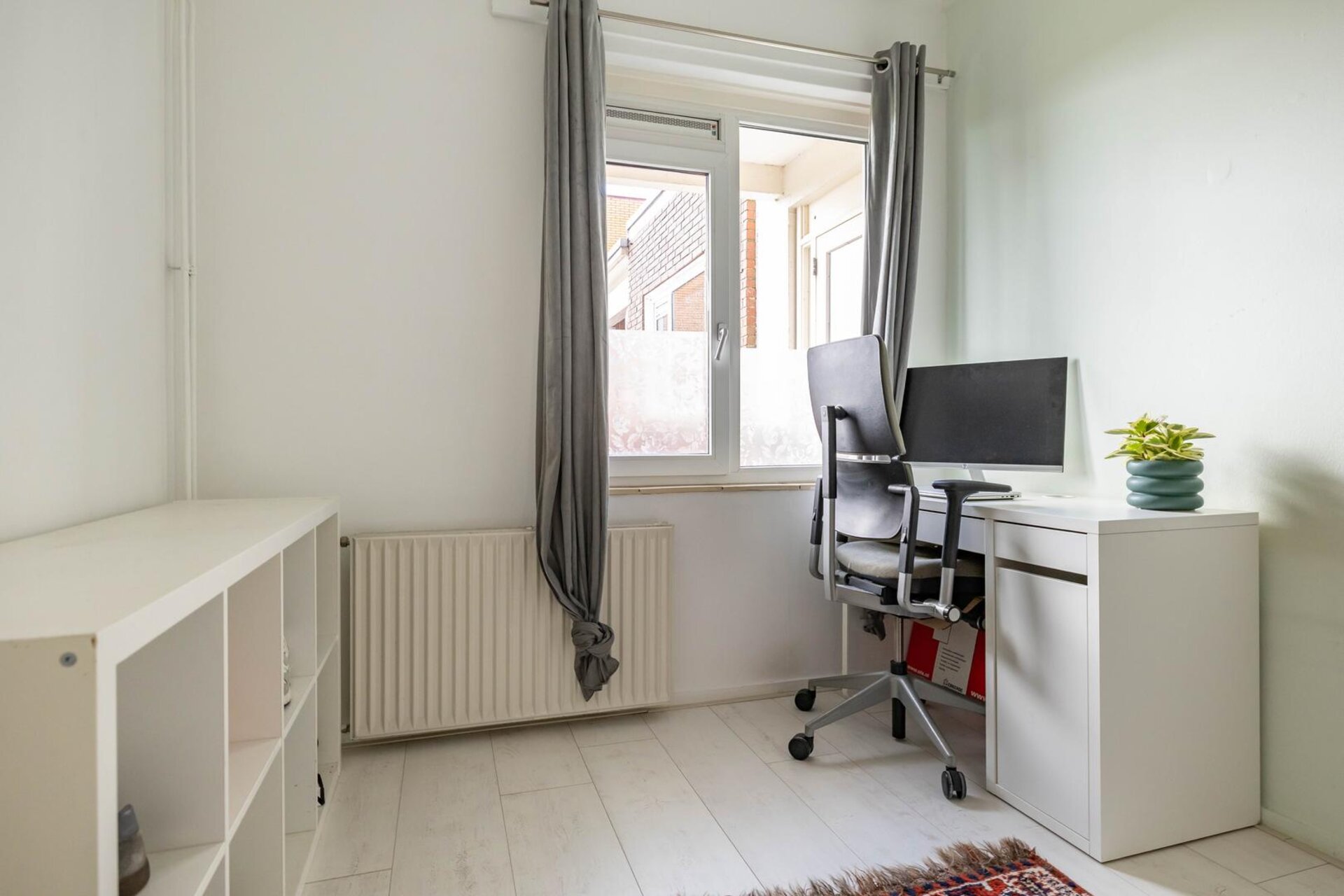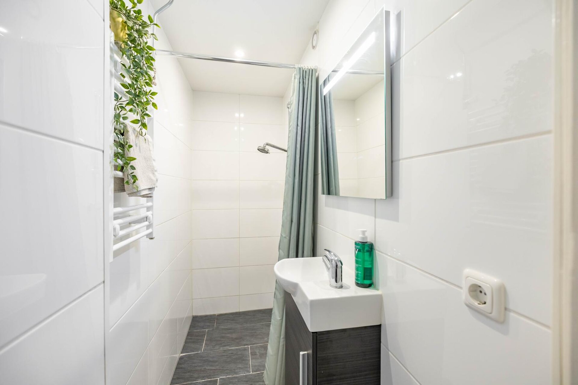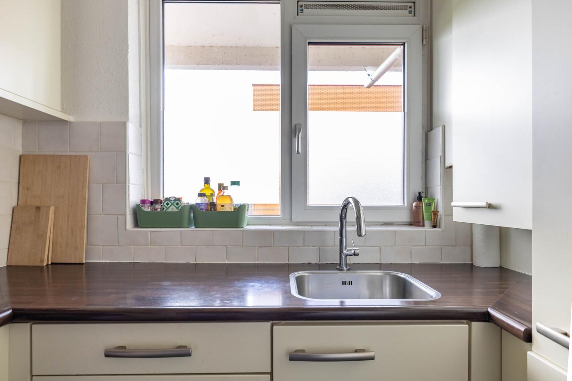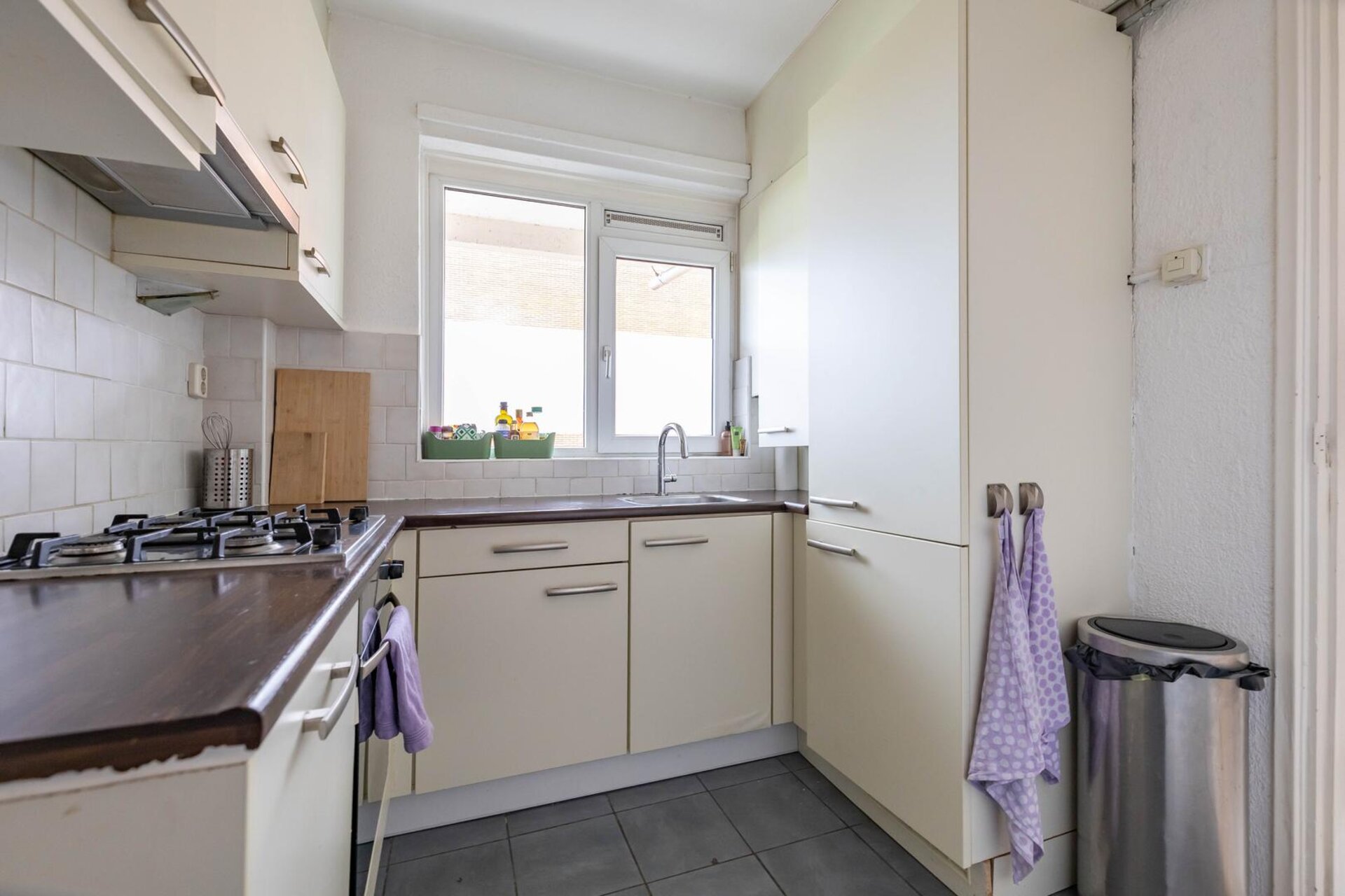 Galerij - entree, hal, toilet, dichte keuken met nette keukeninrichting o.a. voorzien van vaatwasser, gaskookplaat en koel/vriescombinatie, vaste kast met wasmachineaansluiting. Vernieuwde badkamer met inloopdouche, handdoekradiator en wastafelmeubel. Heerlijk lichte woonkamer met laminaatvloer en toegang naar het balkon aan de voorzijde op het zuidwesten. Twee slaapkamers van 10 en 8 m², beide voorzien van een vaste kast.