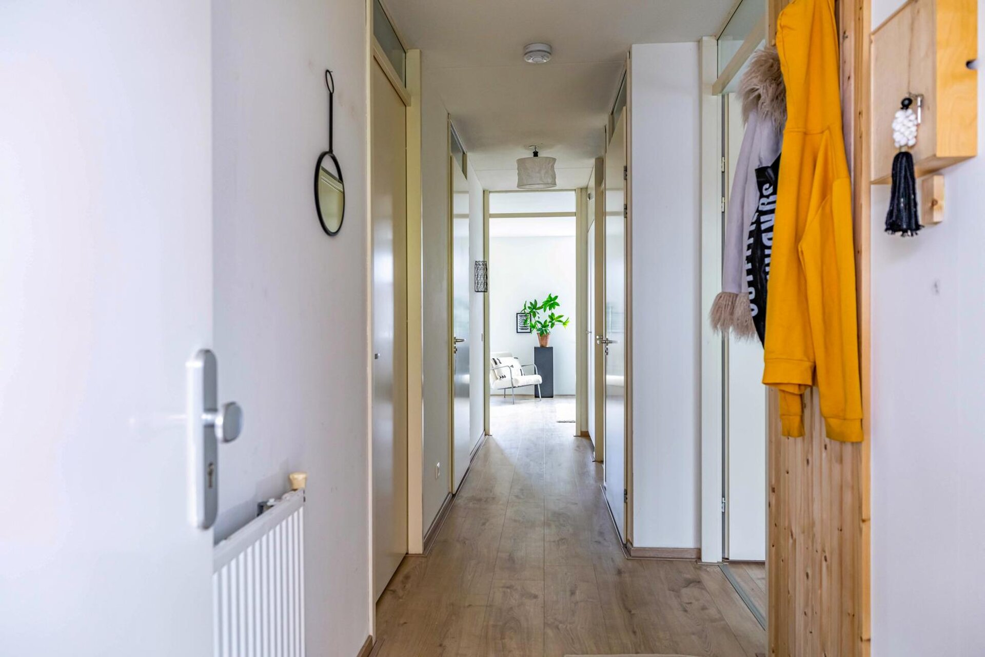 Entree/hal met toegang tot twee slaapkamers, respectievelijk te weten circa 12 en 9 m². De badkamer (ca. 5 m²) is voorzien van een wastafel en douche. Vanuit de hal heeft u tevens toegang tot het separate toilet (ca. 1 m²). De woonkamer (ca. 23 m²) is licht en ruim en is voorzien van een open keuken (ca. 4 m²). De keuken is voorzien van inbouwapparatuur.