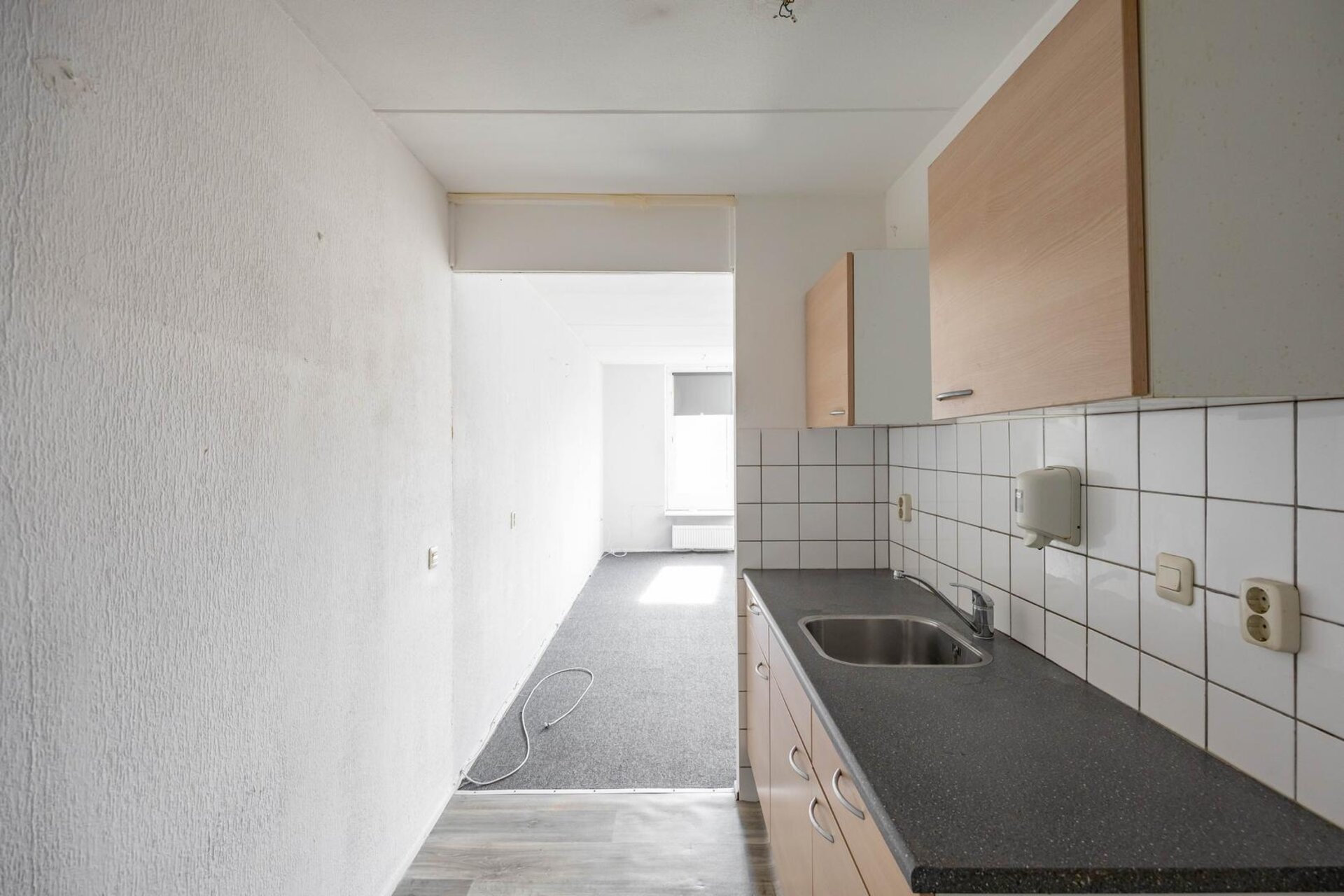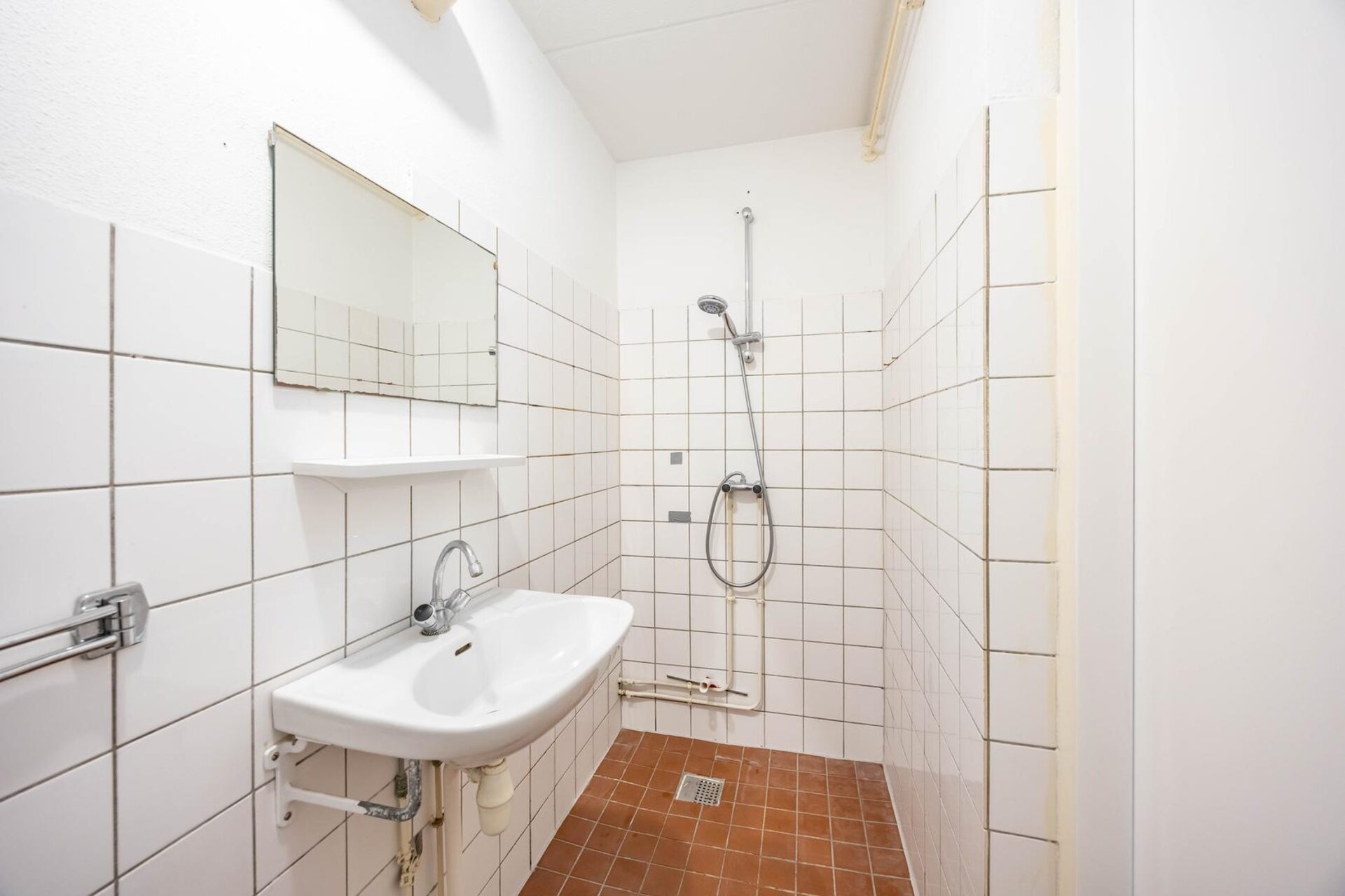 Entree/hal, toilet met fonteintje. Vanuit de hal bereikt u de slaapkamer van 12 m² en de badkamer (ca. 3 m²) voorzien van douche en wastafel. De lichte woonkamer is circa 21 m² groot en biedt toegang tot het balkon (ca. 3 m²). De half open keuken (ca. 6 m²) is voorzien van een keukenblok geplaatst in rechte opstelling.