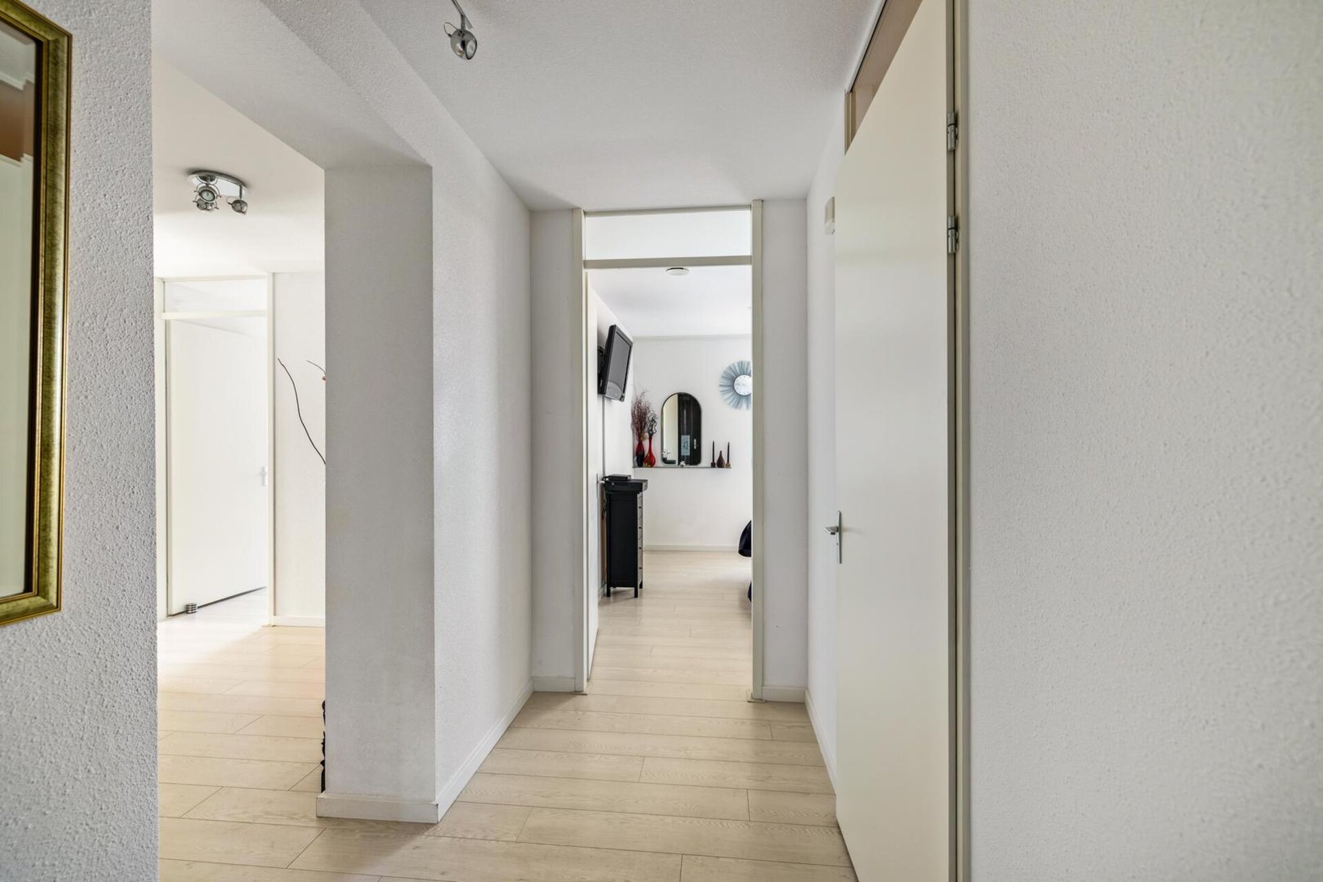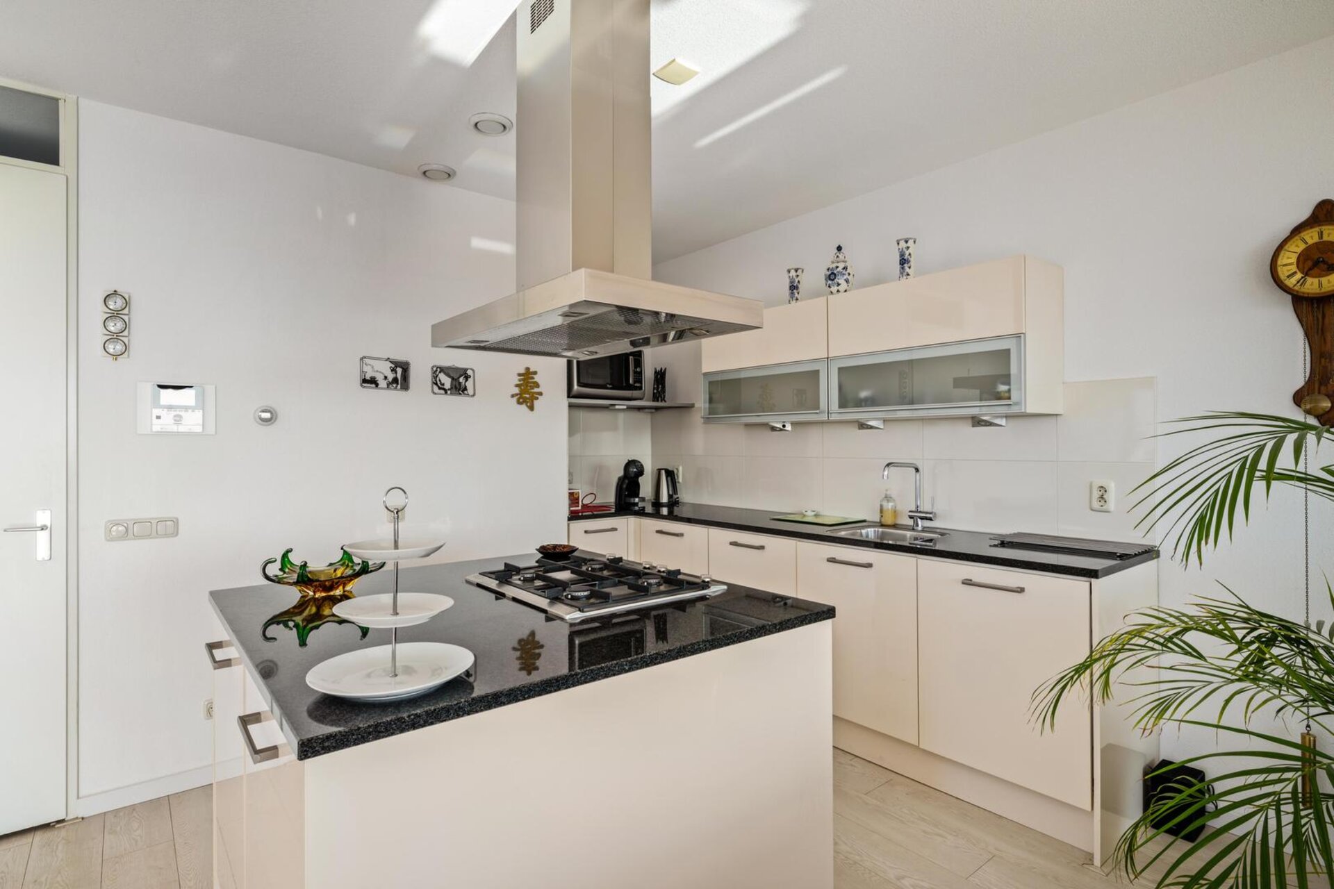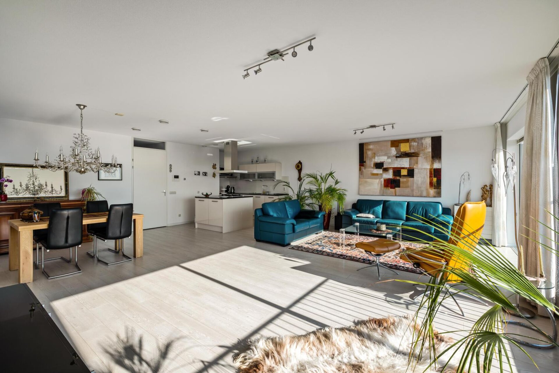 Ruime hal met toegang tot alle vertrekken, waaronder een berging (circa 5 m²), stookruimte en separaat toilet voorzien van wandcloset en fonteintje. De royale woonkamer van circa 60 m² beschikt over een nette laminaatvloer en moderne open keuken met kookeiland, uitgerust met diverse inbouwapparatuur. Dankzij de vele grote raampartijen heeft de woonkamer veel natuurlijk lichtinval. Drie ruime slaapkamers van respectievelijk 9 m², 12 m² en 15 m², alle met een fraai uitzicht over de binnenstad. De badkamer (circa 10 m²) is voorzien van inloopdouche, ligbad, dubbele wastafel met -meubel en een tweede toilet.