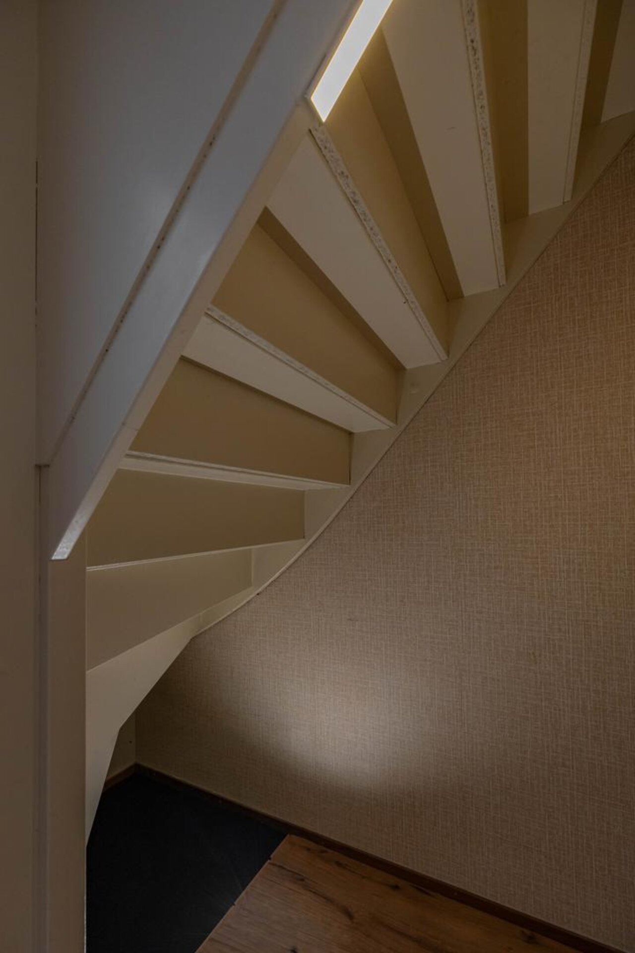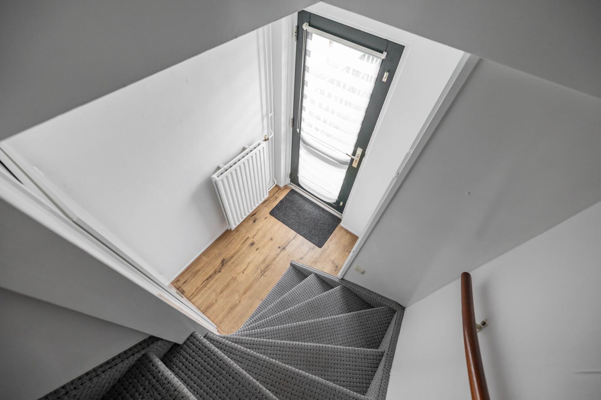 Entree, meterkast, bergruimte onder de trap, via de trapopgang naar de 2e etage: