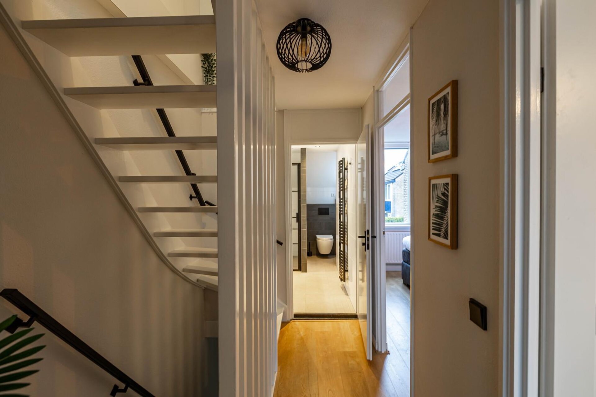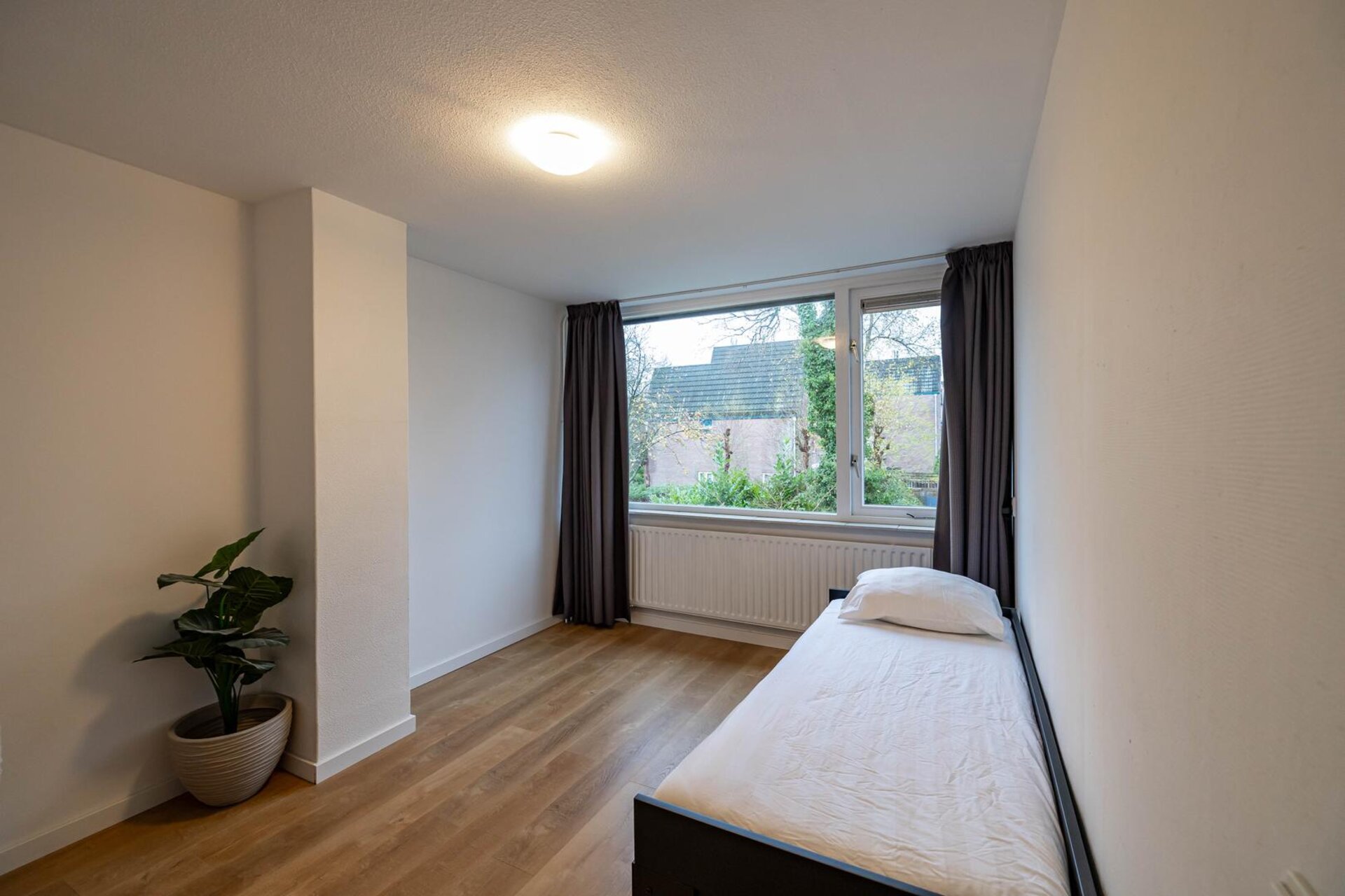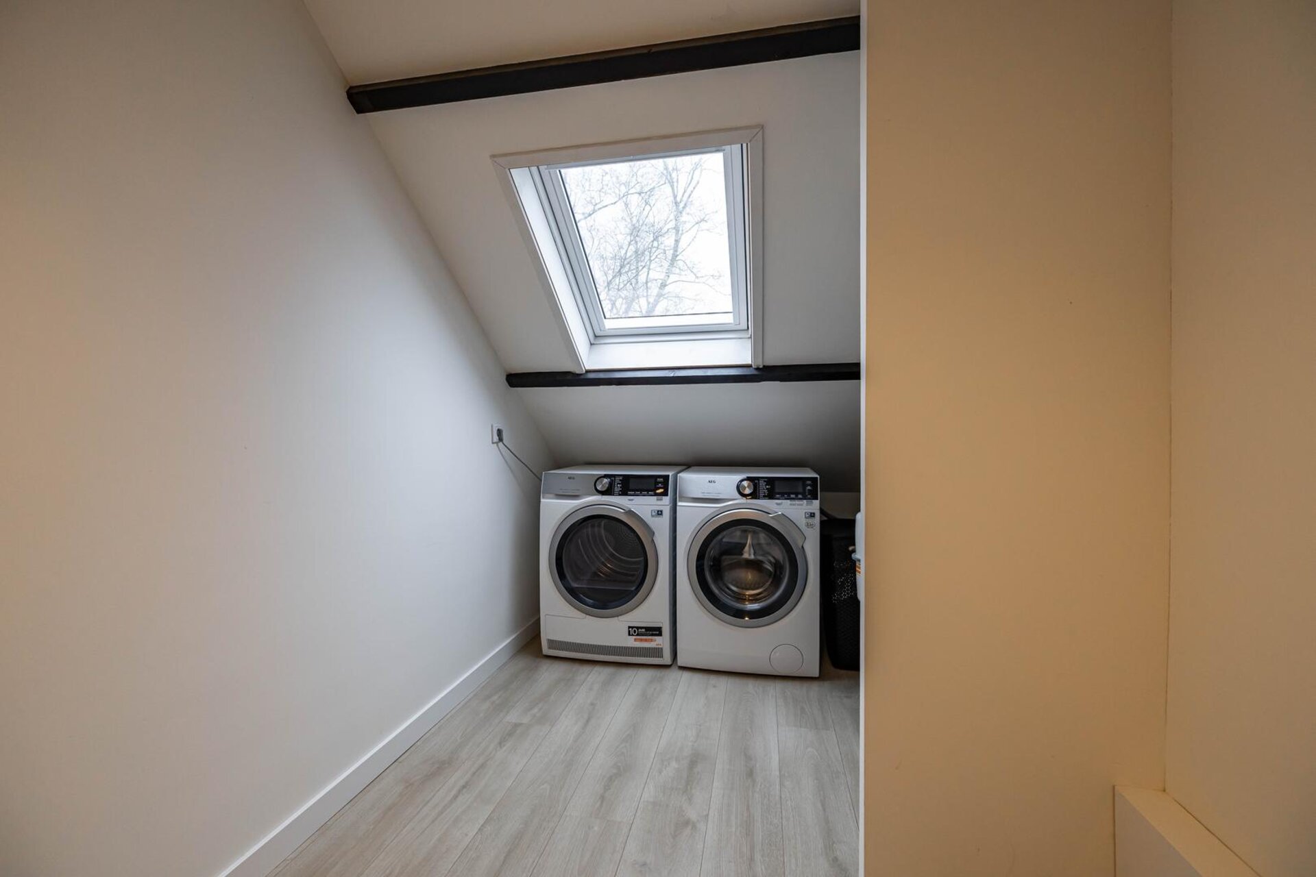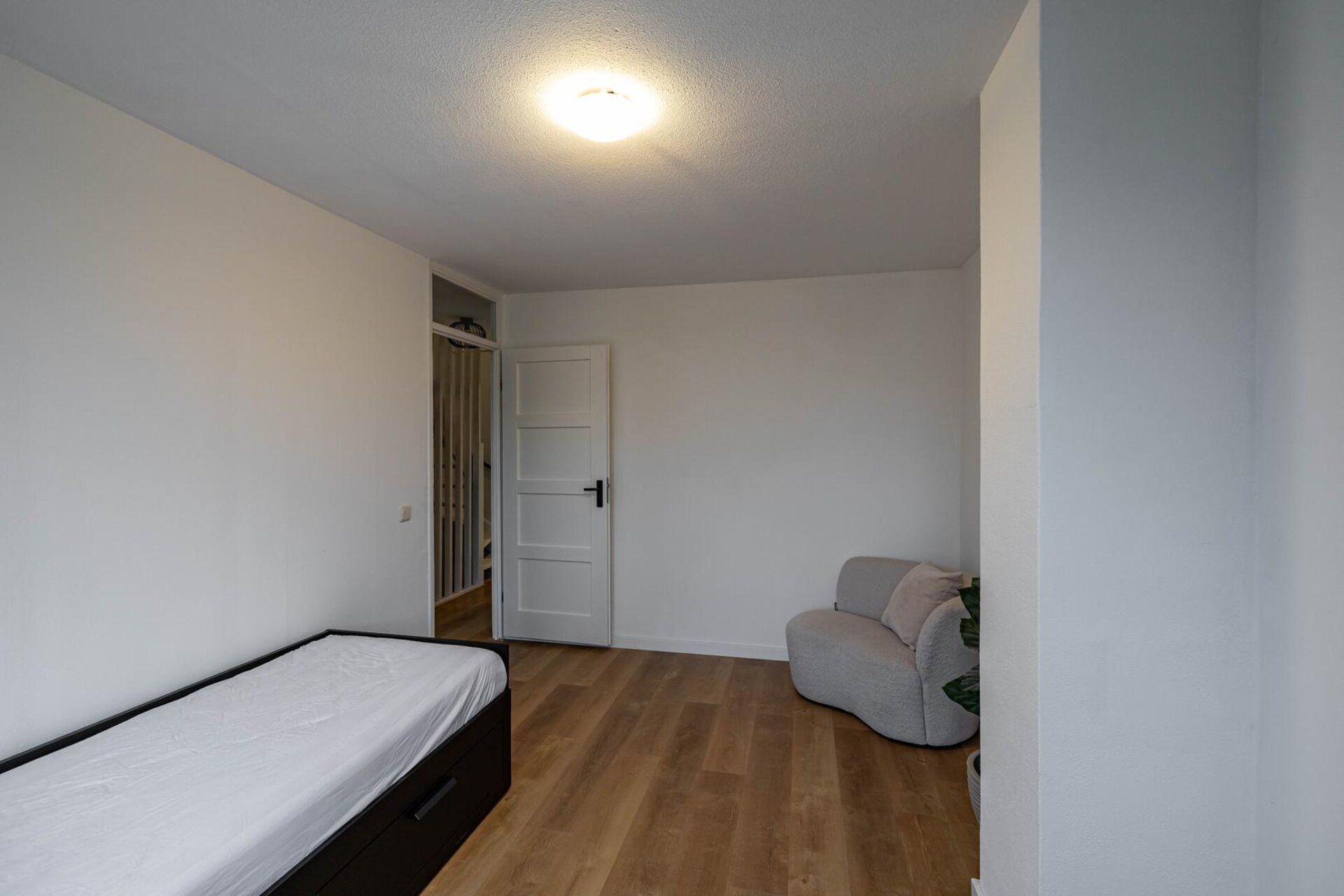 De verdieping is in 2021 volledig gerealiseerd en bestaat uit een overloop met bergruimte, witgoedaansluitingen, cv-ketel en een slaapkamer (ca 11 m²).