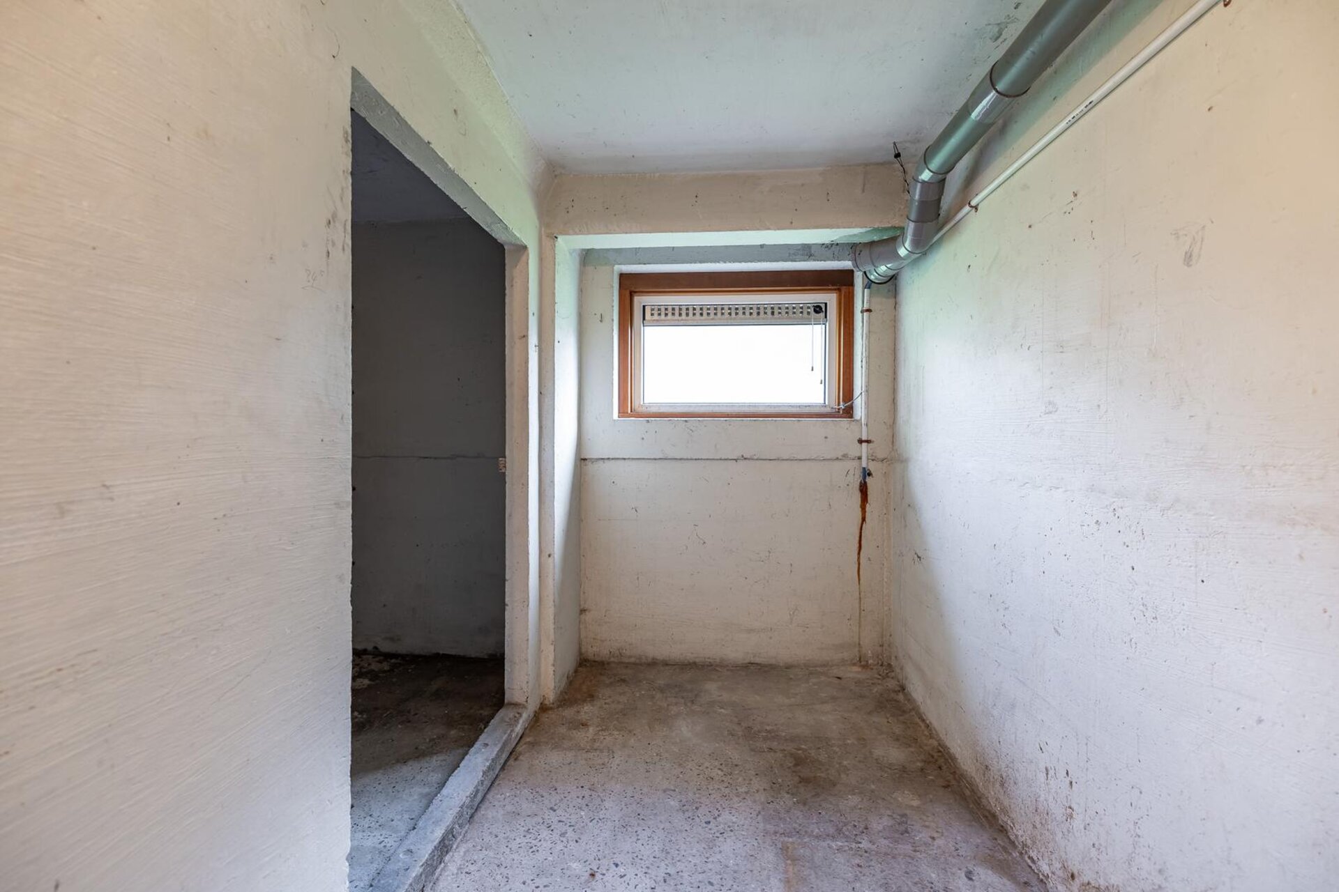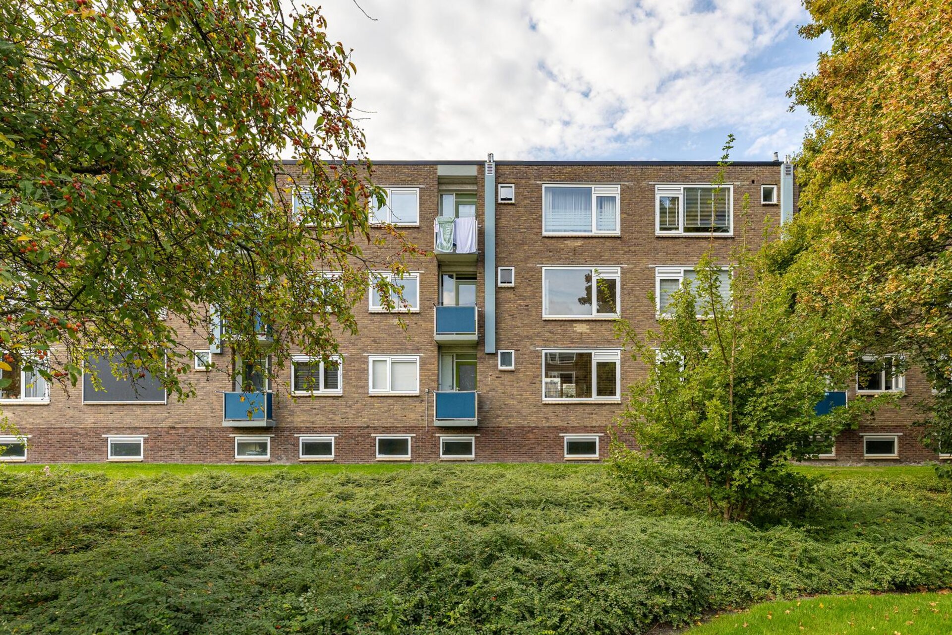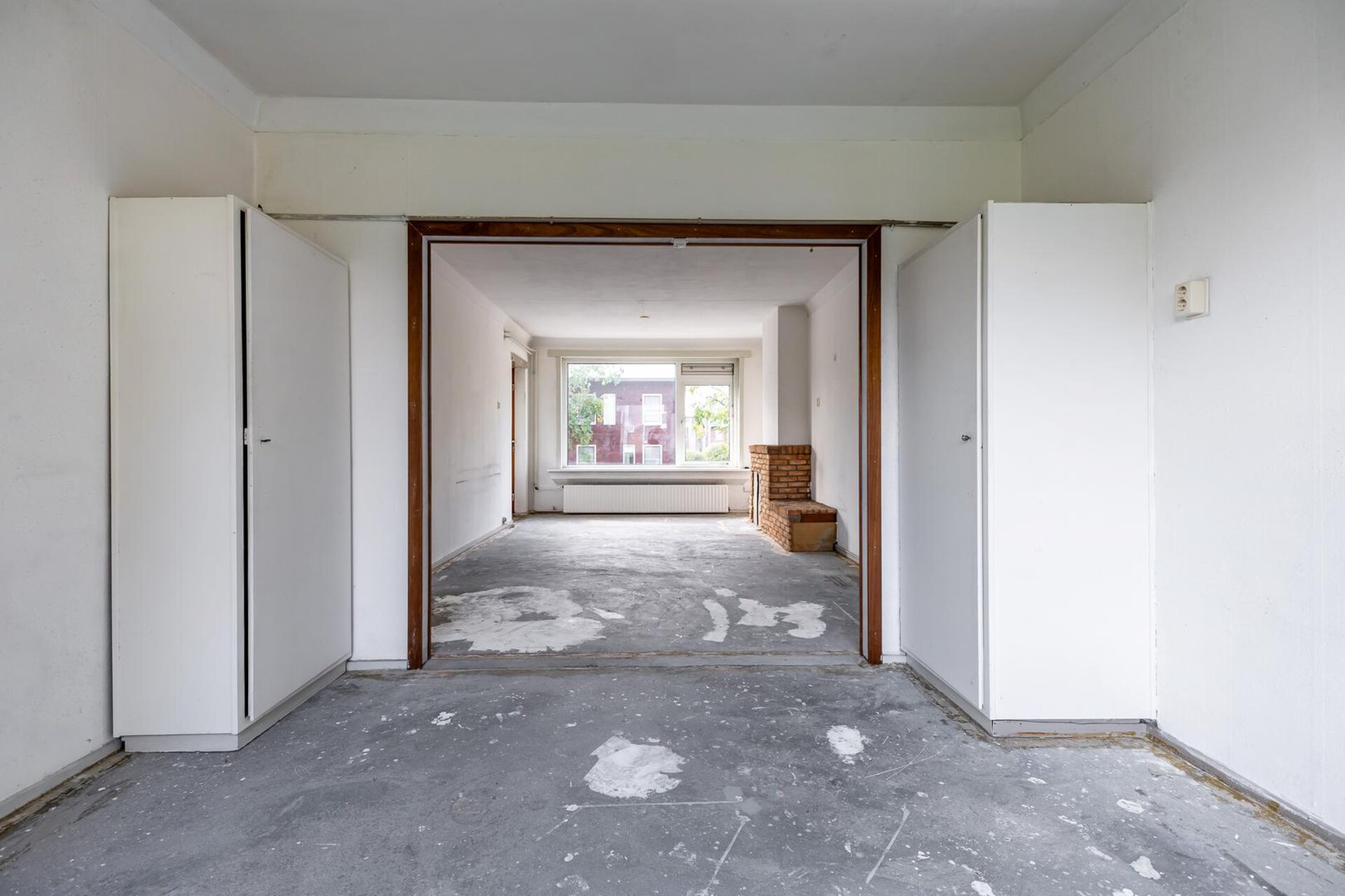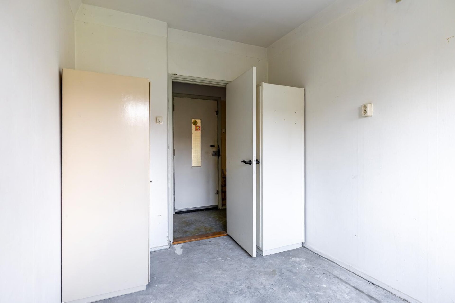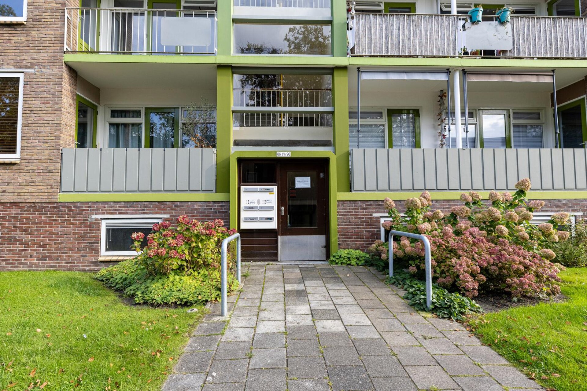 Afgesloten portiek met intercom, trapopgang en toegang tot de inpandige bergingen in het souterrain.