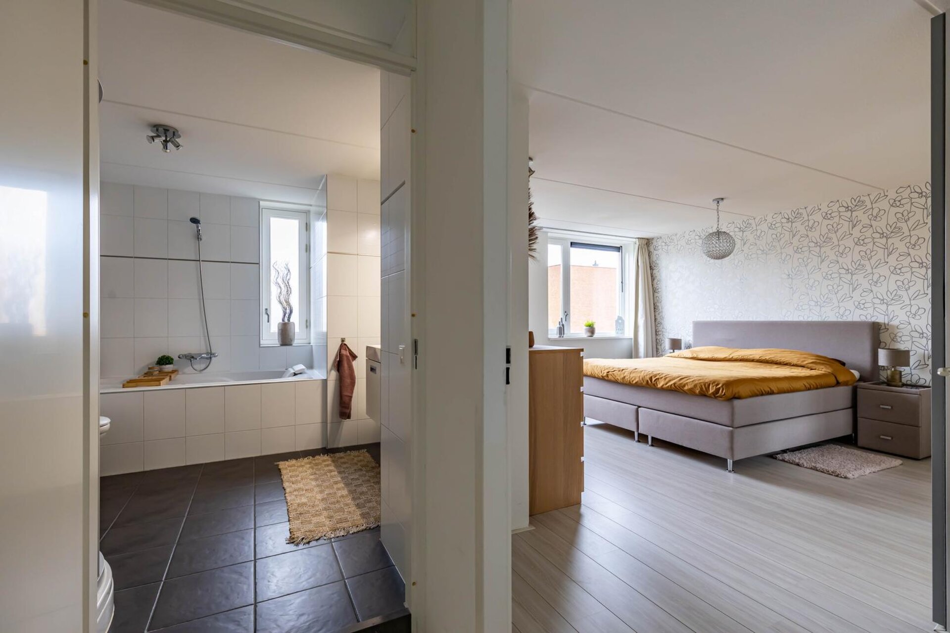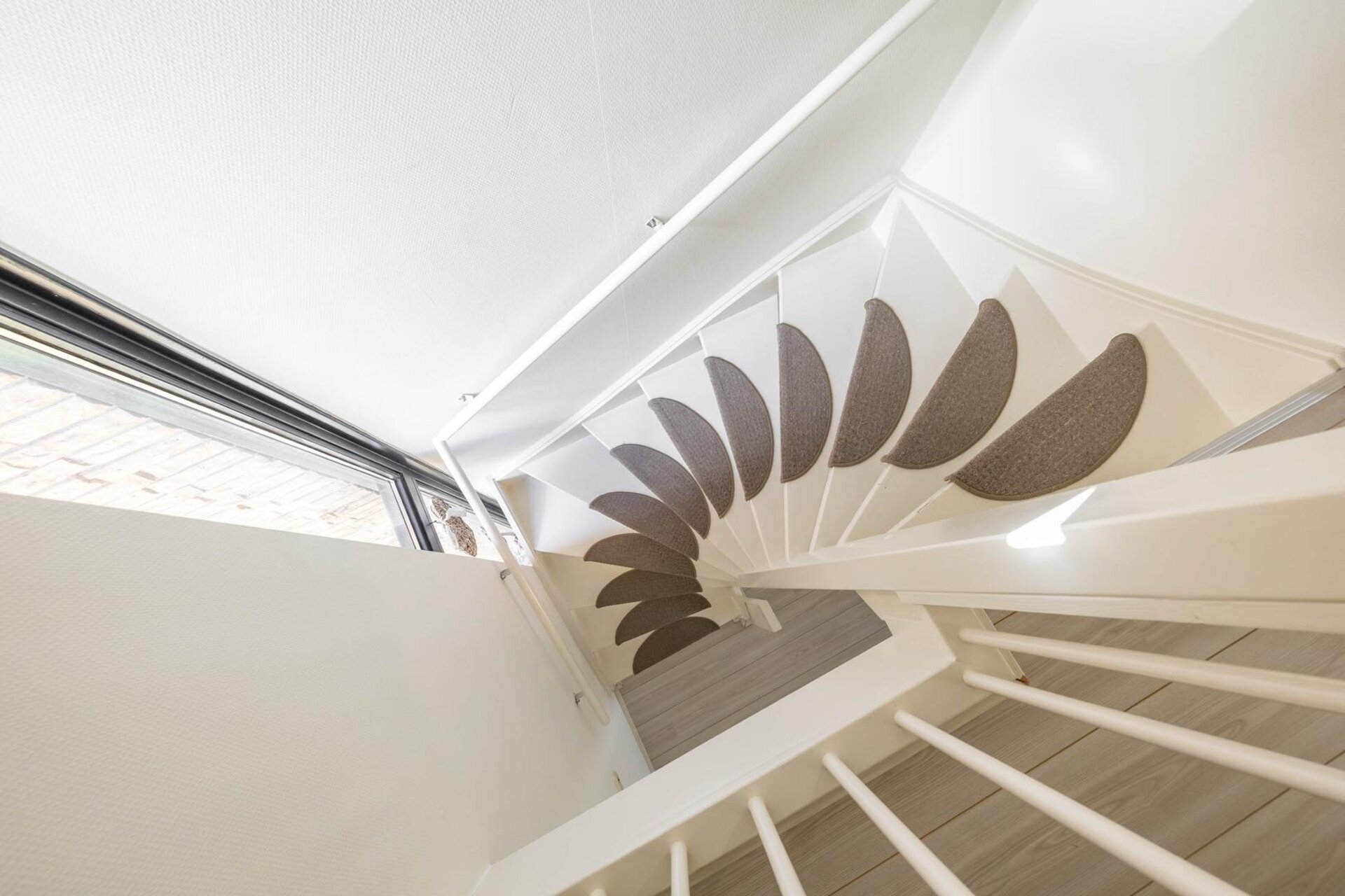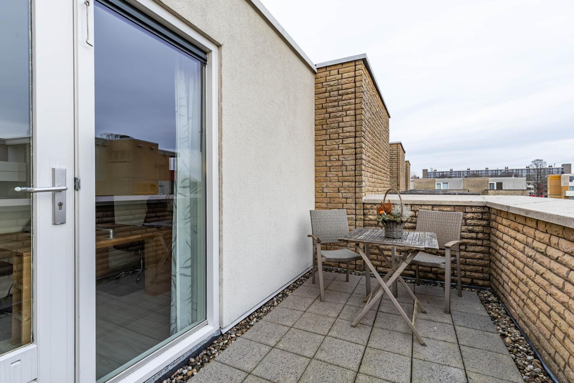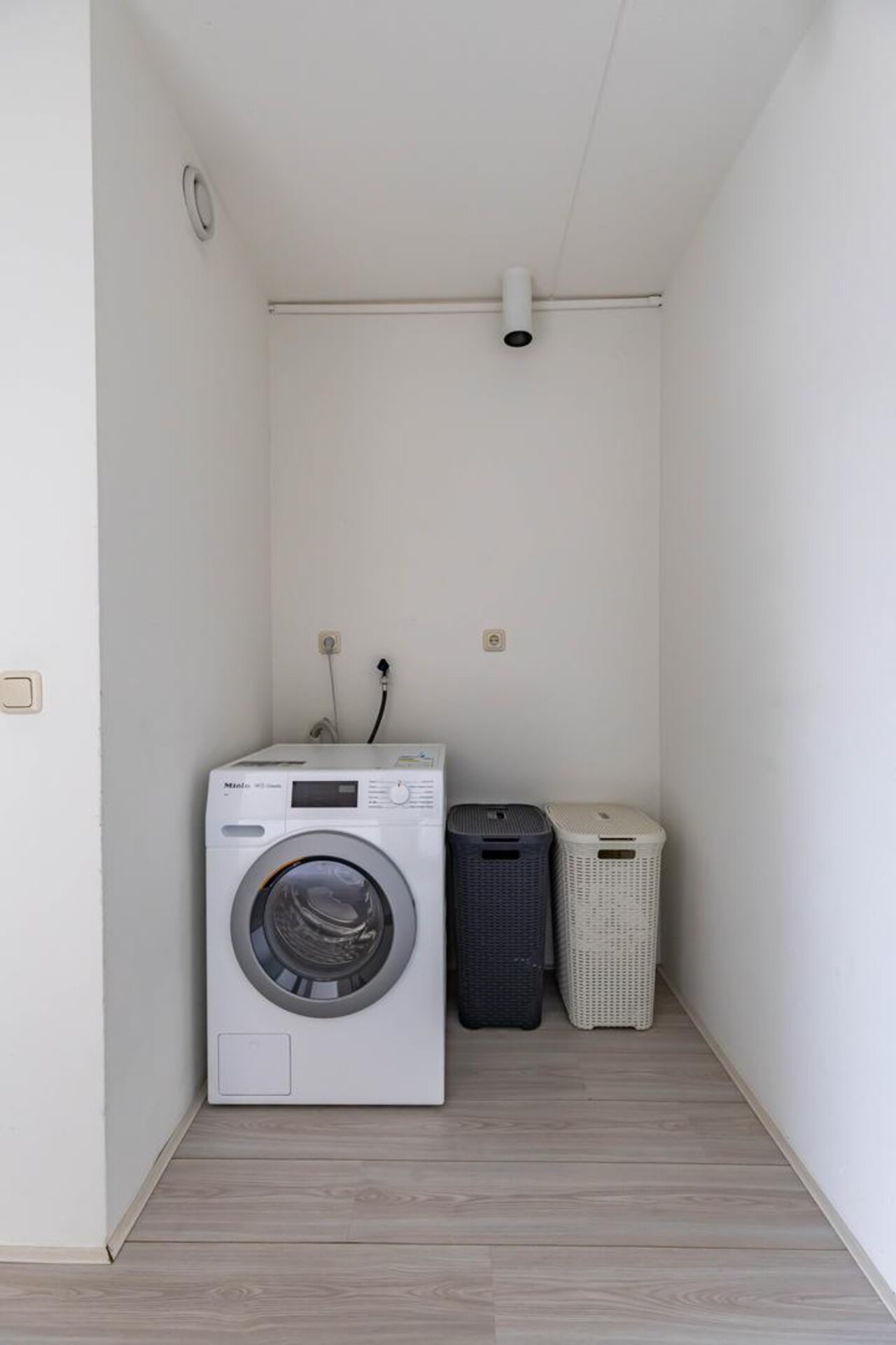 Overloop met witgoed-aansluiting, grote berging en 2 ruime slaapkamers van 12 m² waarvan een met toegang tot het dakterras van 9 m². Het dakterras leent zich uitstekend voor een kopje koffie in de ochtendzon.