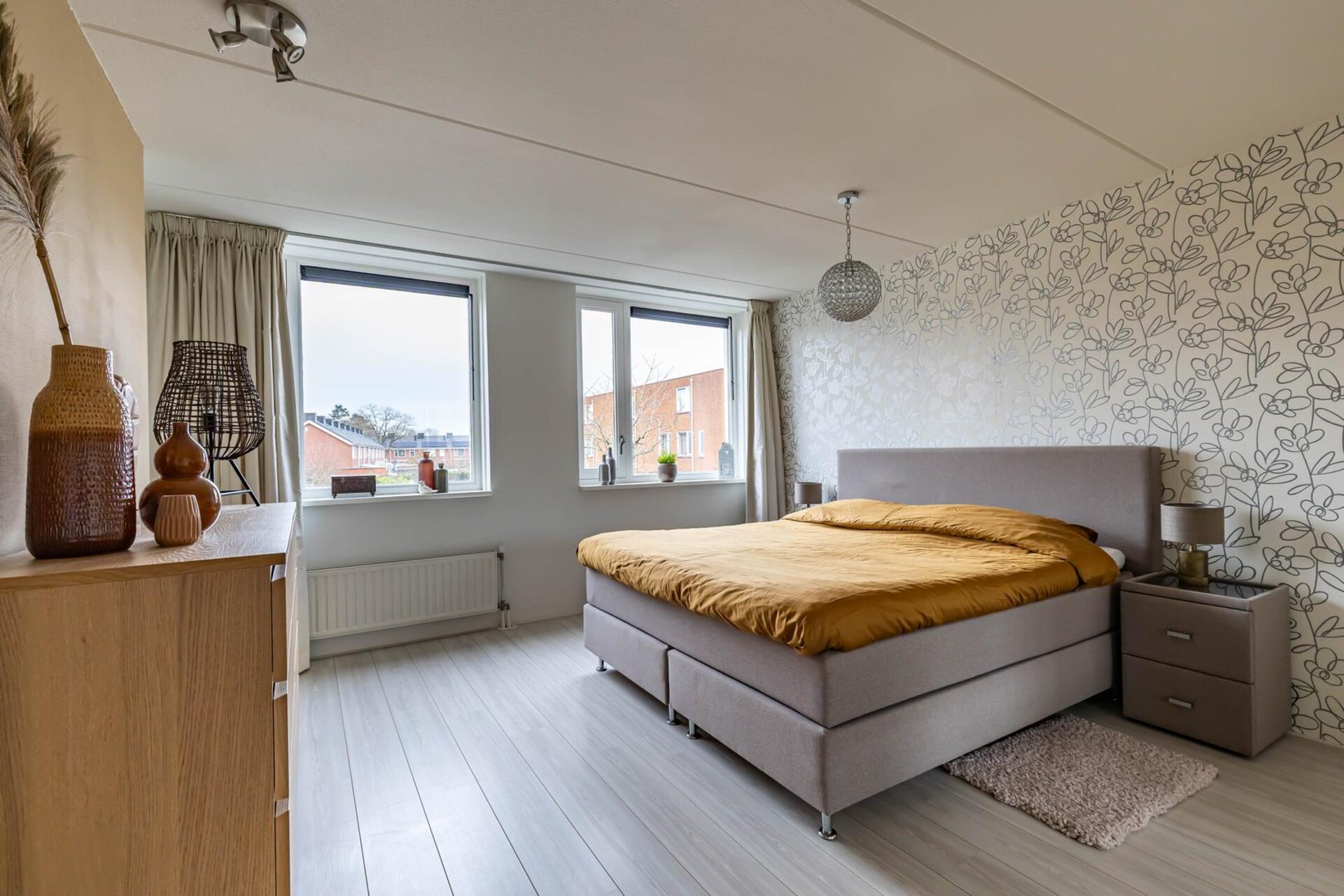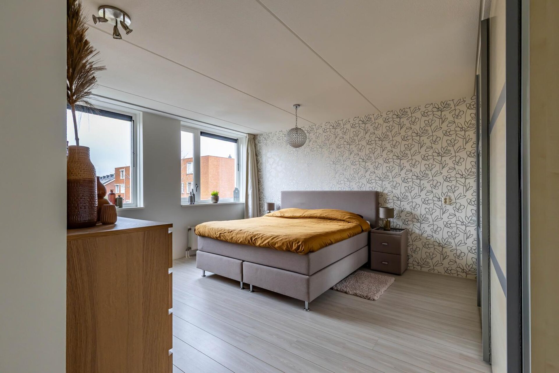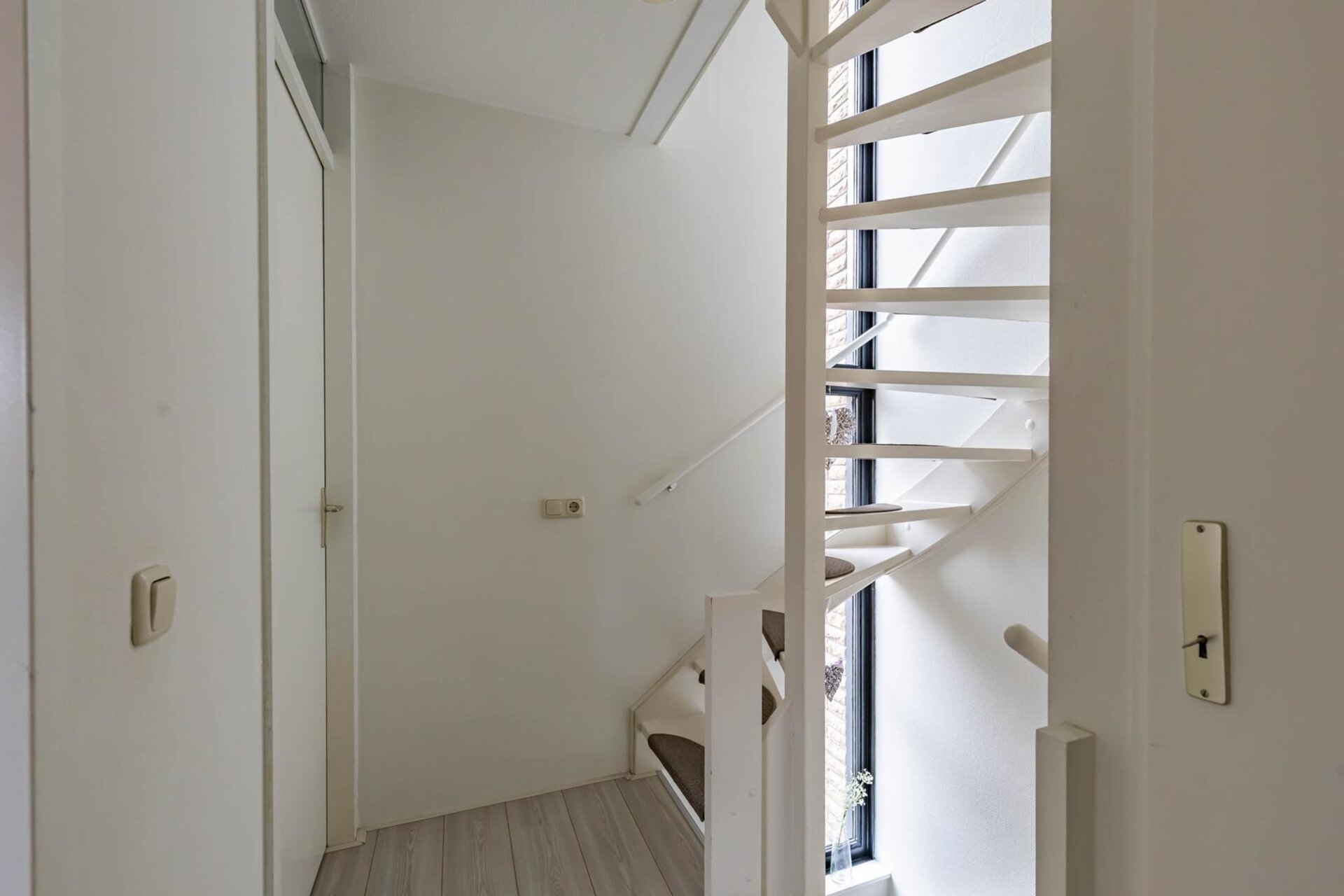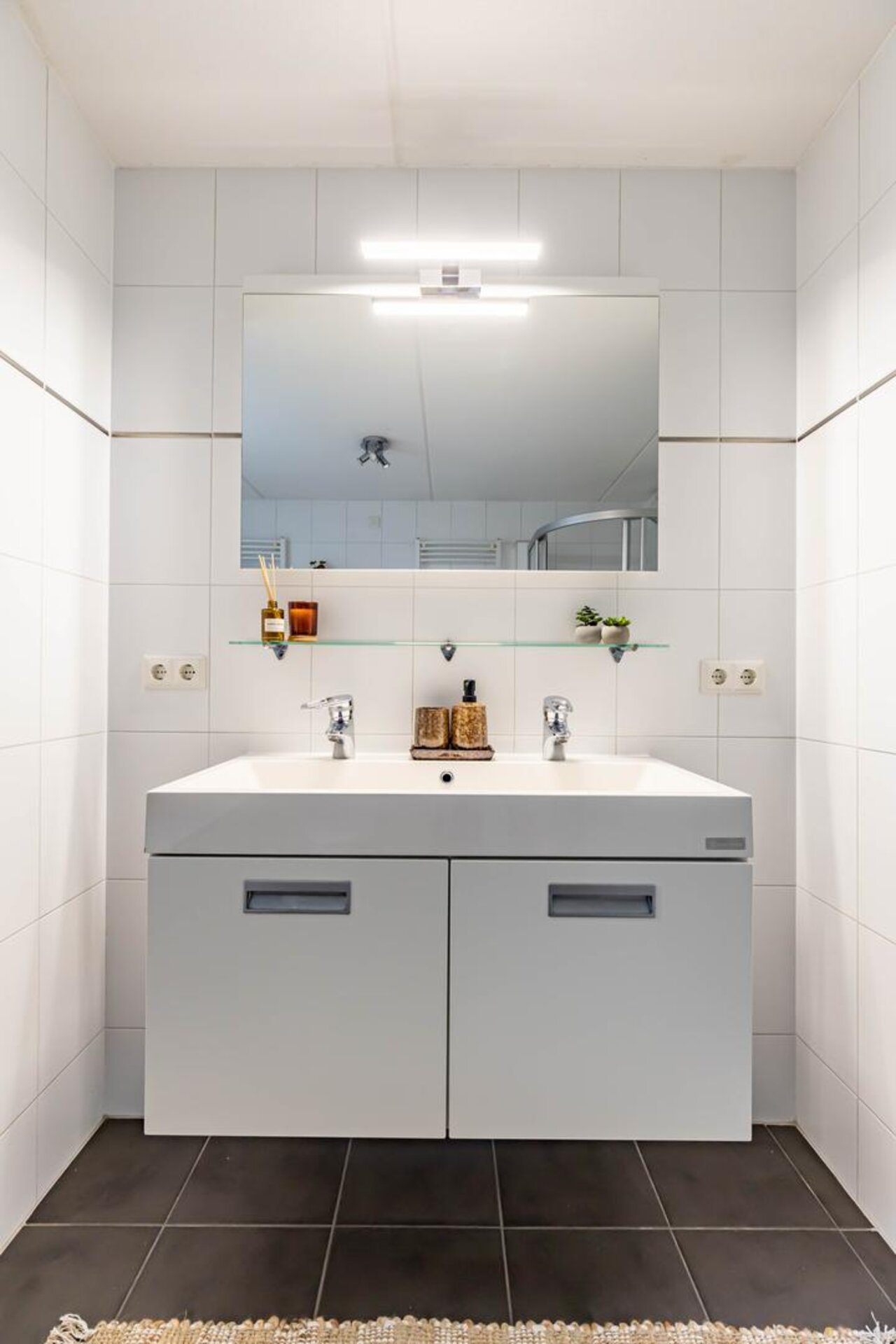 Overloop met witgoed-aansluiting, grote berging en 2 ruime slaapkamers van 12 m² waarvan een met toegang tot het dakterras van 9 m². Het dakterras leent zich uitstekend voor een kopje koffie in de ochtendzon.