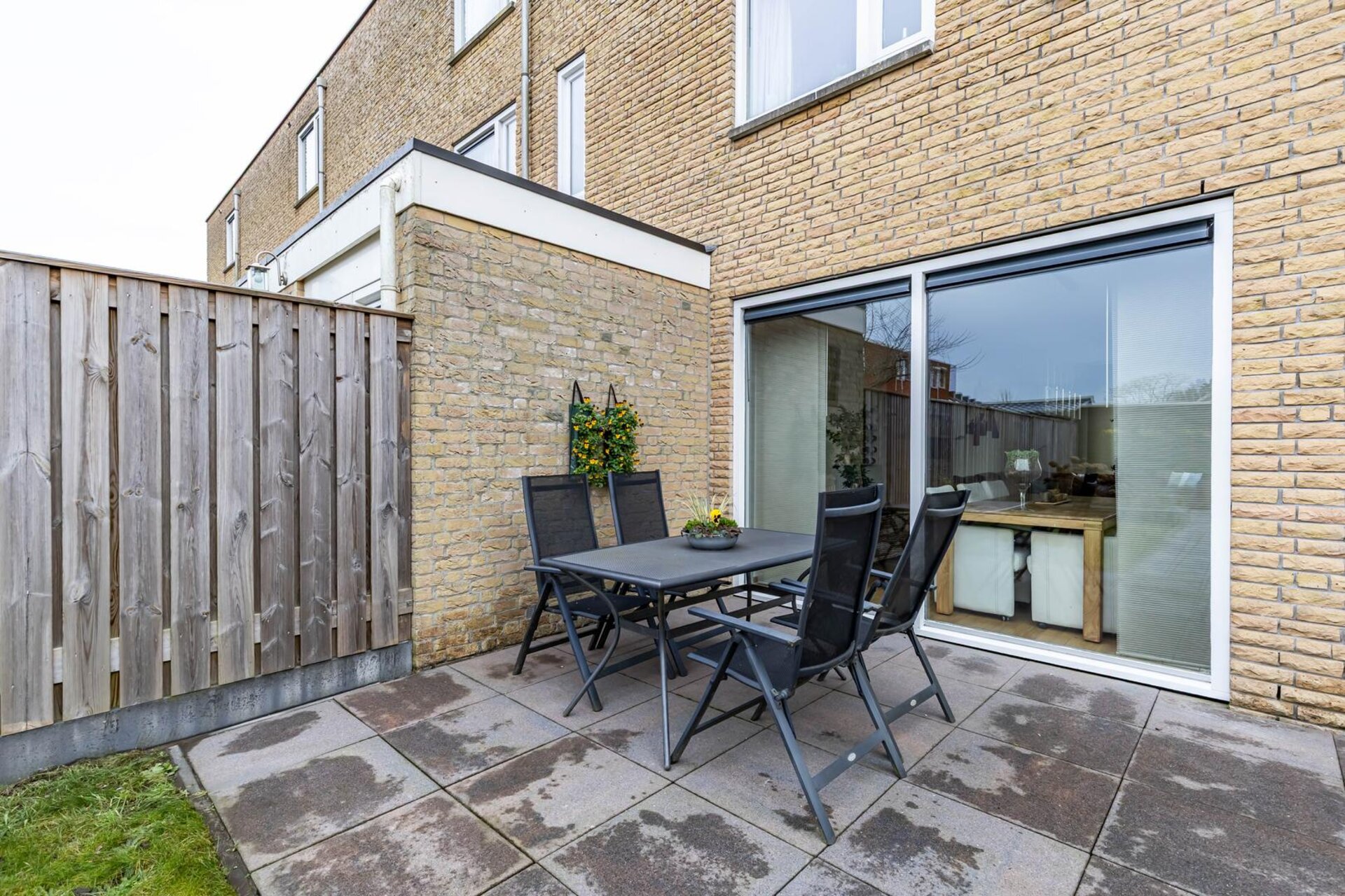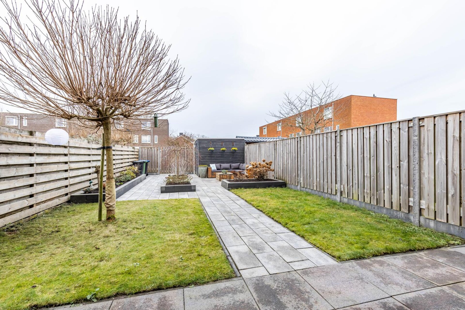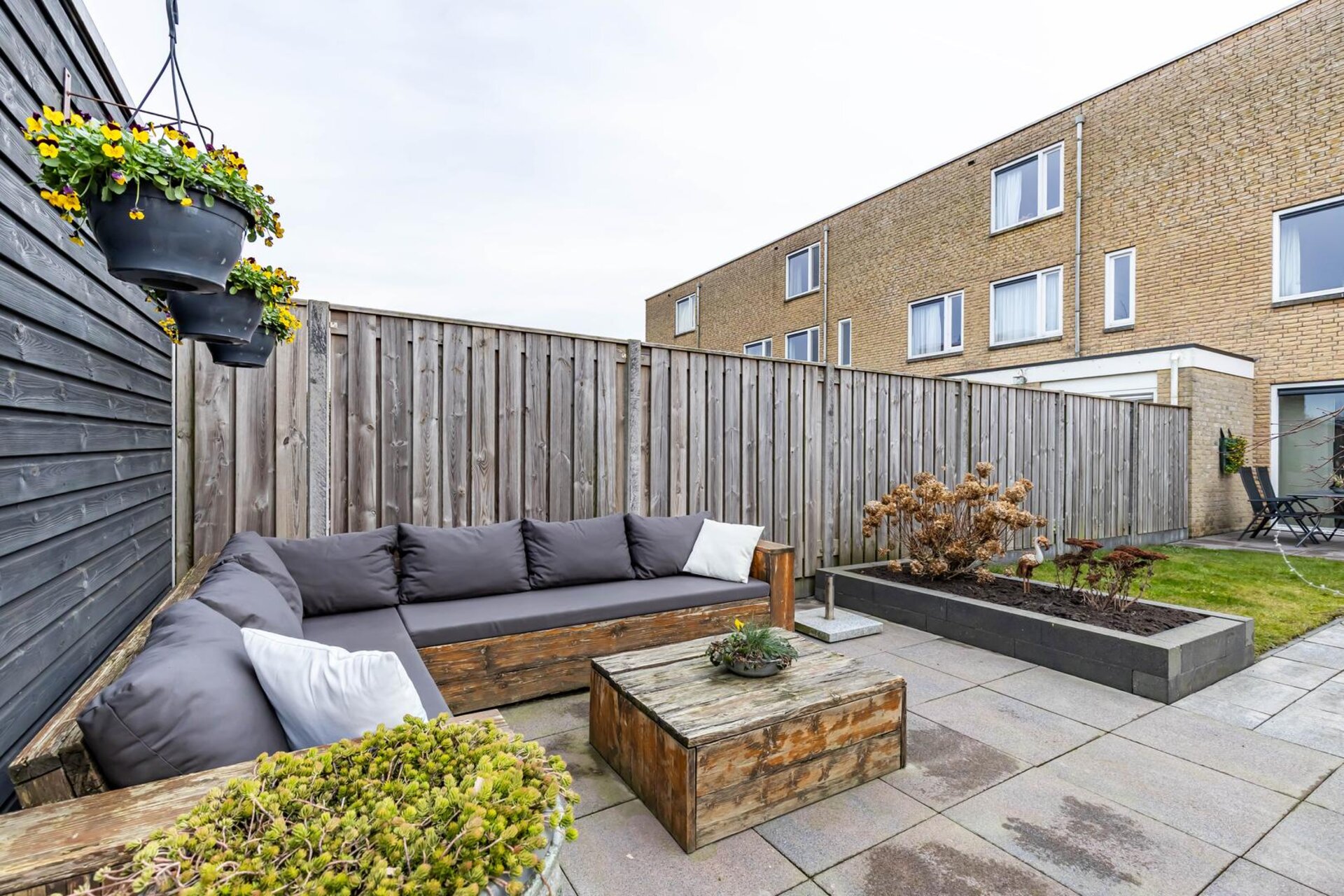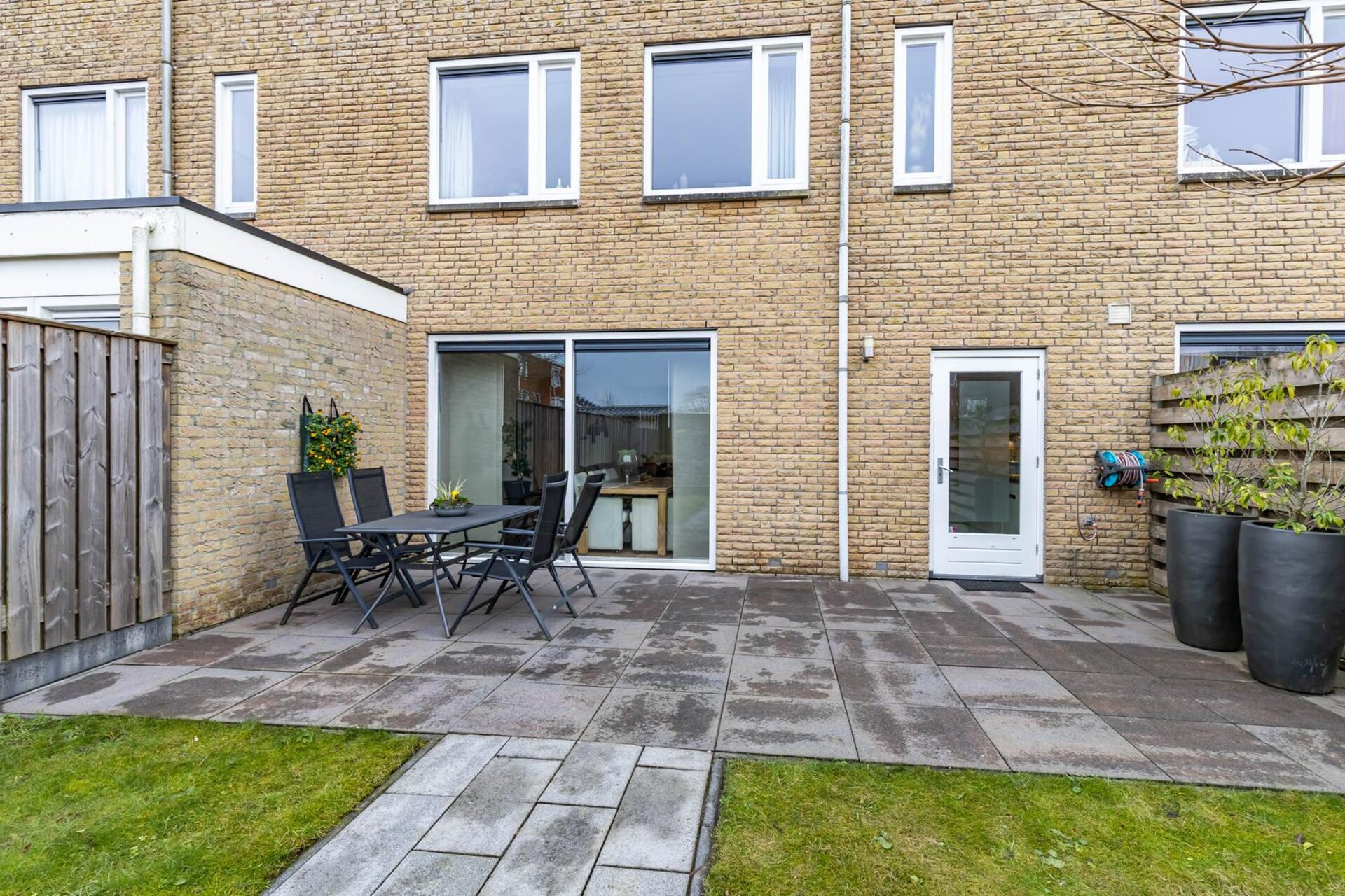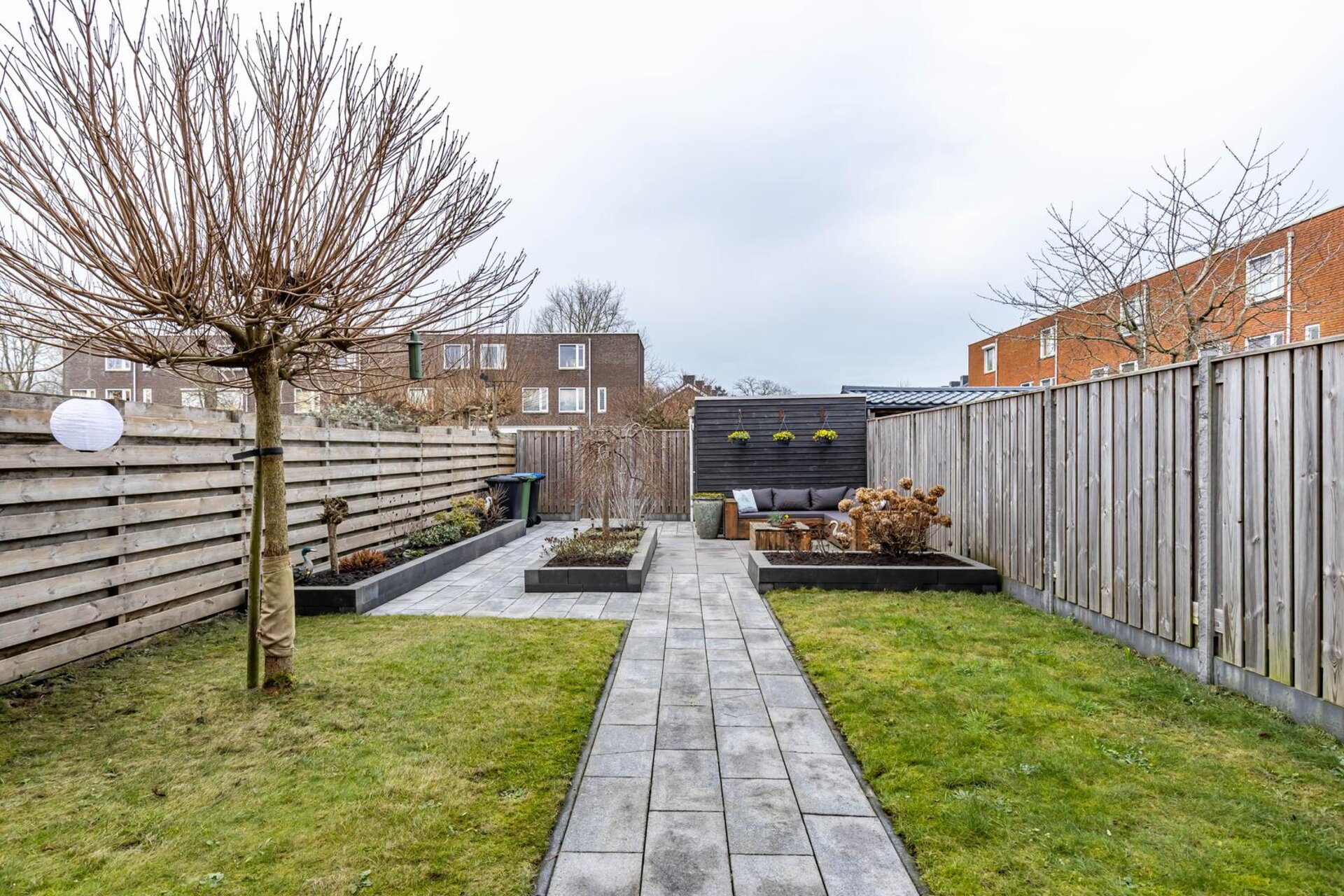 Aan de voorzijde een nette aangelegde tuin als entree naar de woning. De 18 meter diepe achtertuin is onderhoudsvriendelijk aangelegd en bevat twee terrassen waar je vanaf het middaguur tot en met zonsondergang de gehele dag kunt genieten van de zon. Deze tuin is voorzien van een achterom en het stallen van je fiets en opbergen van je tuingereedschap is geen enkel probleem in de aanwezige vrijstaande berging (9 m²).