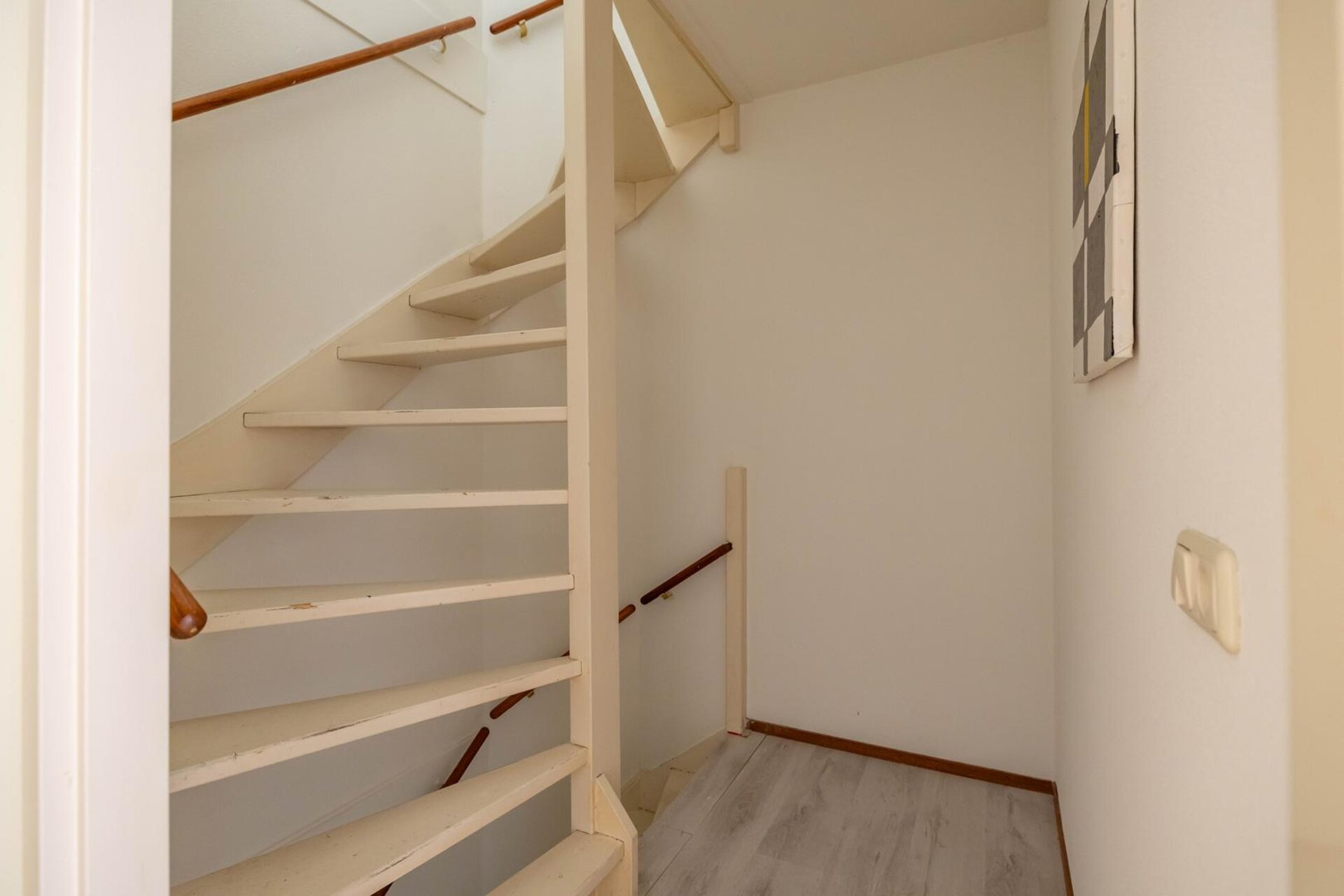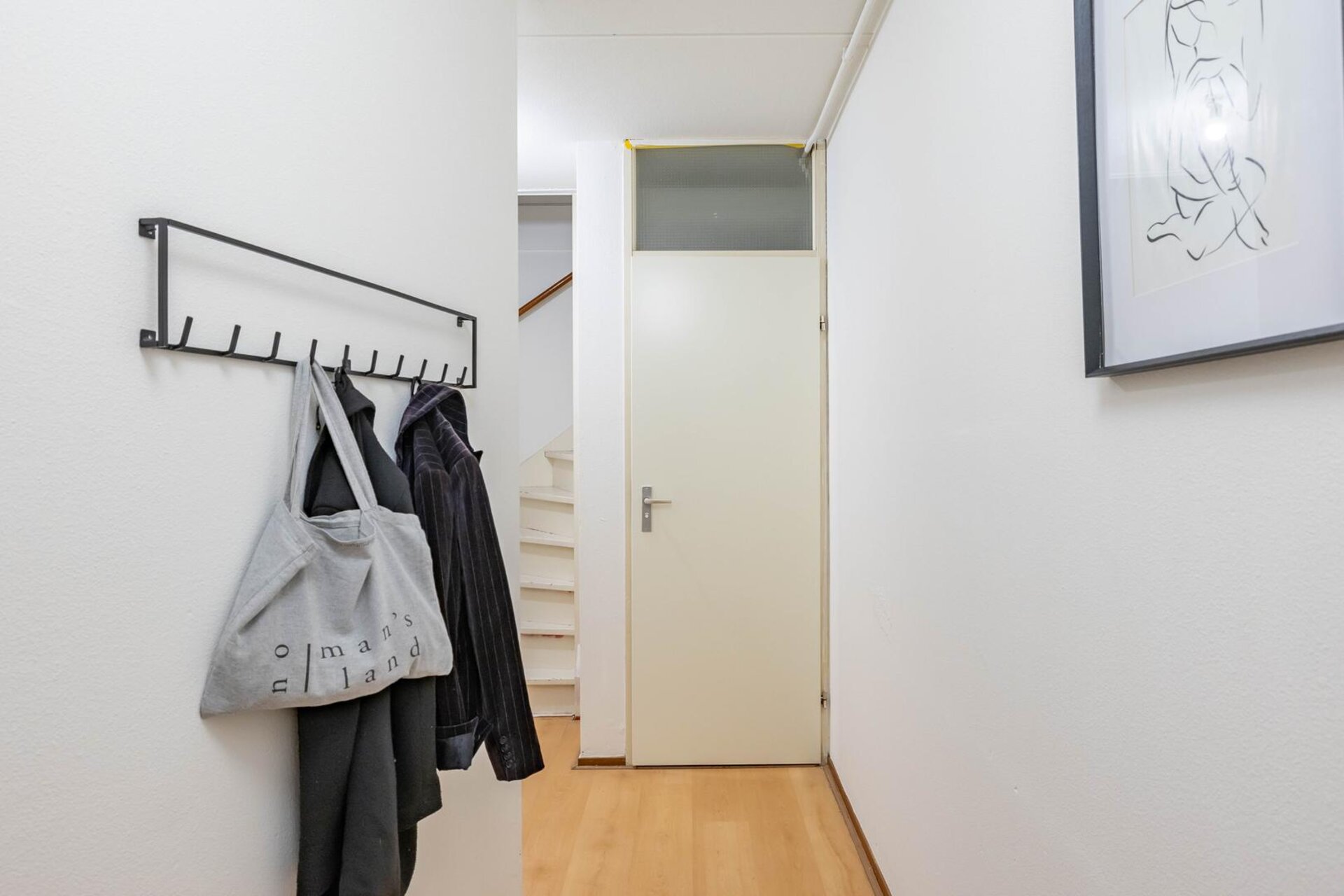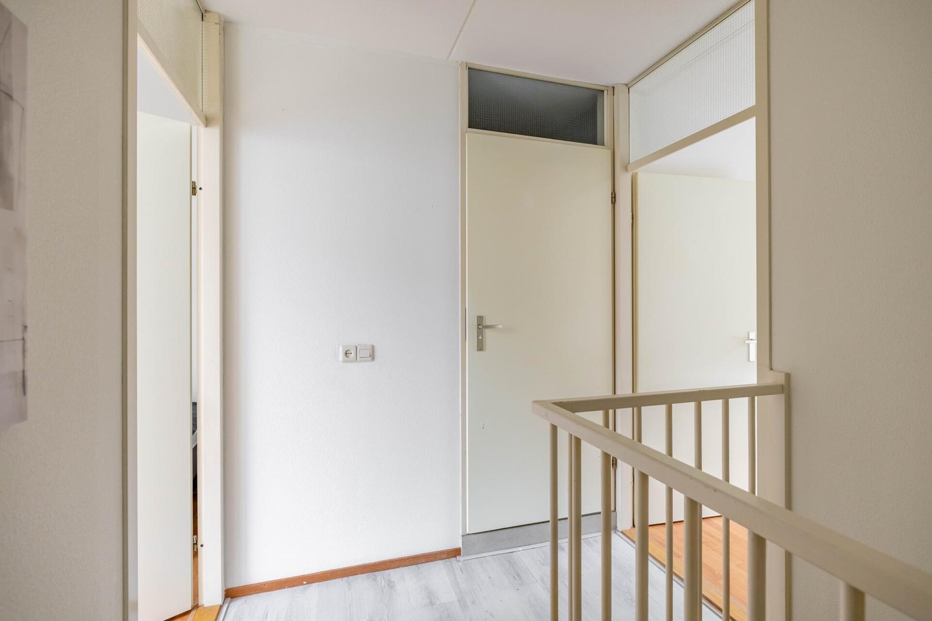 Overloop met toegang woon- of slaapkamer (ca. 23 m²), tweede slaapkamer (ca. 14 m²) en trapopgang.