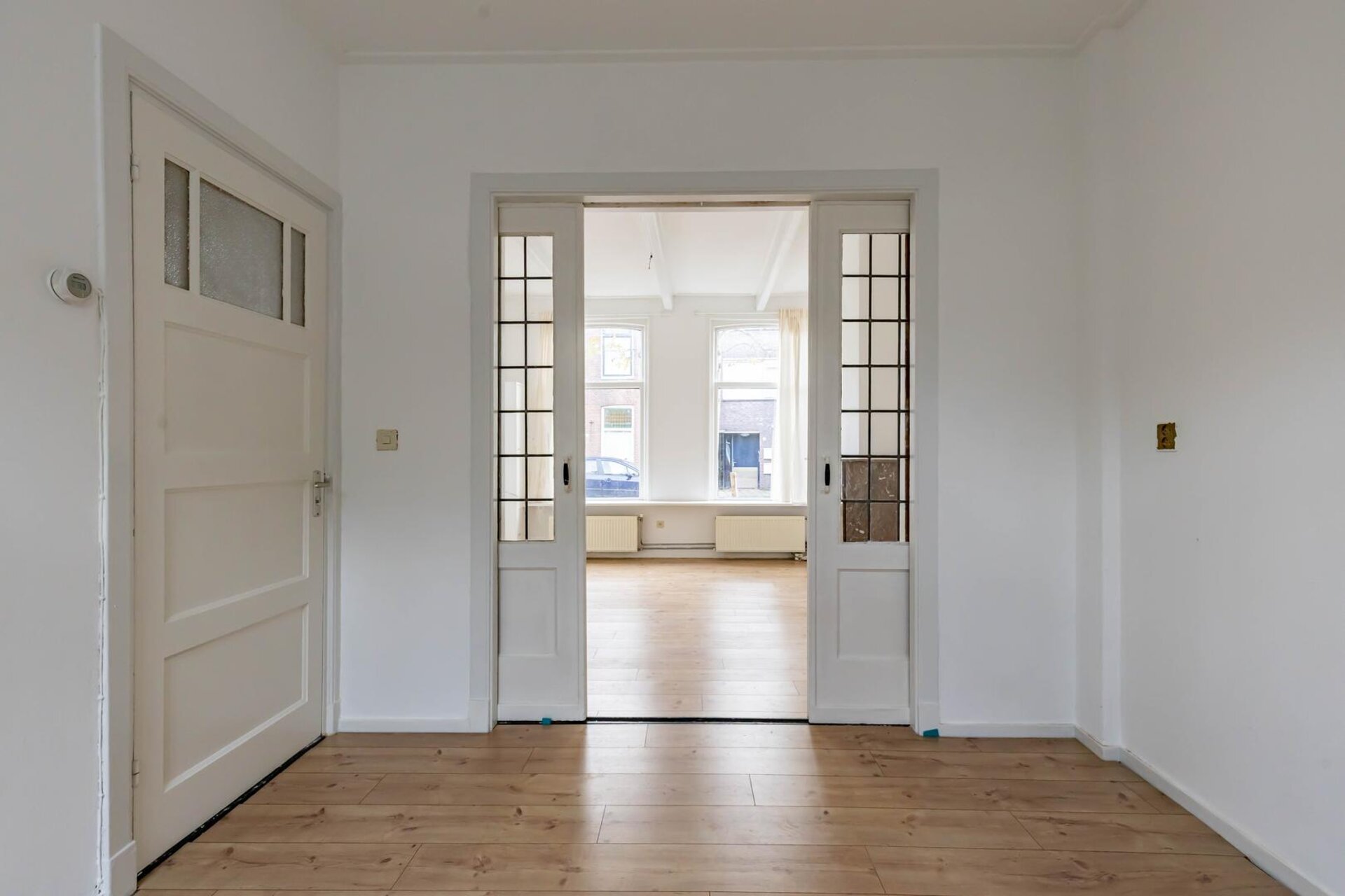 Entree - ruime hal met toilet - sfeervolle woonkamer en-suite 25m² met suitedeuren en natuurstenen schouw, dichte keuken 5m² met eenvoudige keukeninrichting (o.a. vaatwasser, 4-pits gaskookplaat, combioven en koelkast). Vanuit de keuken een deur naar de achtertuin op het zuidwesten met bergkast.