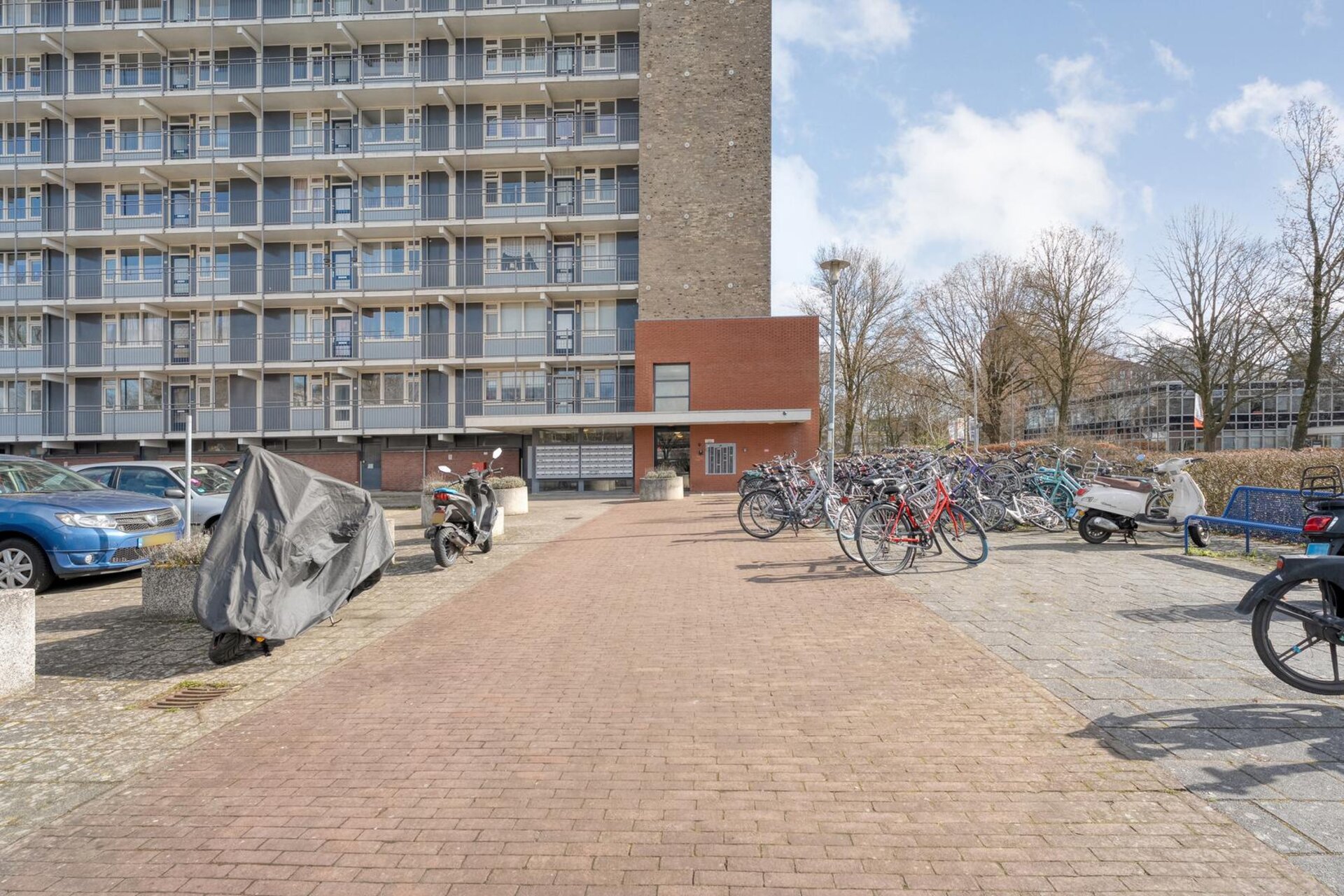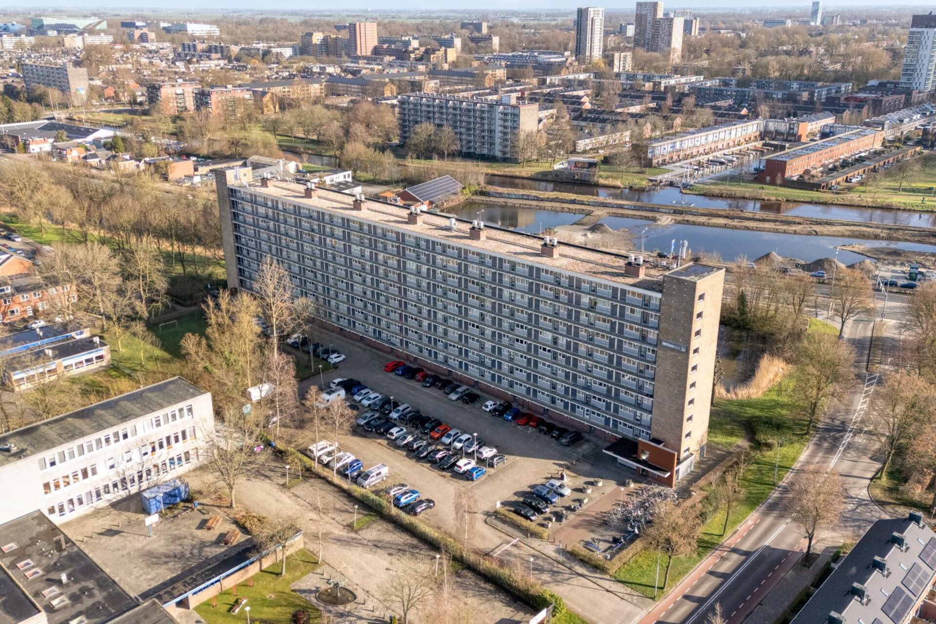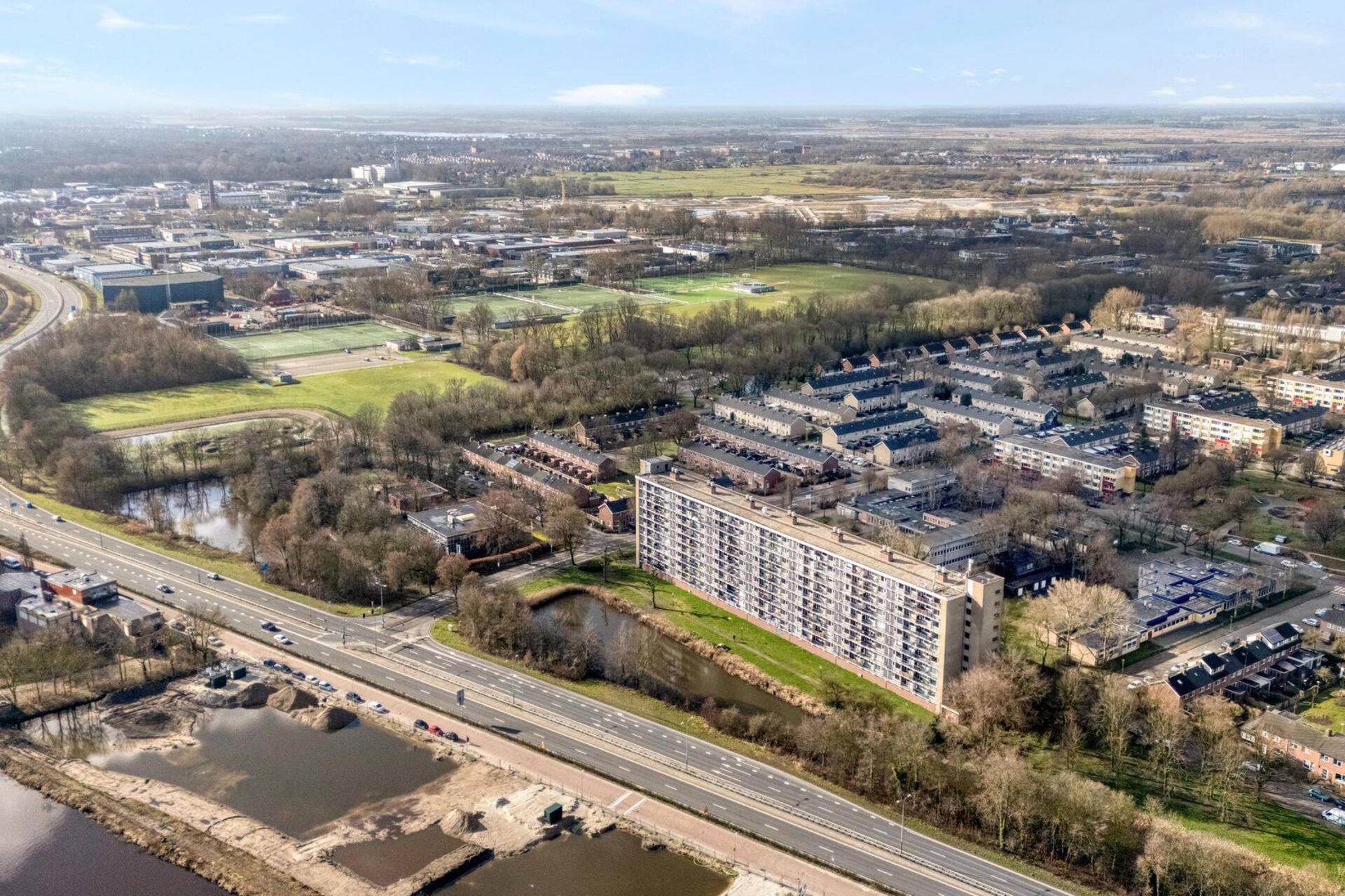 Een heerlijk ruim appartement op de 8e verdieping met lift en een fantastisch uitzicht. Een uitzicht met aan de ene kant de historische binnenstad met de kenmerkende torens en aan de andere kant de ondergaande zon. Een ideale ligging nabij de Zernike campus, op 10 minuten fietsen van de binnenstad, een opstapplaats voor de bus om de hoek alsook de ringweg. Parkeren kan op het afgesloten parkeerterrein voor het complex.