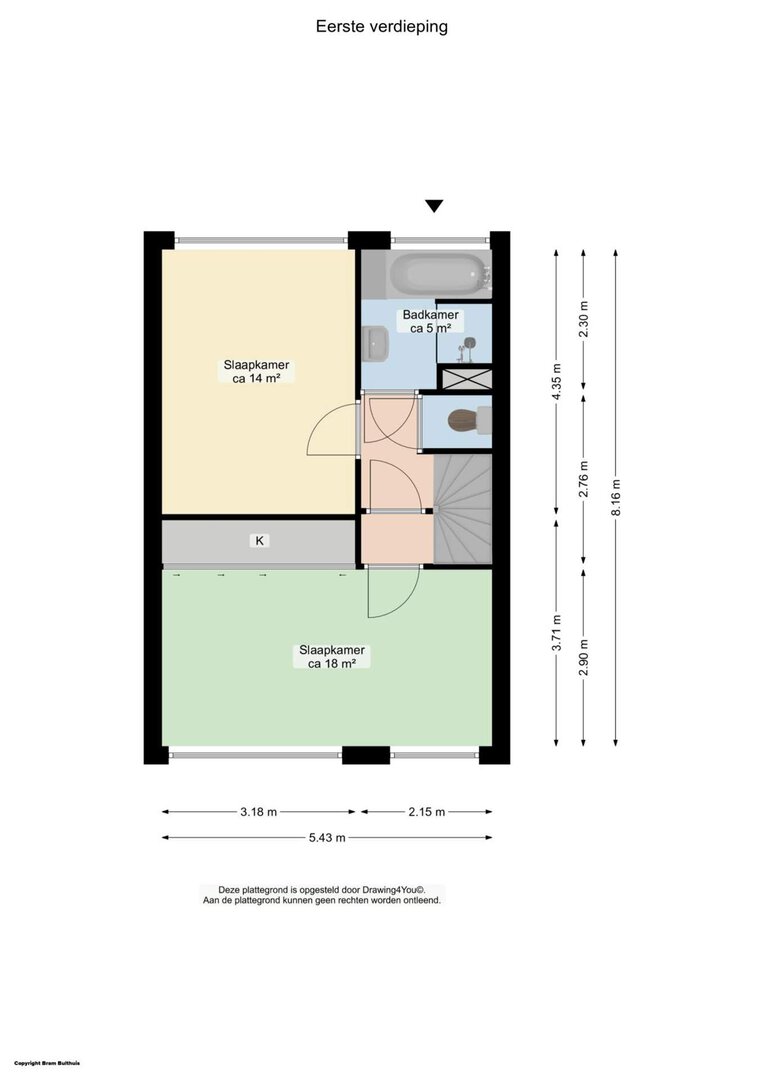 overloop, twee royale slaapkamers van 14 en 18 m², moderne badkamer voorzien van ligbad, inloopdouche en wastafelmeubel, separaat een toilet met fonteintje.