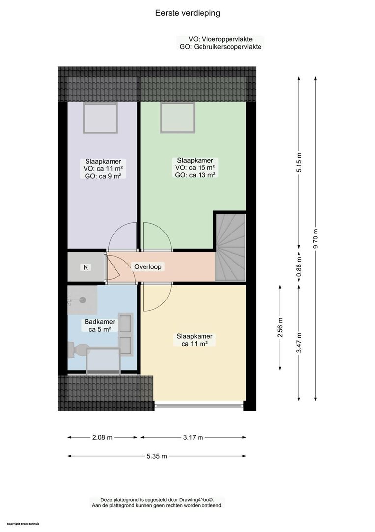 1e Verdieping (volledig voorzien van laminaatvloer):