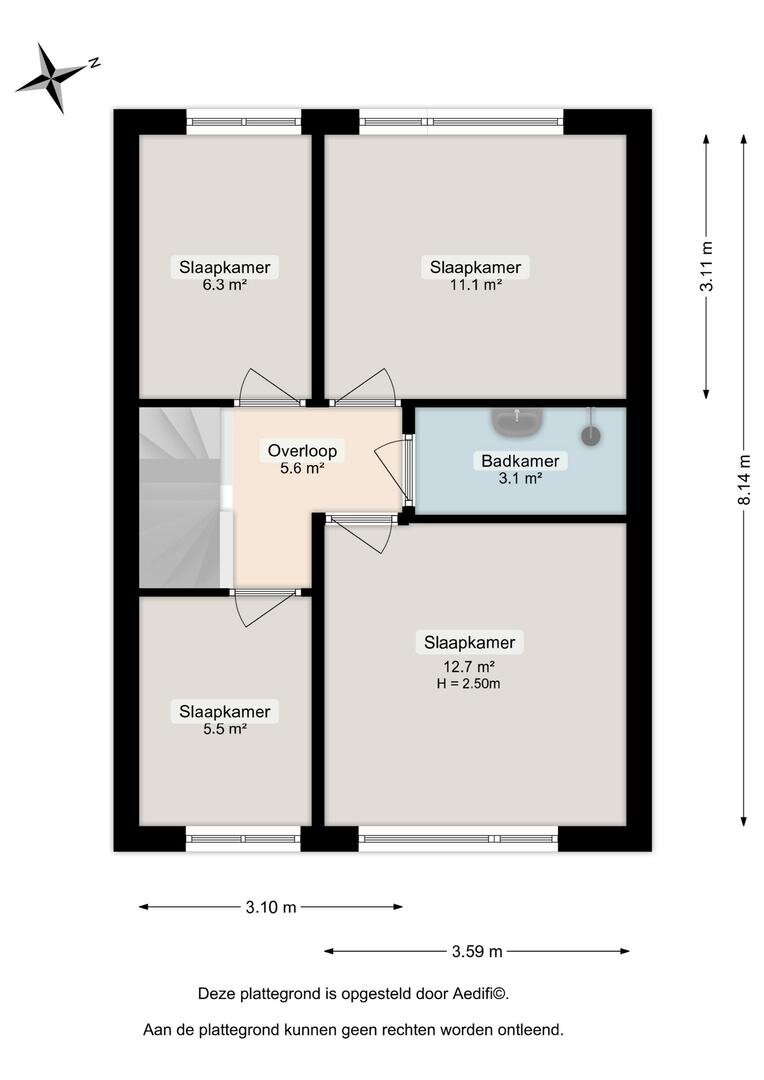 Overloop biedt toegang tot alle vertrekken, waaronder 4 slaapkamers van respectievelijk circa 6, 6, 11 en 13m² - eenvoudige badkamer voorzien van inloopdouche en wastafel - via vaste trap naar de tweede verdieping.