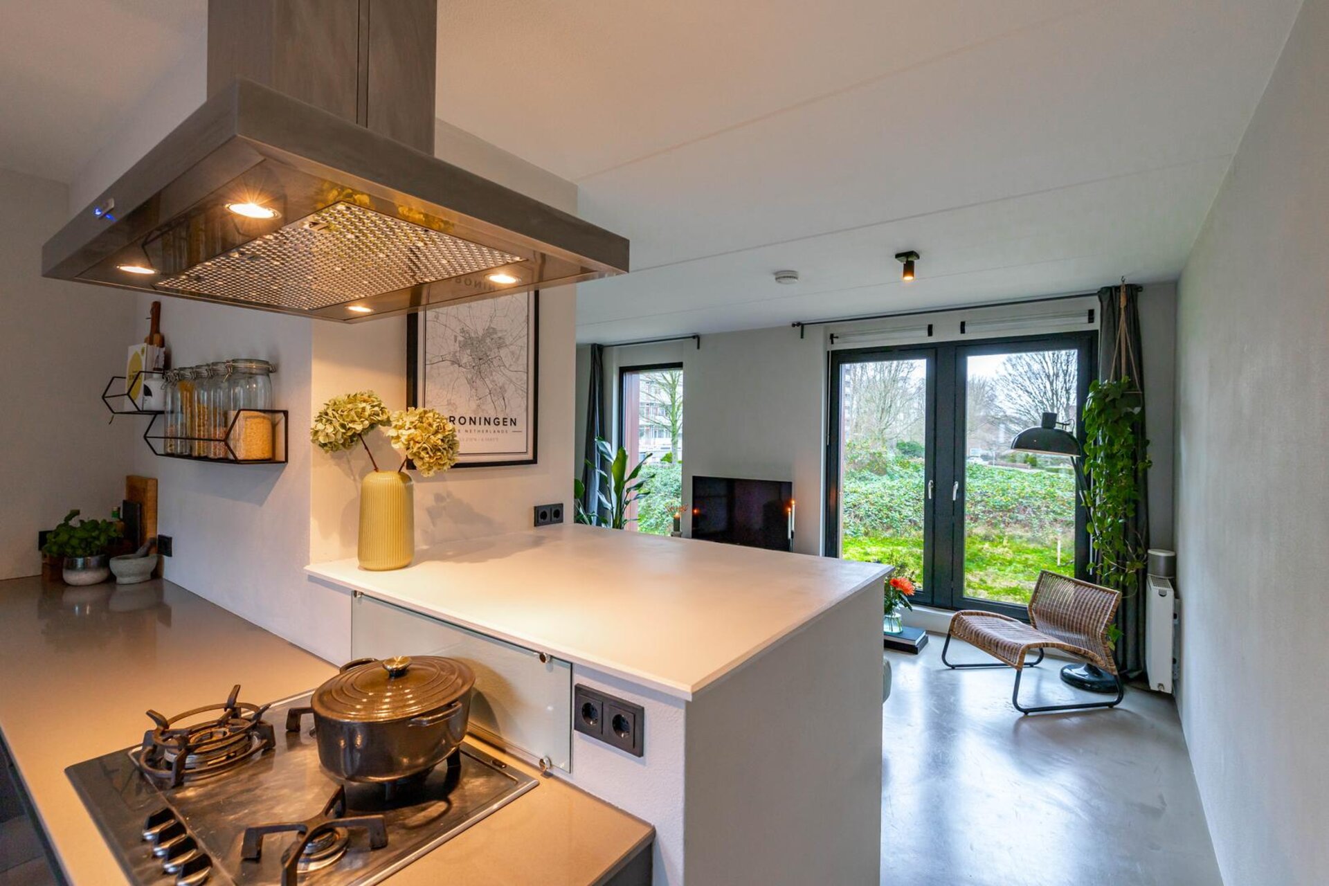 Fantastische en rustig gelegen aan het Reitdiep, uitstekend onderhouden en sfeervolle maisonnette woning met energielabel A+, moderne open keuken, veranda op het zuiden en een eigen parkeerplaats!
