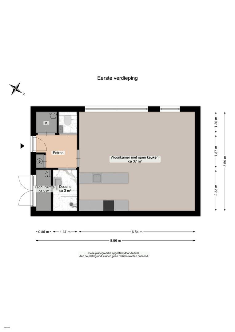 Technische ruimte direct naast de voordeur/entree.