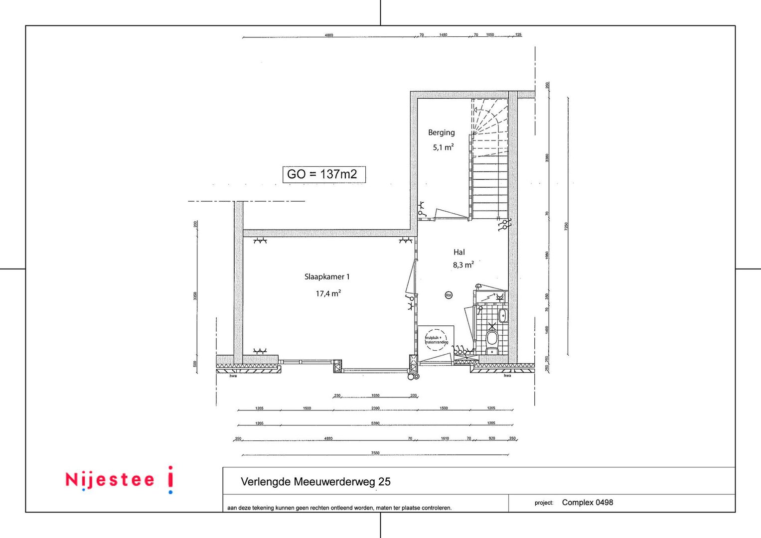 Begane grond: entree, ruime hal van circa 8m², meterkast, toilet, werk/slaapkamer van circa 17m², ruime inpandige berging, parkeerkelder met eigen plek;