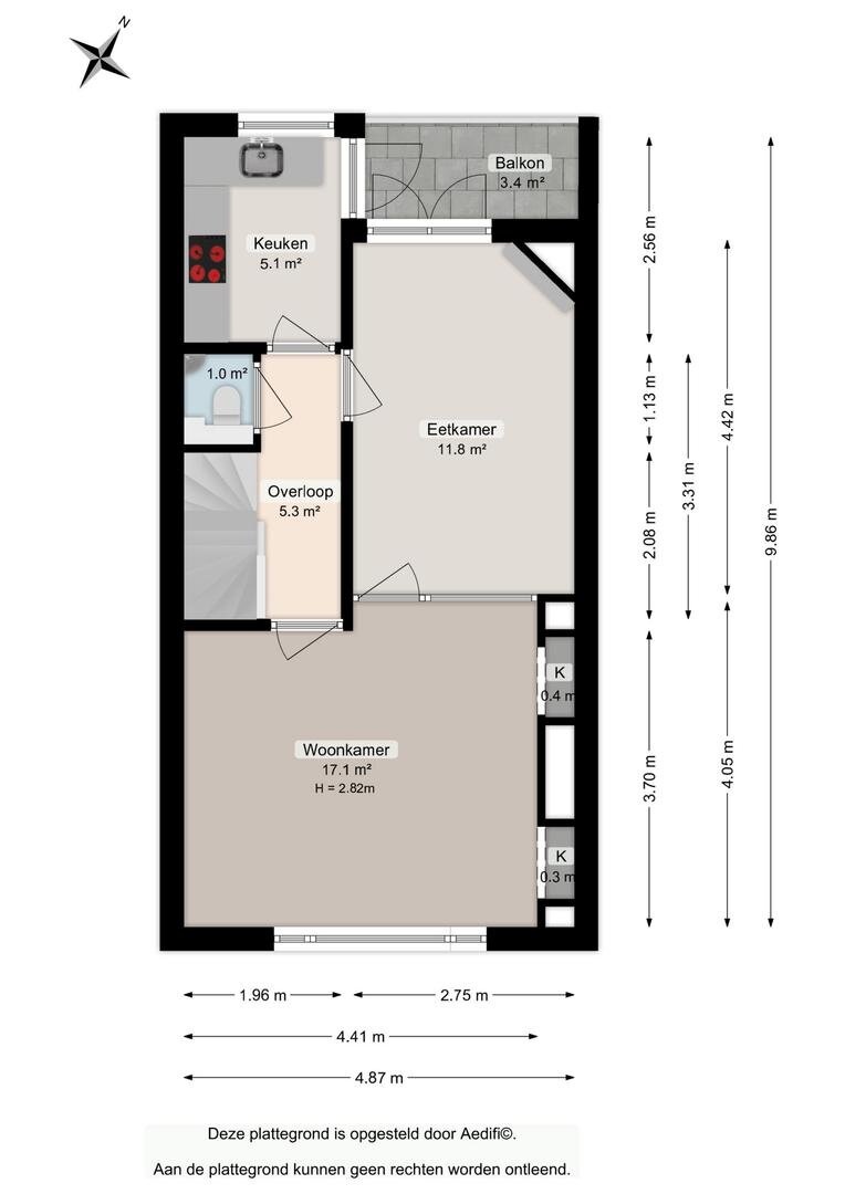 - Twee balkons op het noorden;