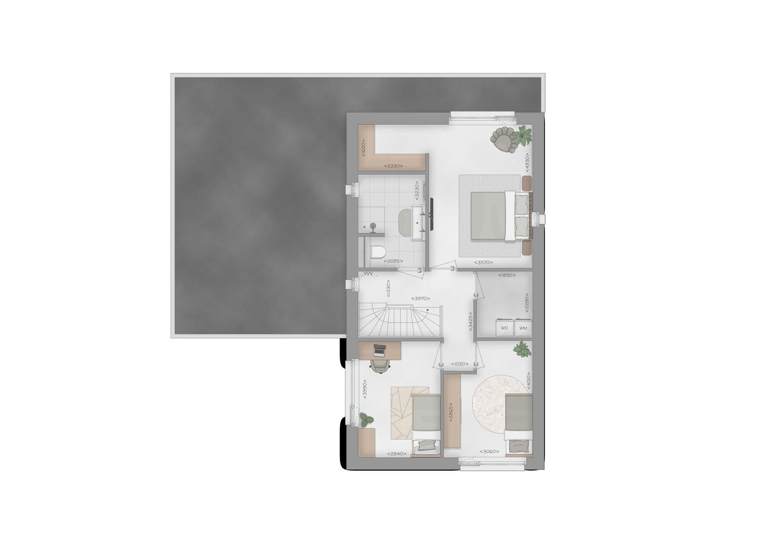 Binnen bieden de woningen, naast een luxe afwerkingsniveau, volop flexibiliteit: kies bijvoorbeeld voor een kantoor aan huis of creëer extra slaapkamers om de woning volledig af te stemmen op jouw woonwensen.
