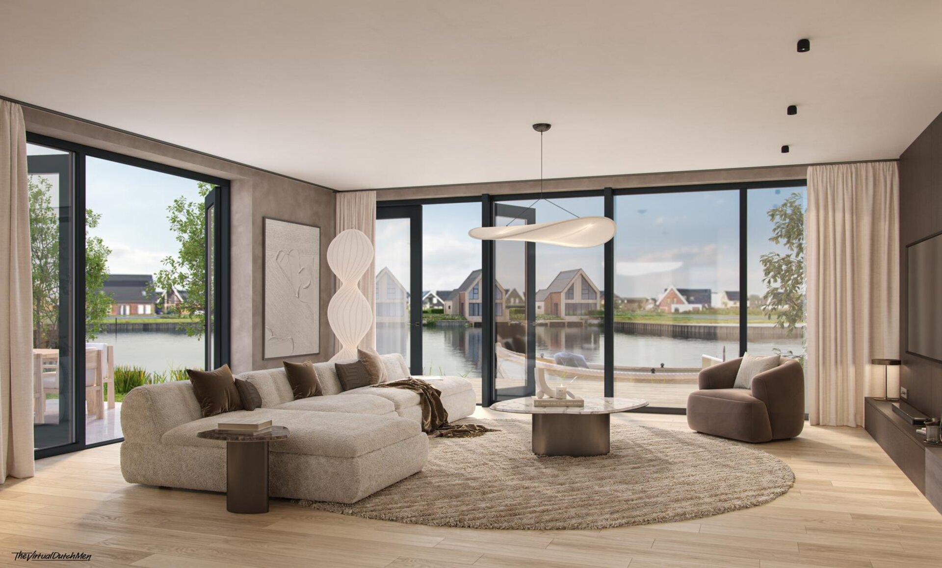 De indeling van je nieuwe woning bepaal je zelf! De grote raampartijen zorgen voor veel lichtinval en een geweldig vrij uitzicht over het water; buiten komt als het ware naar binnen. Je kunt hier in alle rust genieten van jouw paradijs aan het water. Vanaf je eigen aanlegsteiger stap je zo in de boot.
