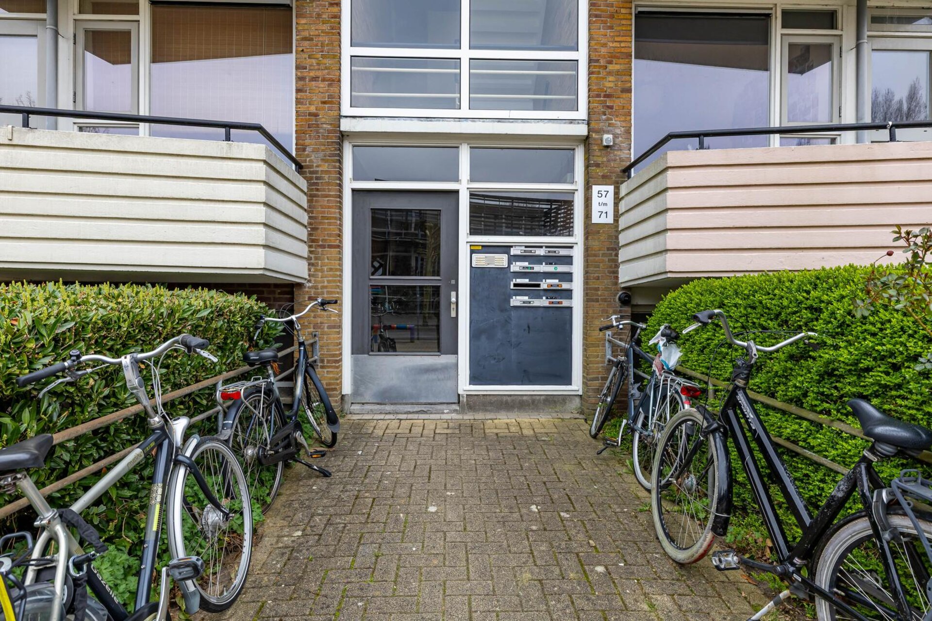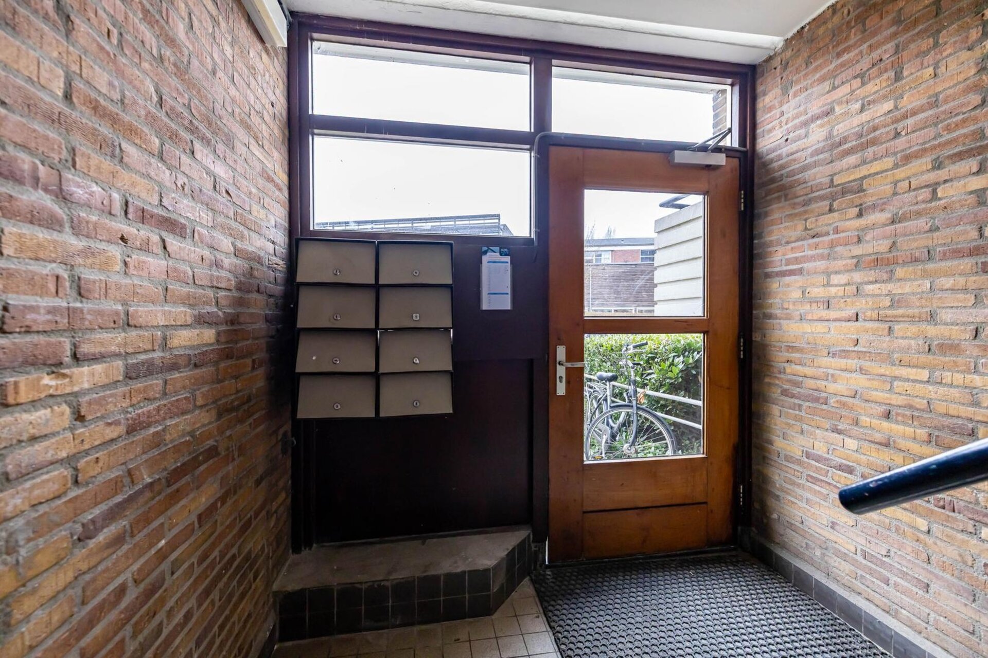 Afgesloten portiek met intercom, trapopgang, toegang tot de gemeenschappelijke wasruimte en inpandige bergingen in het souterrain.
