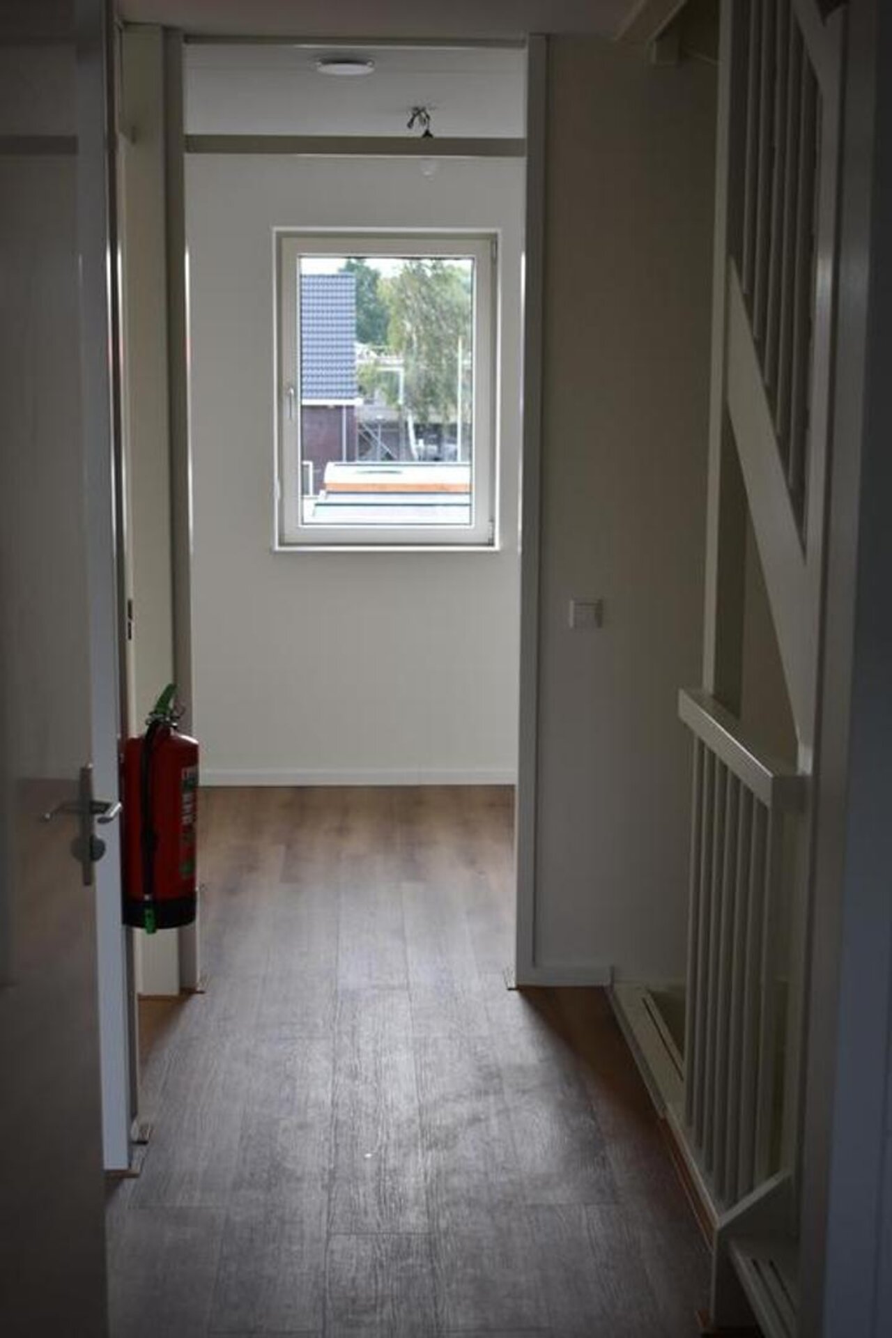 Overloop met techniekruimte, waarin ook een aansluiting voor wasmachine en/of wasdroger, zolderkamer ca.14m².