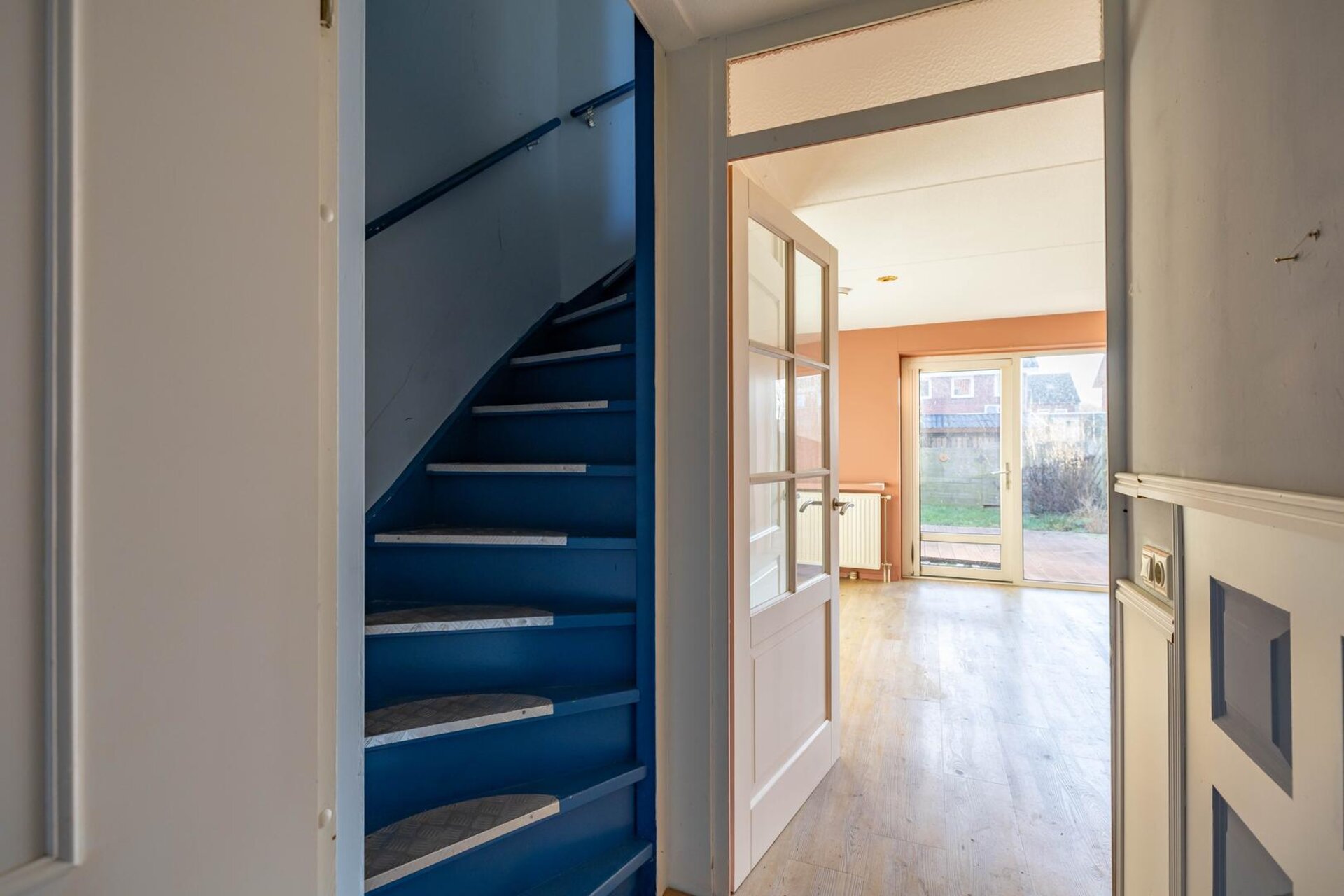 Entree/hal met toegang tot het toilet met fonteintje, lichte woonkamer voorzien van ruime schuifpui en toegang tot de tuin op het zuidoosten. Vanuit de woonkamer heeft u toegang tot de keuken voorzien van enige inbouwapparatuur. Vanuit de hal heeft u vervolgens toegang tot de trapopgang naar de eerste verdieping.