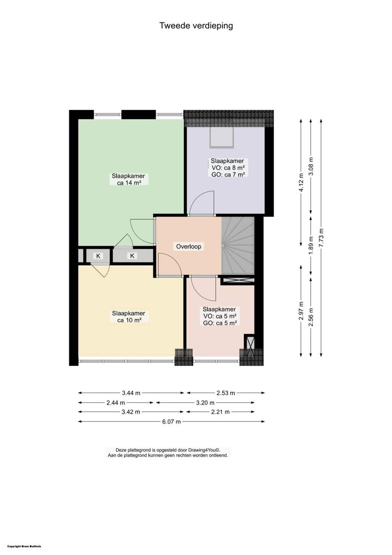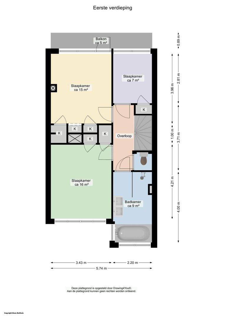 Een ruime overloop met nog eens vier slaapkamers met laminaatvloer.