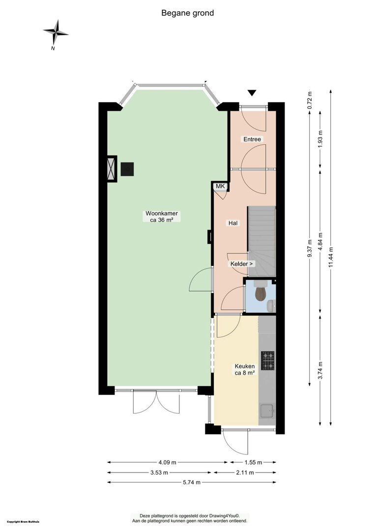 Entree, tochtportaal (met jaren 30 wandtegels), hal met fraaie granitovloer, meterkast, toegang naar de kelderruimte (circa 18m²). De kelder is opgedeeld in 2 compartimenten met cv-opstelling, wasmachineaansluiting en veel voorraadruimte. Vanuit de hal: toilet met fonteintje, sfeervolle woonkamer (circa 44m²) met erker en openslaande deuren naar de achtertuin. De eiken houtenvloer, houtkachel en originele deuren maken de ruimte zeer sfeervol. De moderne open keuken is voorzien van Bruynzeel keukeninrichting o.a. 4-pits gaskookplaat, afzuigkap, koelkast, oven en vaatwasser. Vanuit de keuken is de achtertuin bereikbaar.
