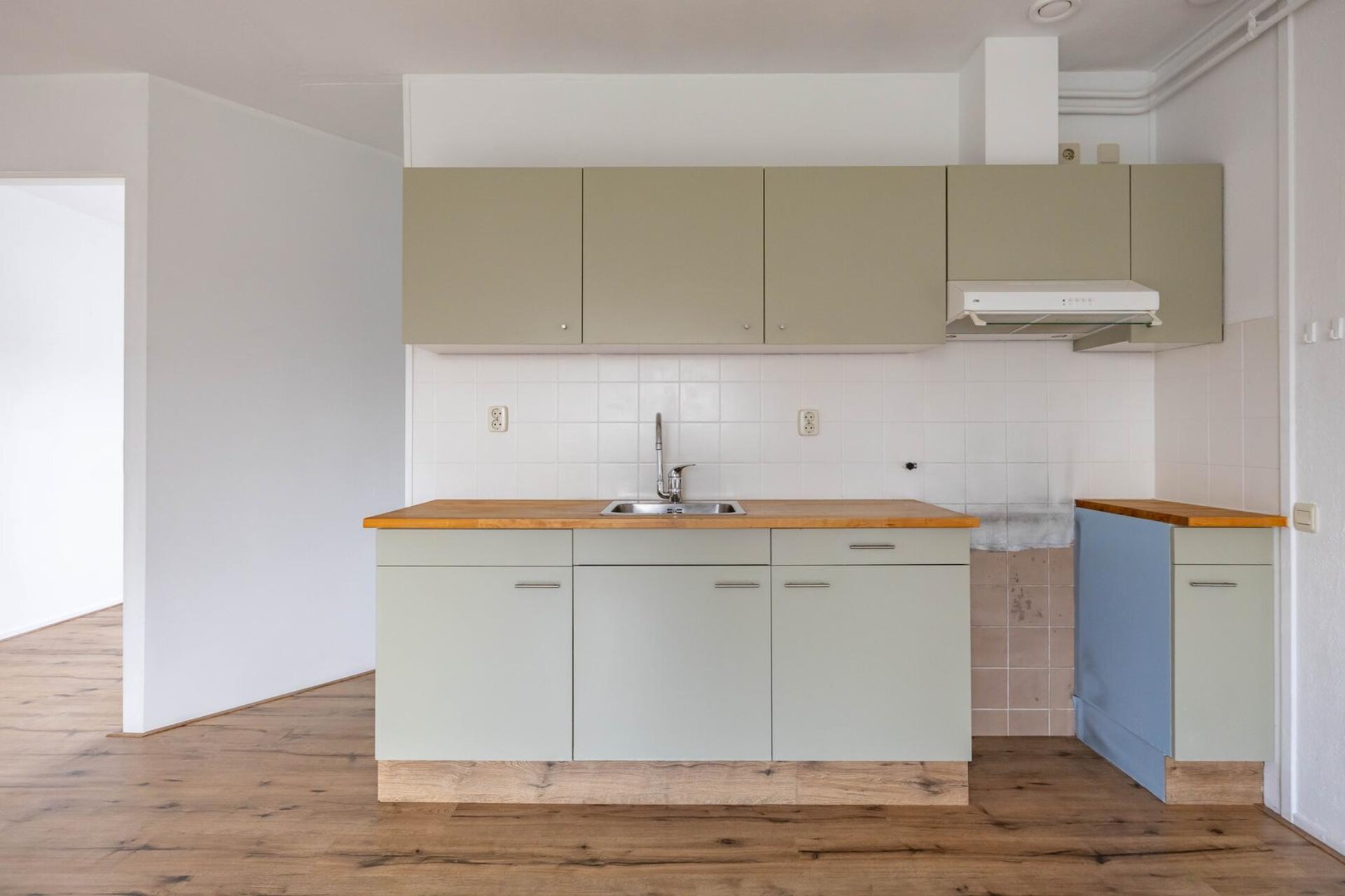 Tussenhal met vaste kaste met Cv-combiketel.