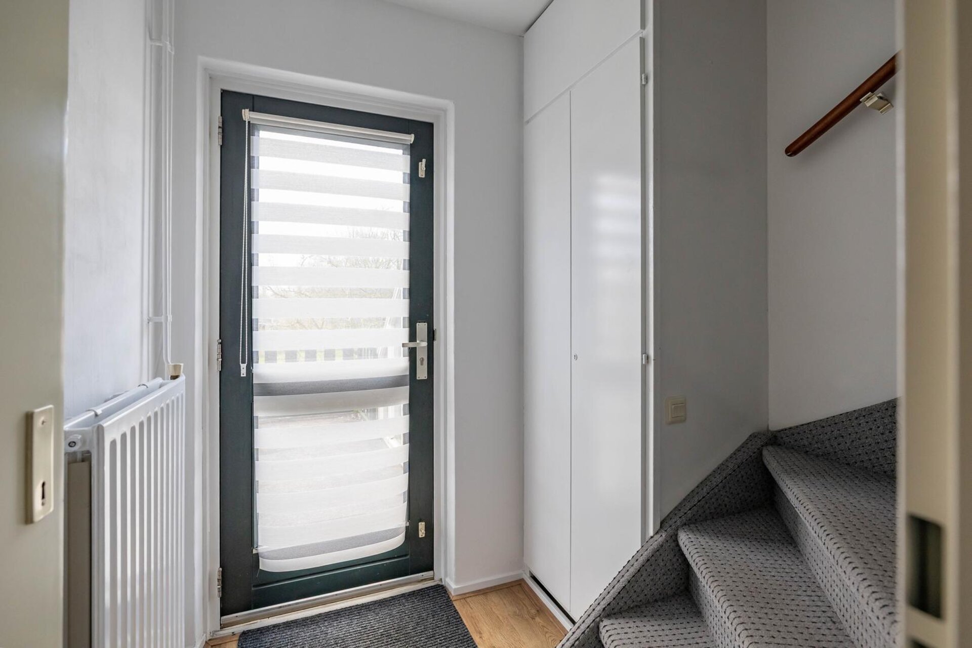 Entree, meterkast, bergruimte onder de trap, via de trapopgang naar de 2e etage: