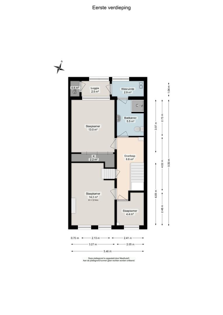 Overloop - 3 slaapkamers - badkamer is voorzien van een inloopdouche, wastafel, handdoekradiator en mechanische ventilatie. Vanuit de badkamer een deur naar een overdekt balkon met wasmachine aansluiting en kast met cv-ketel.