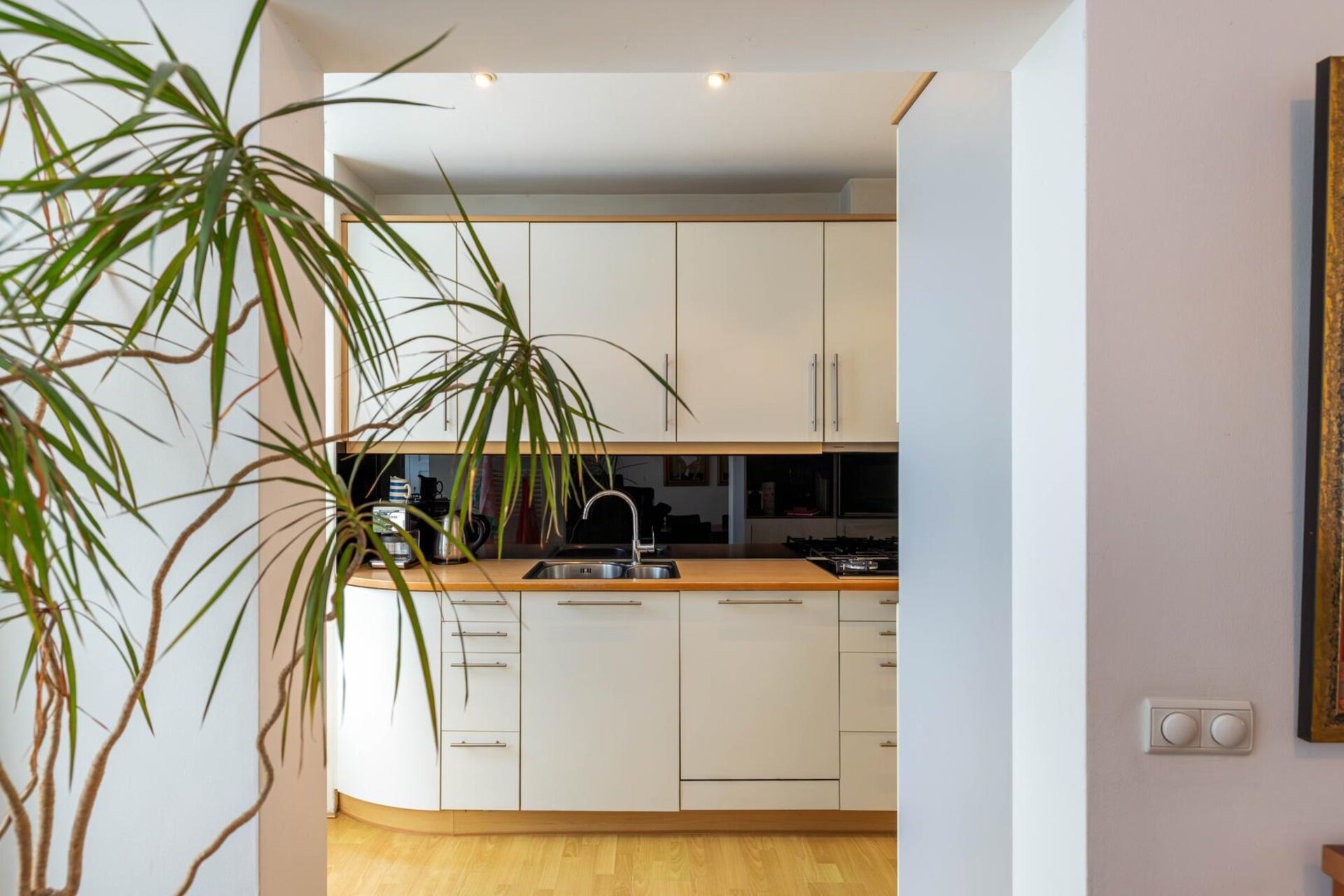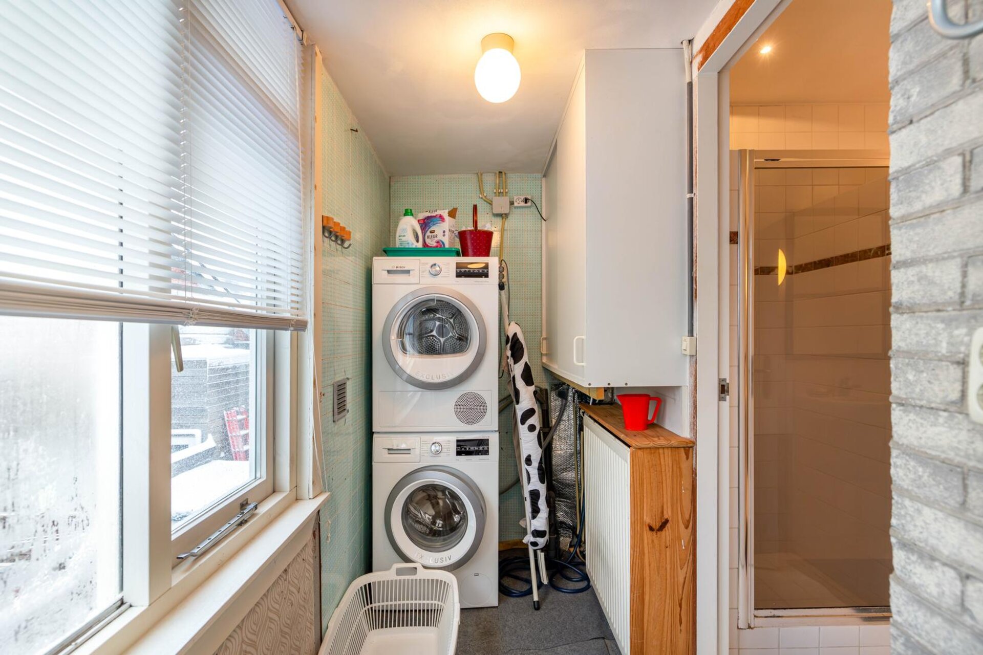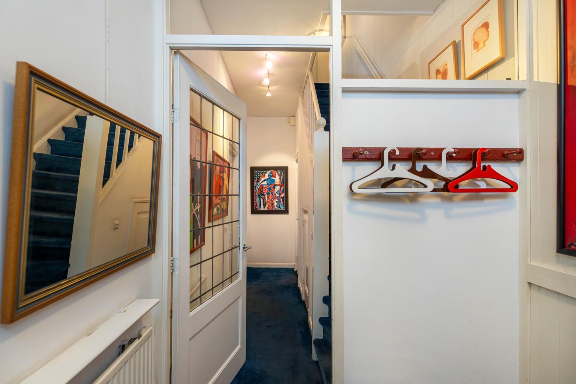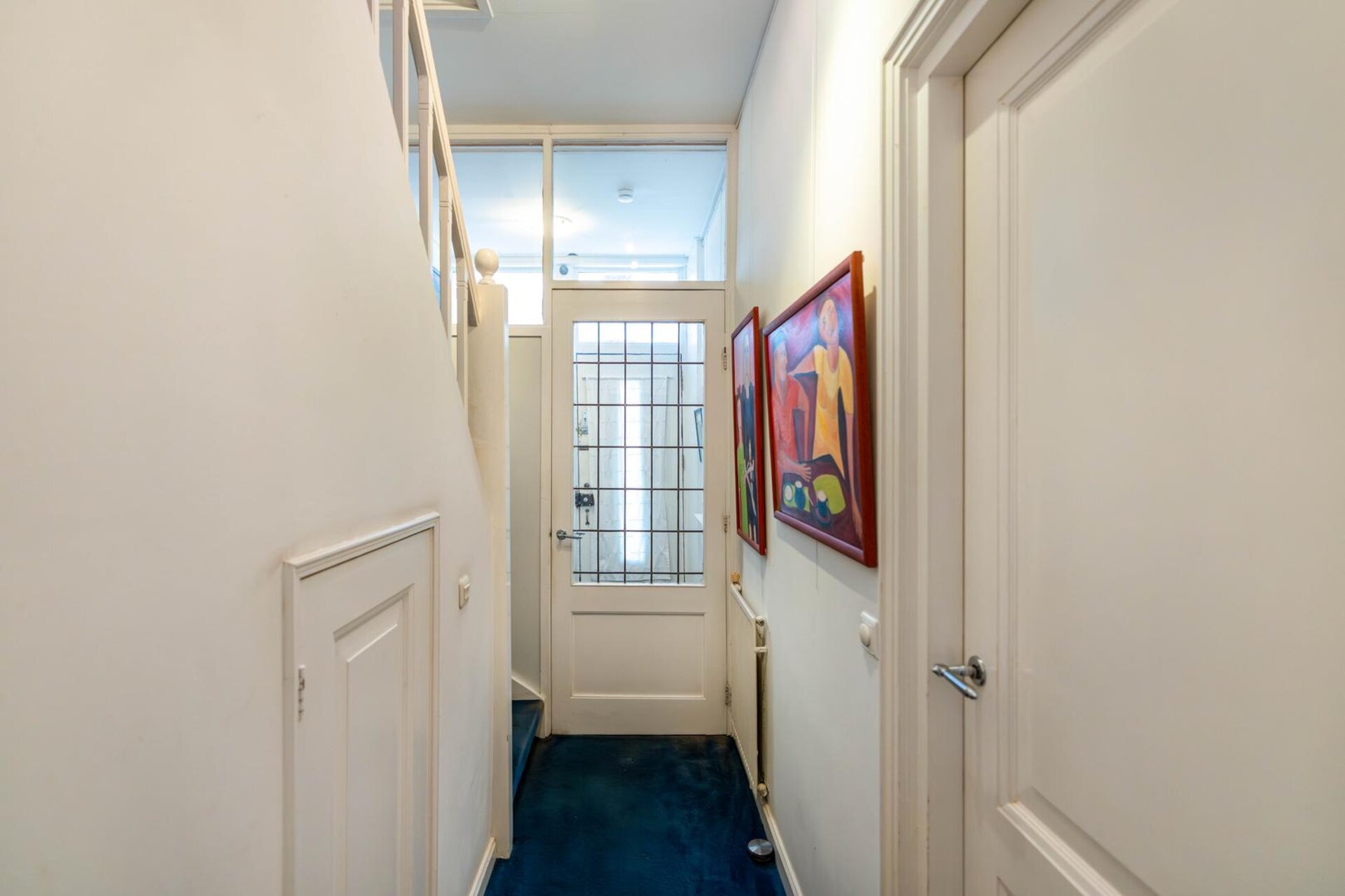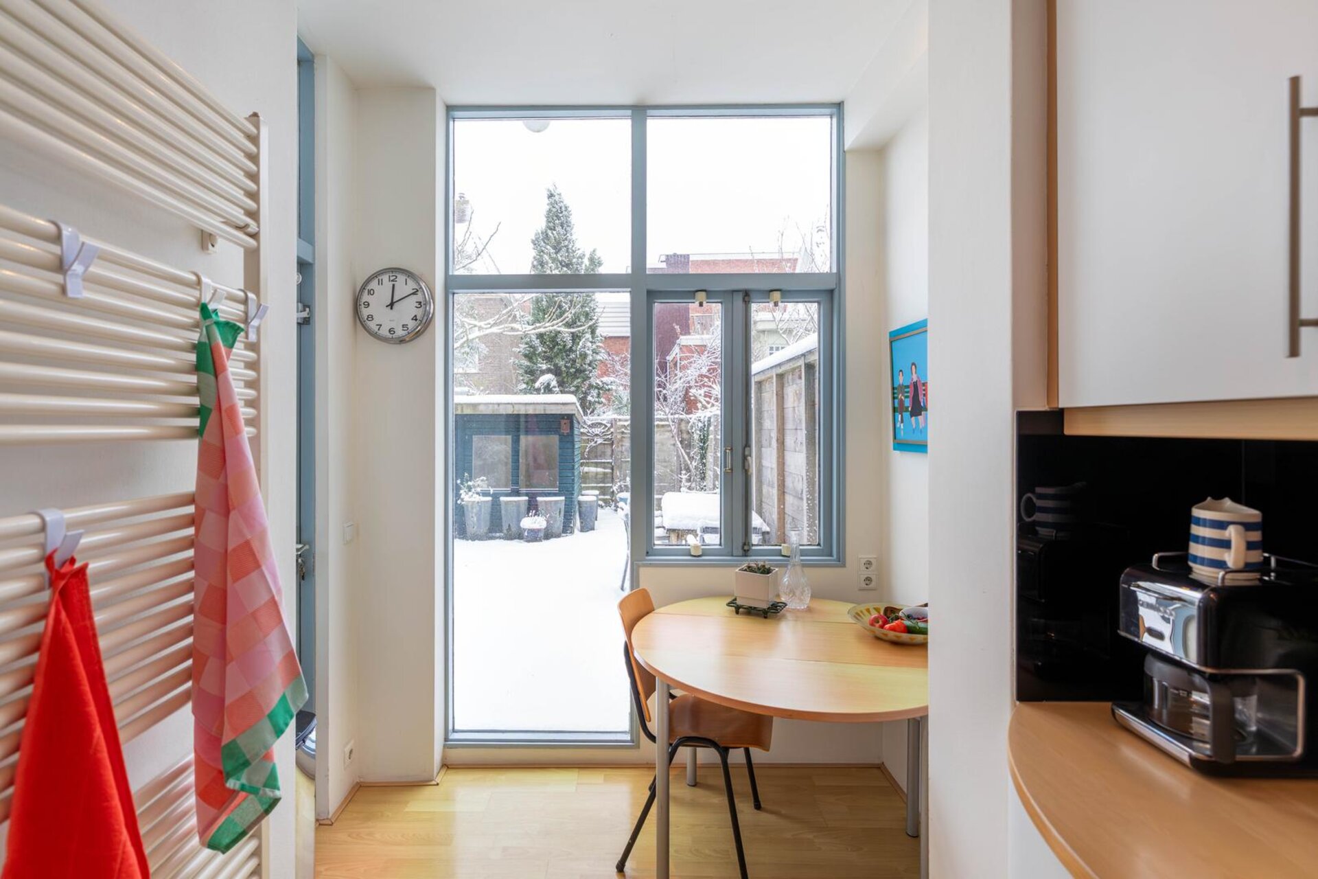 Entree - tochtportaal - hal - toilet met hangcloset, fonteintje en mechanische ventilatie - sfeervolle lichte woonkamer met hoog plafond en halfopen keuken voorzien van nette keukeninrichting met diverse inbouwapparatuur (o.a. vaatwasser, koelkast, vriezer, oven, 4-pits gaskookplaat en afzuigkap). Vanuit de keuken toegang tot de achtertuin.
