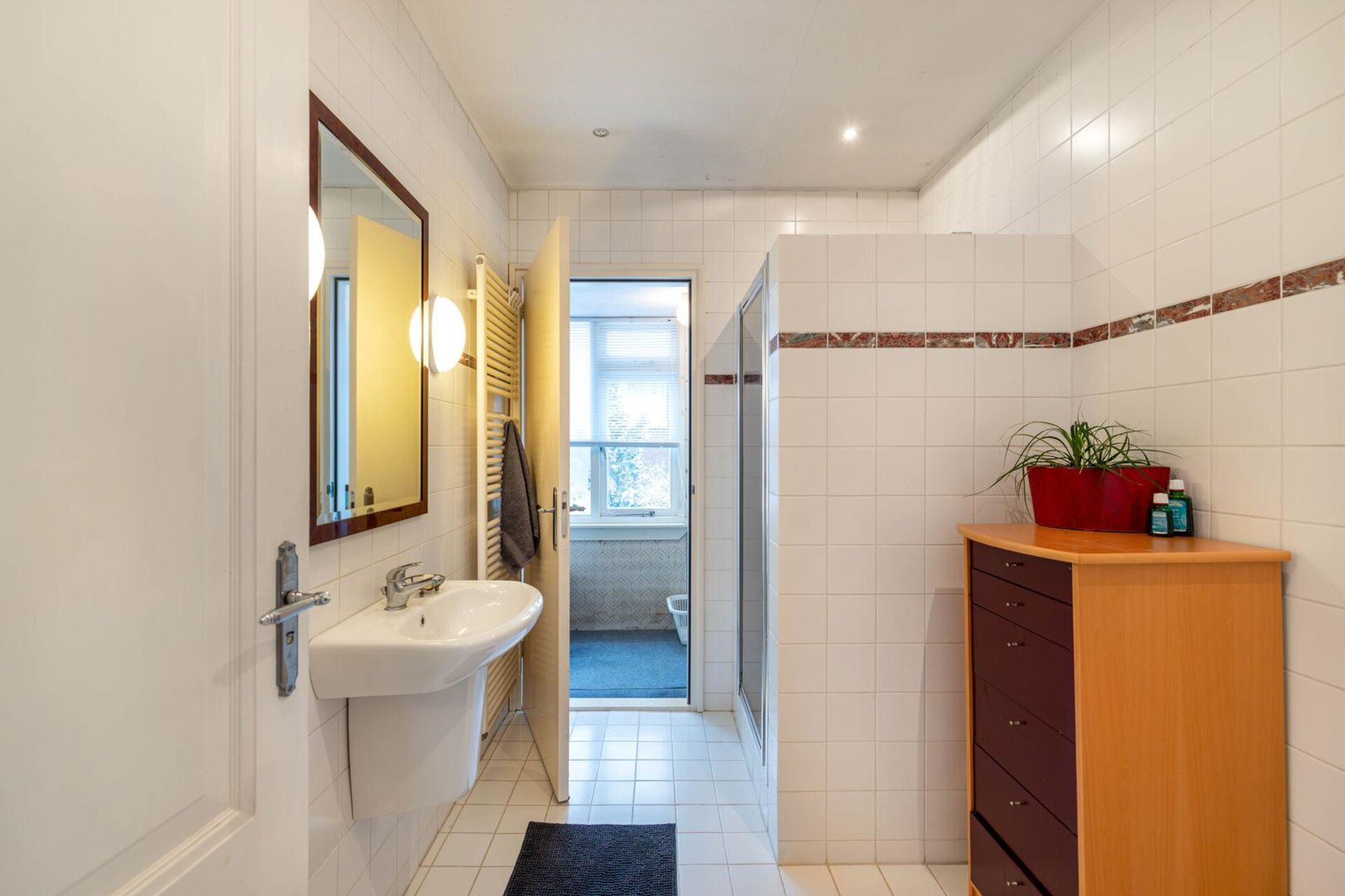 Overloop - 3 slaapkamers - badkamer is voorzien van een inloopdouche, wastafel, handdoekradiator en mechanische ventilatie. Vanuit de badkamer een deur naar een overdekt balkon met wasmachine aansluiting en kast met cv-ketel.