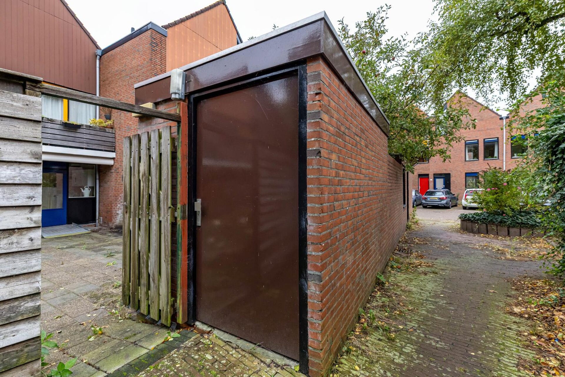 De tuin ligt op het zuidwesten – een heerlijke plek om in de middag en avond van de zon te genieten. Achterin de tuin staat een eigen berging, handig voor fietsen of tuinspullen.
