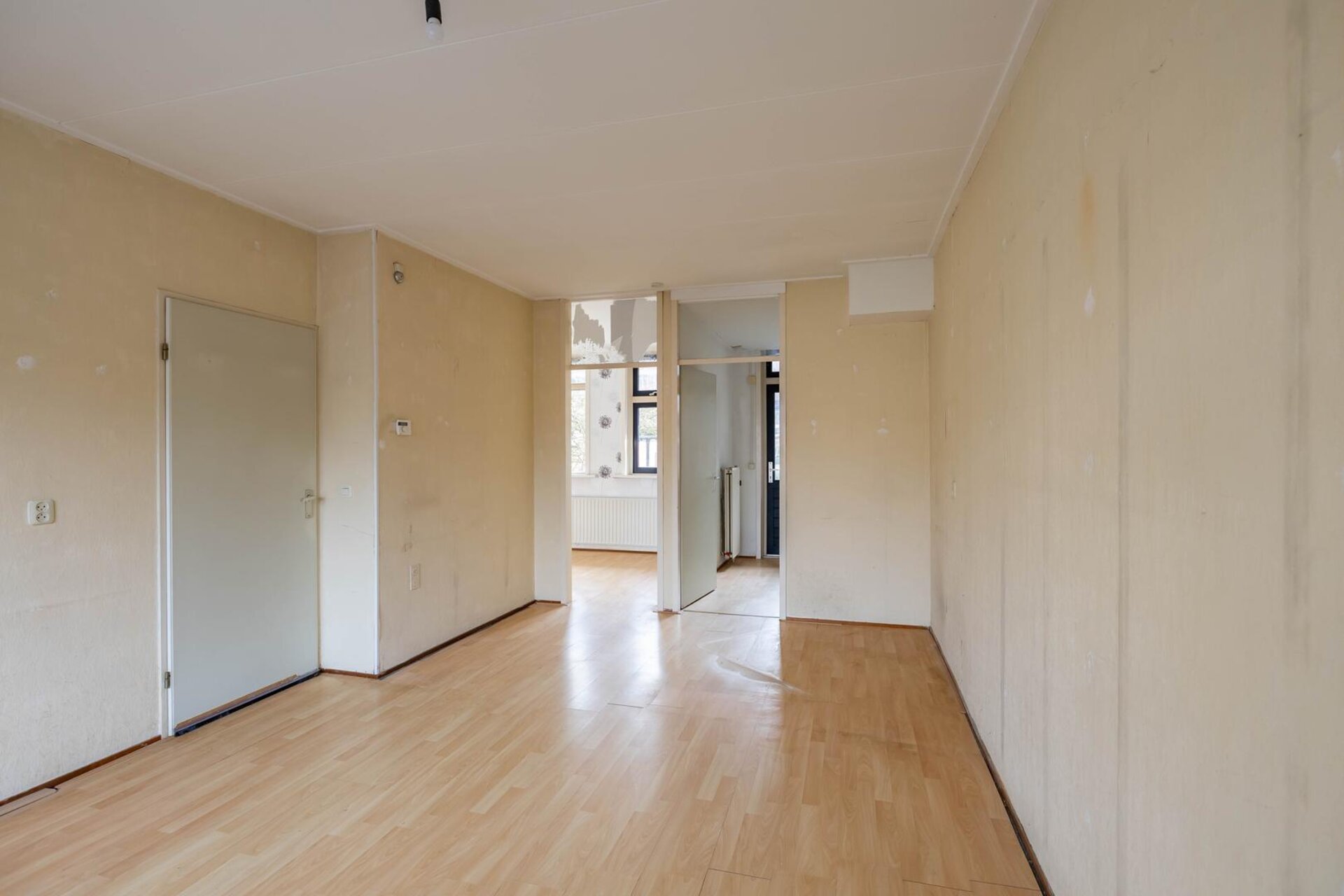 De woning beschikt over een lichte woonkamer met praktische indeling naar de slaapkamer en keuken. De afwerking is eenvoudig, maar dat biedt juist ruimte om het geheel naar eigen smaak in te richten. Aan de achterzijde ligt de tuin op het zuidoosten: een fijne plek voor de ochtend- en middagzon.