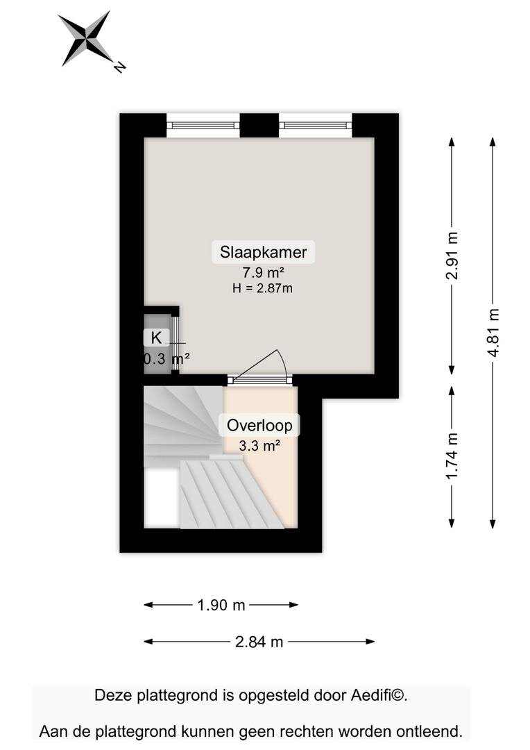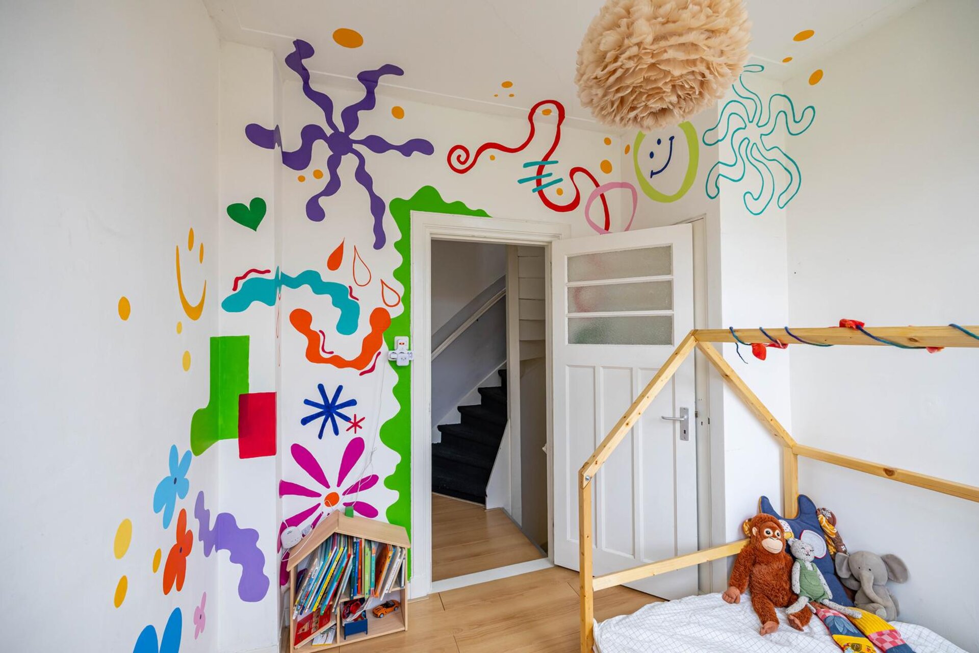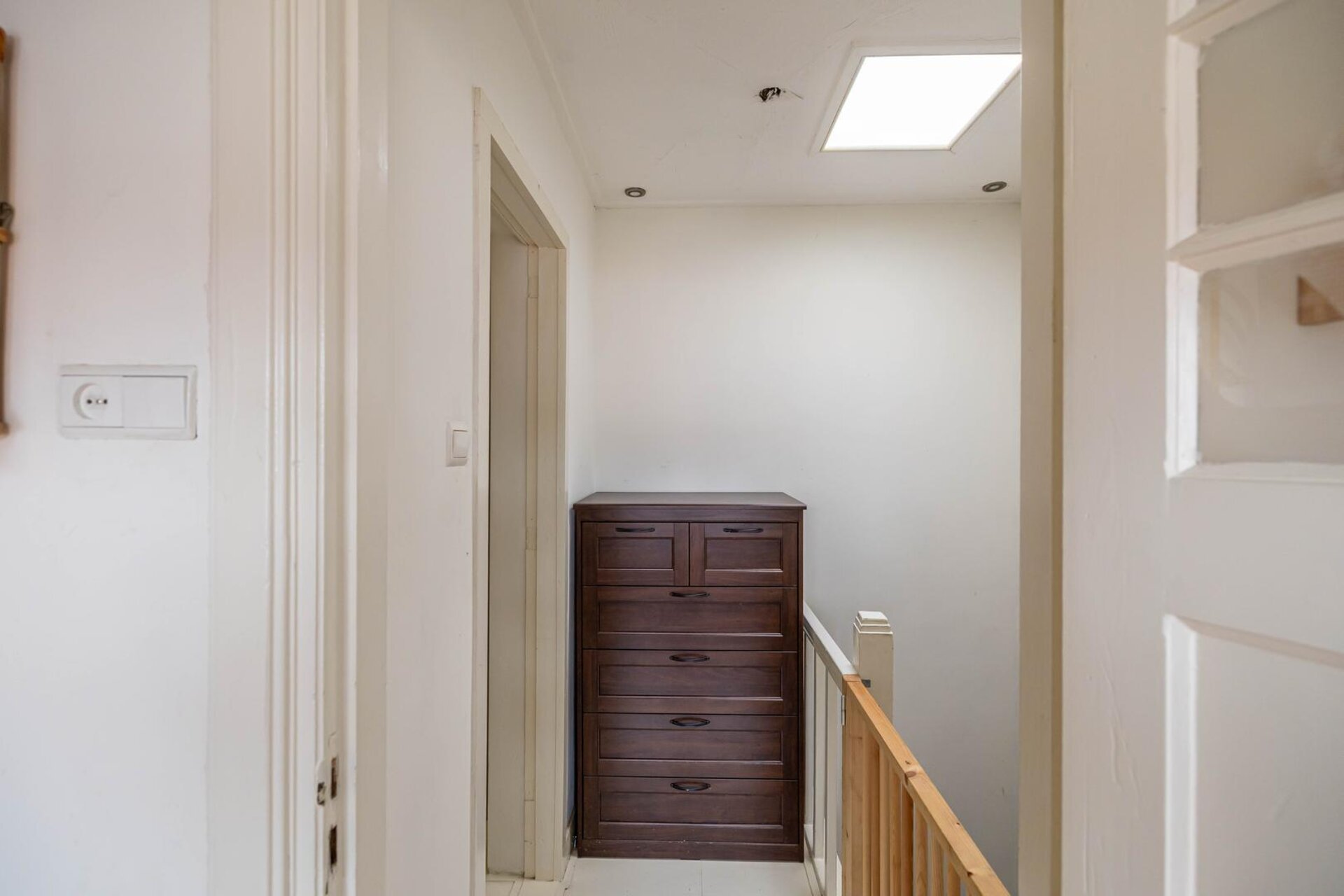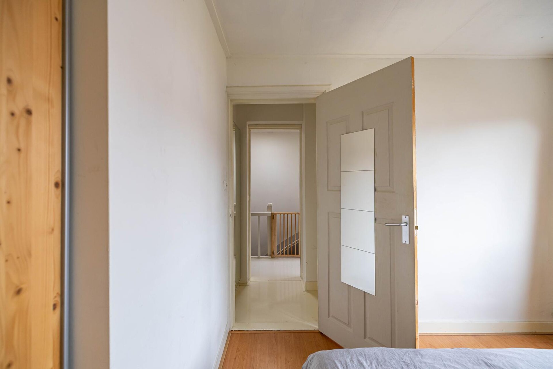 Overloop met toegang tot een slaapkamer (ca. 8 m²) en de trapopgang naar de tweede verdieping.