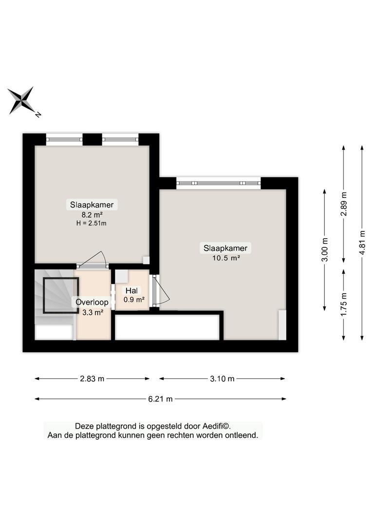 Twee slaapkamers van ca. 11 m² en 8 m².