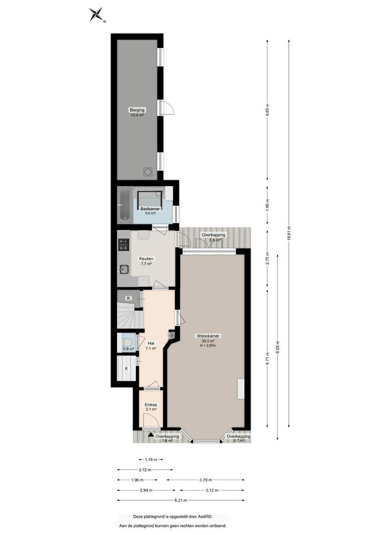 Entree (ca. 2 m²) met hal (ca. 7 m²), toegang tot het separate toilet, de trapopgang en de dichte keuken (ca. 8 m²) met inbouwapparatuur. Via de keuken bereik je de badkamer (ca. 5 m²) met douche/badcombinatie en wastafel. De lichte woonkamer (ca. 30 m²) heeft een prettige indeling met eetgedeelte. Vanuit zowel de keuken als het eetgedeelte stap je de zonnige tuin op het zuidwesten in.