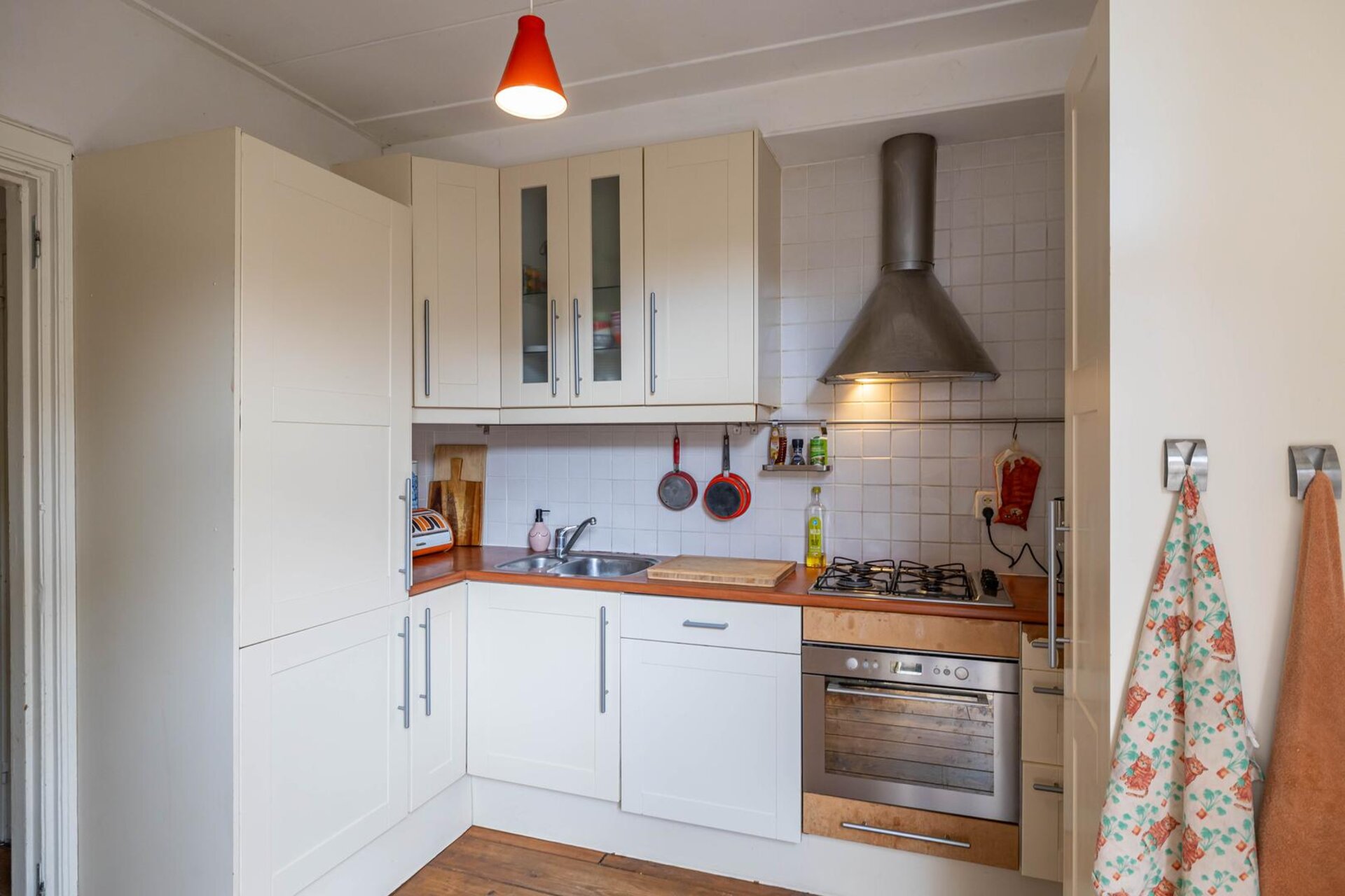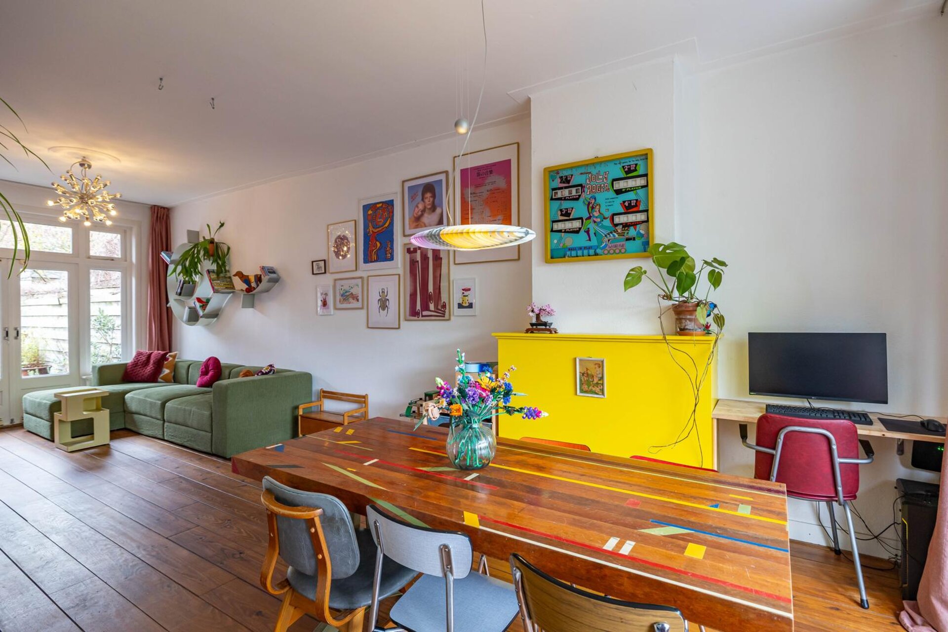 Zodra je binnenkomt, valt de fijne sfeer meteen op. De ruime woonkamer met eetgedeelte vormt het hart van de woning, een plek waar het daglicht rijkelijk binnenvalt en waar je direct een gevoel van thuiskomen ervaart. Via zowel het eetgedeelte als de keuken loop je zo de zonnige tuin in. Hier geniet je in alle privacy van lange zomeravonden, een kop koffie in de ochtendzon of gezellige borrels met vrienden.