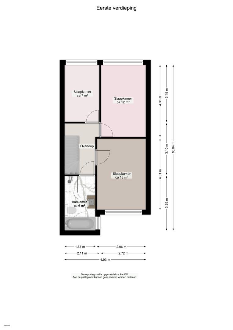 Overloop met daaraan drie ruime slaapkamers van 7, 12 en 13 m² groot. De moderne badkamer van circa 6 m² is voorzien van inloopdouche, ligbad, wastafelmeubel, designradiator en tweede toilet.