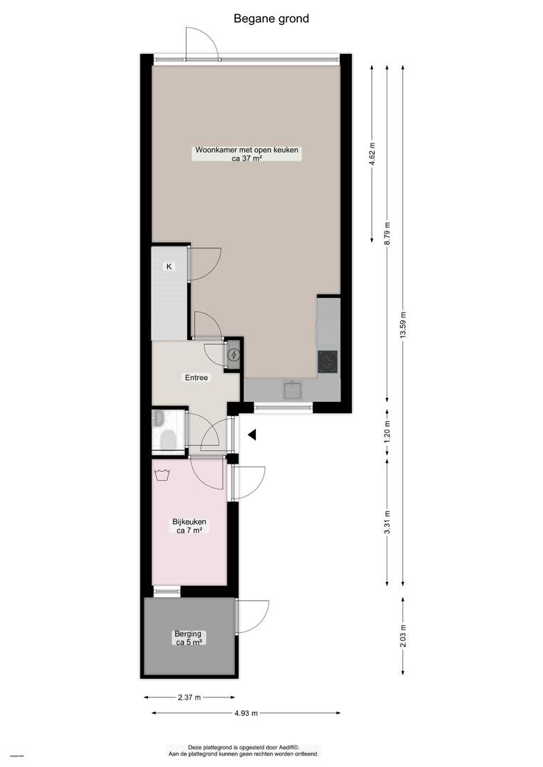 Entree/hal met meterkast, trapopgang en toilet met wandcloset en fonteintje. De hal biedt tevens toegang tot de bijkeuken met aansluitingen voor wasmachine/droger. Sfeervolle woonkamer voorzien van nette visgraat vloer en moderne open keuken. Dankzij de grote raampartijen heeft de woning een lichte uitstraling. De moderne open keuken (2025) is voorzien van diverse inbouwapparatuur zoals een grote koelkast, vriezer, inductieplaat, afzuigkap, combi-oven en Quooker. Vanuit de woonkamer bereik je de zonnige tuin.