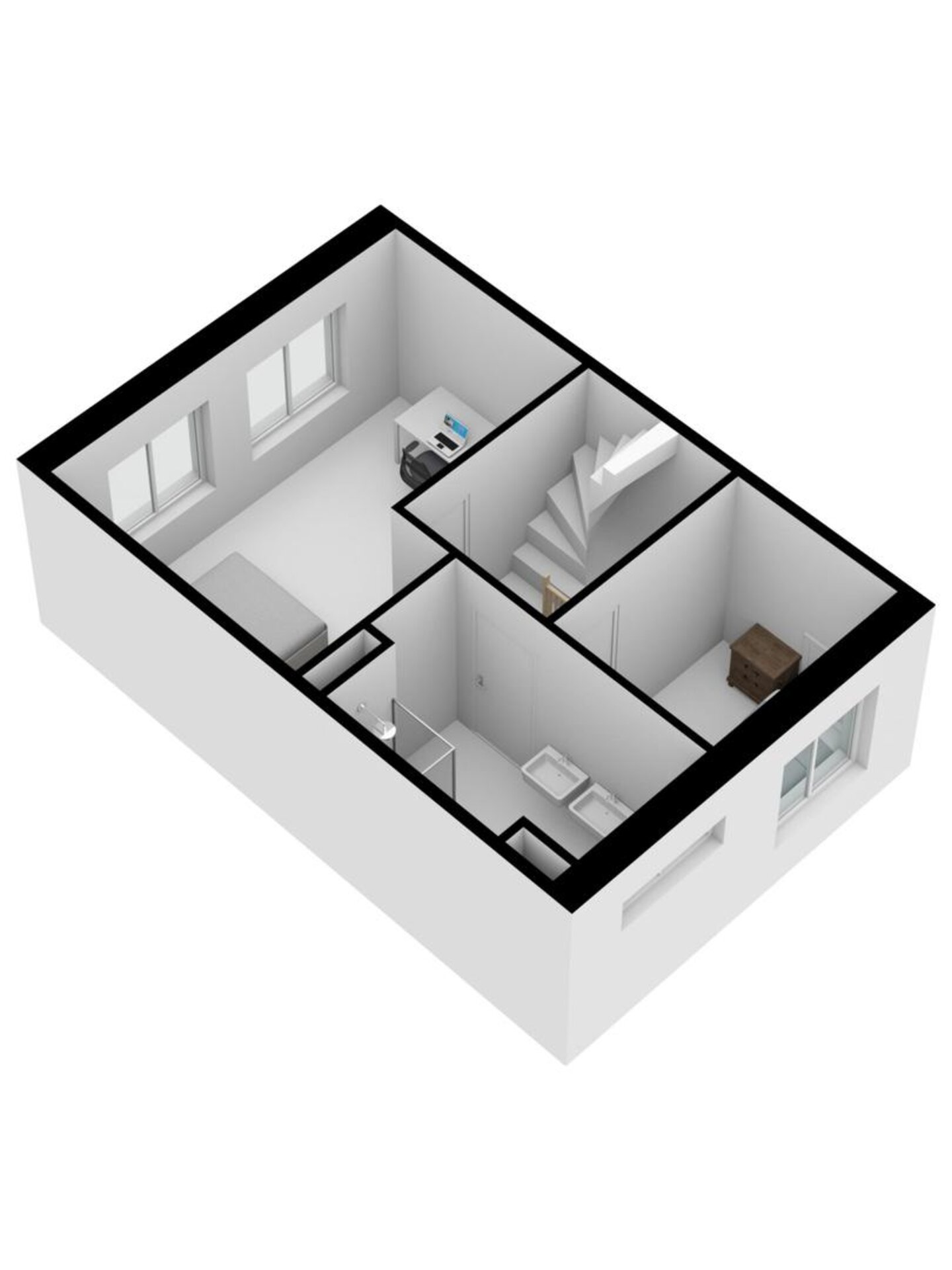 De derde verdieping biedt nog twee slaapkamers en een praktische wasruimte.