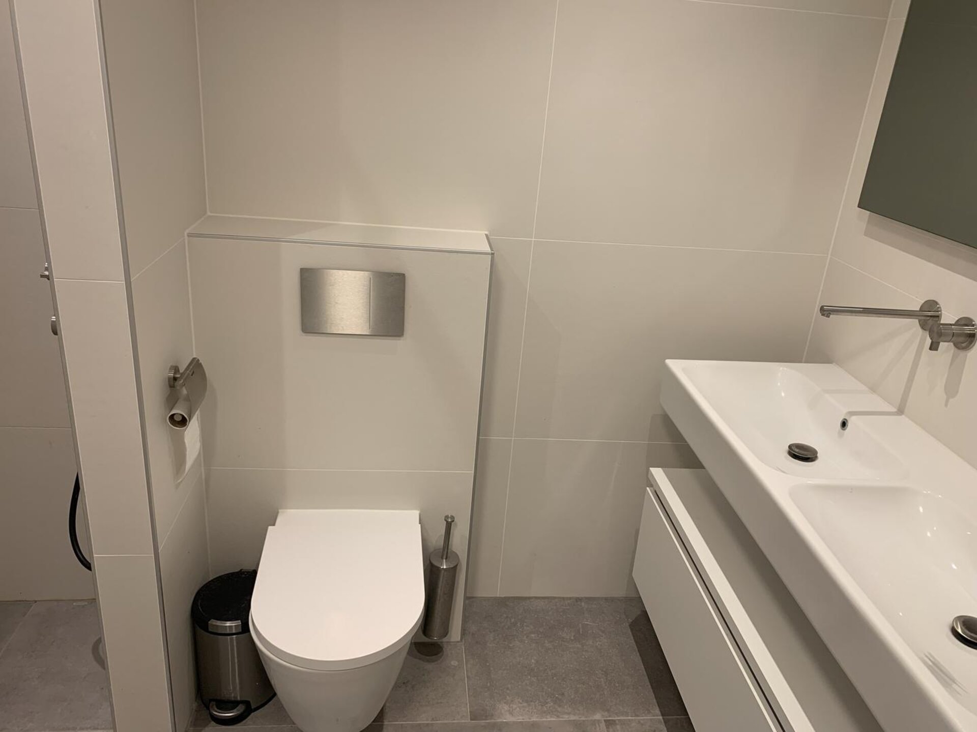 2e verdieping. Hal met toilet en toegang tot de technische/wasruimte (ca. 5 m2) . Slaapkamer 1 (ca. 14m2) met toegang tot het inpandige balkon. Ruime 2e slaapkamer (ca. 18m2). Woonkamer met moderne open keuken (ca. 37 m2) De moderne keuken is van alle gemakken voorzien en alle apparaten zijn ingebouwd (inductie kookplaat, vaatwasser, combi oven, koelkast, klimaatkast). De badkamer is luxe afgewerkt en voorzien van een 2e toilet en een ruime inloopdouche.
