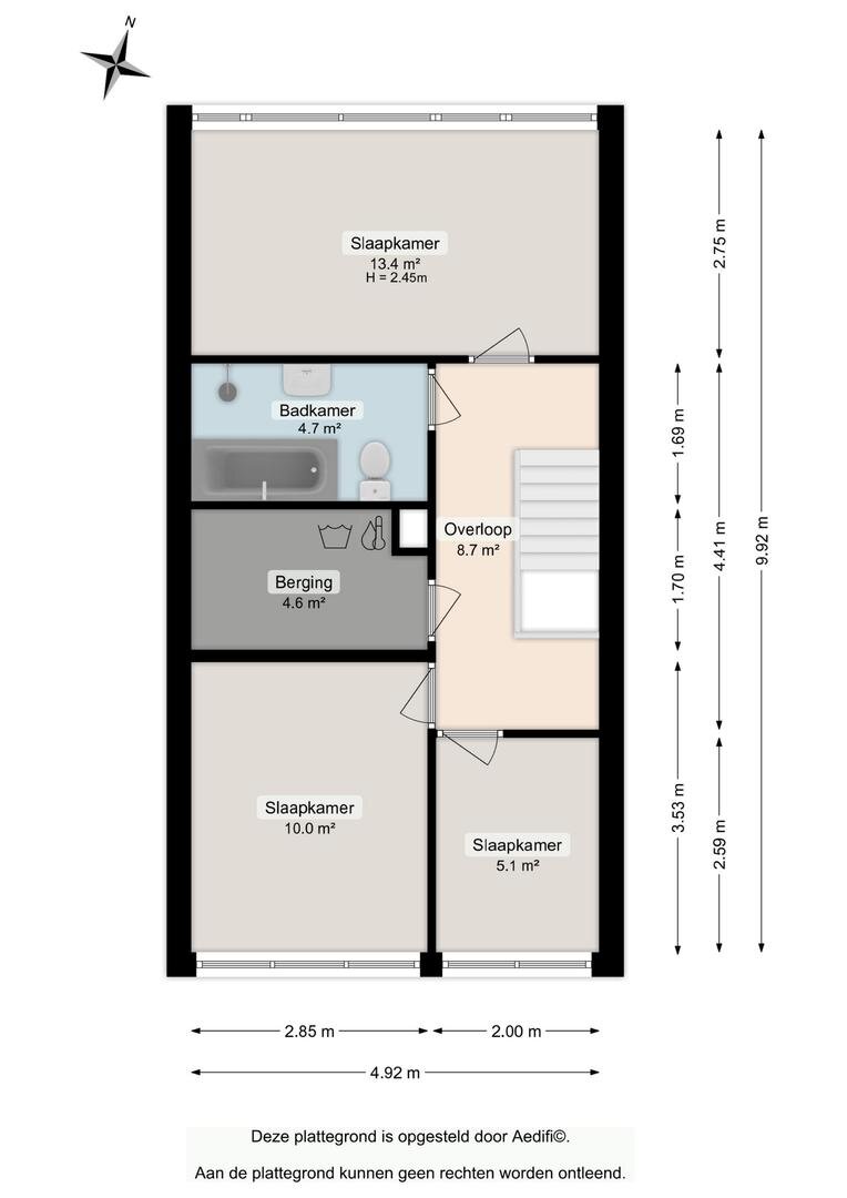 Overloop, 3 slaapkamers (5, 10 en 14m²), ruime badkamer voorzien van tweede toilet, ligbad, douche en wastafel, berging annex stookruimte met de wasmachine aansluiting, cv-ketel en bergruimte.