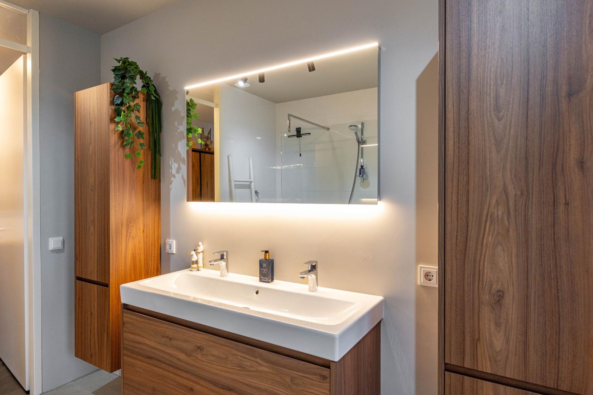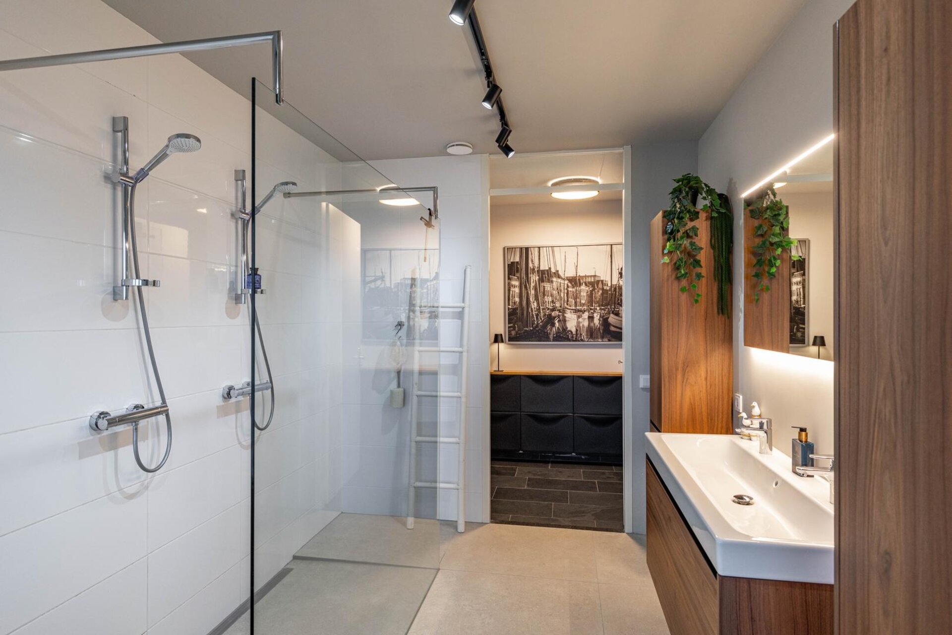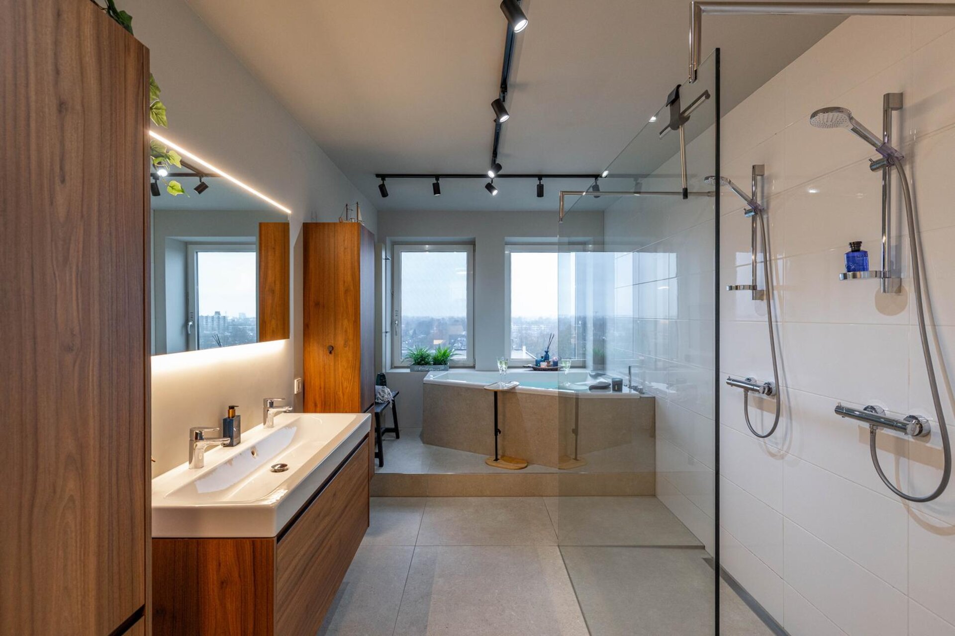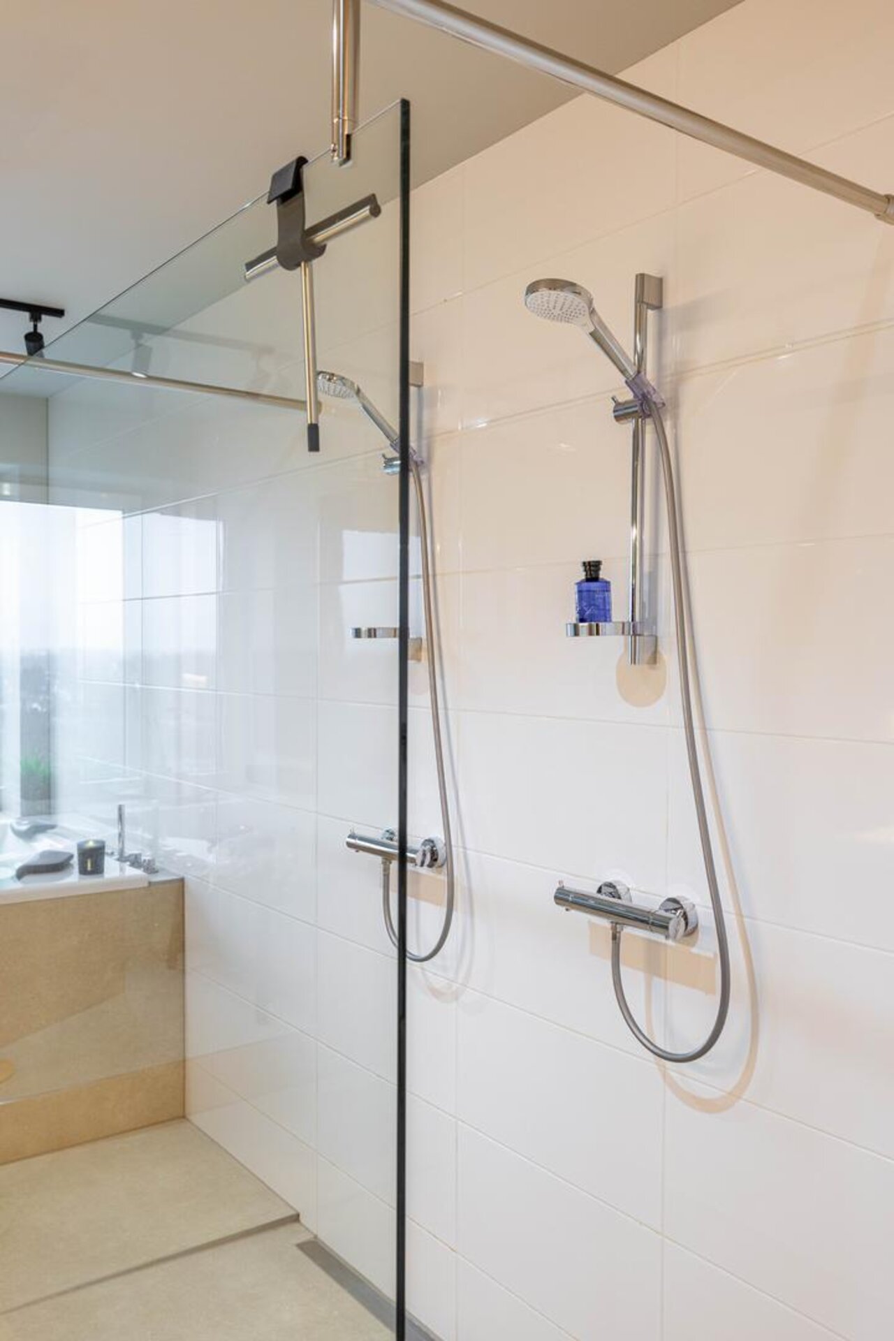 Luxe badkamer 11m² (2024) met inloopdouche (dubbele douchevoorziening), whirlpool en dubbel wastafelmeubel.