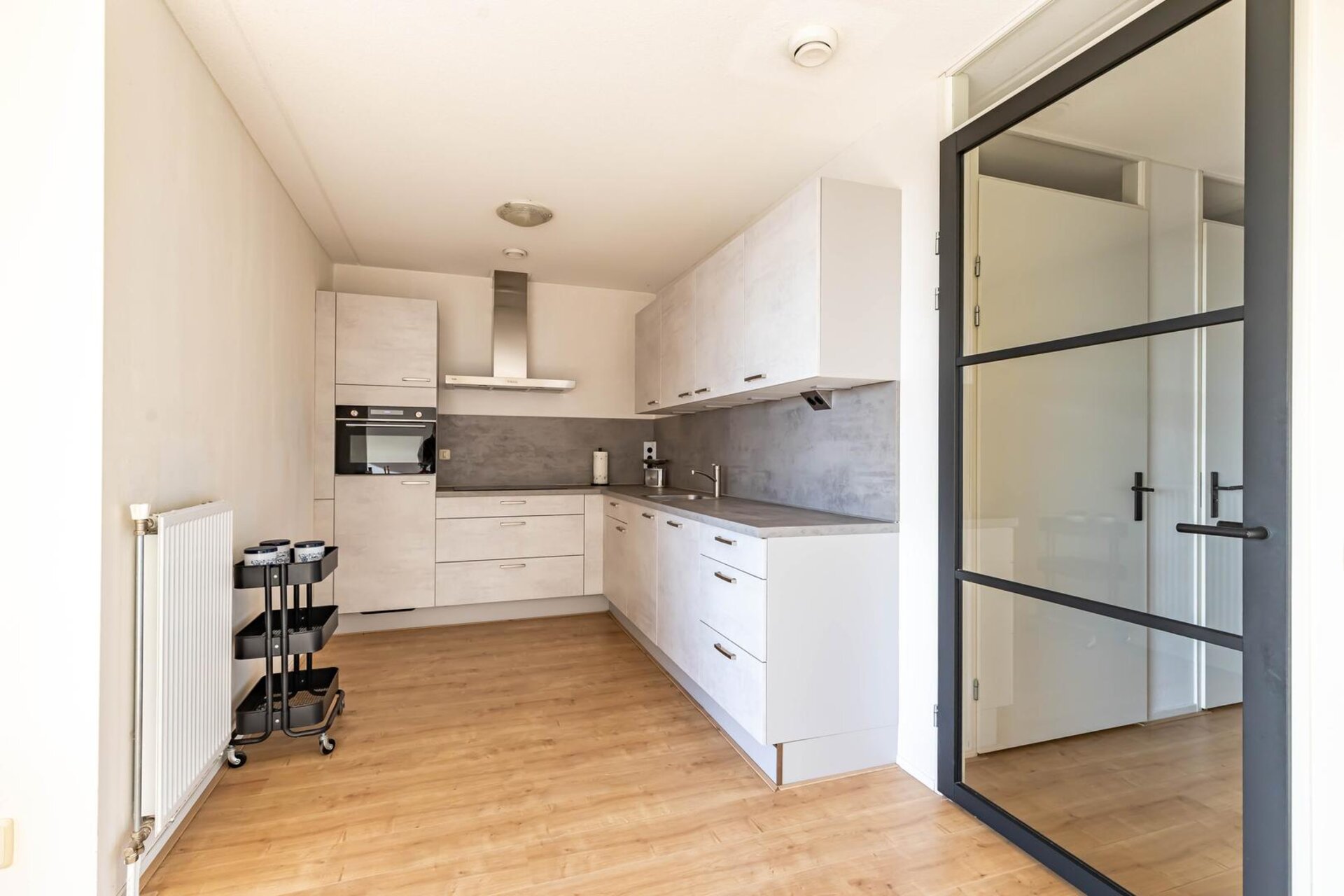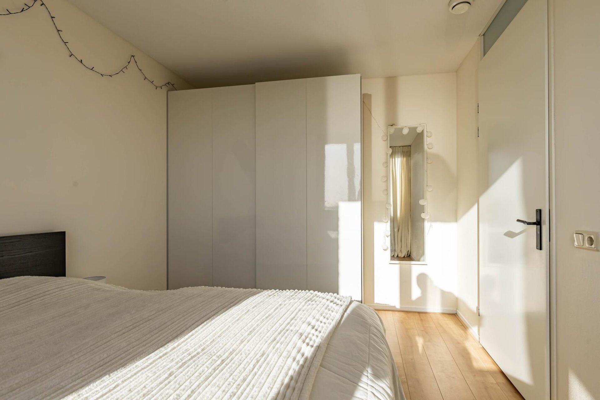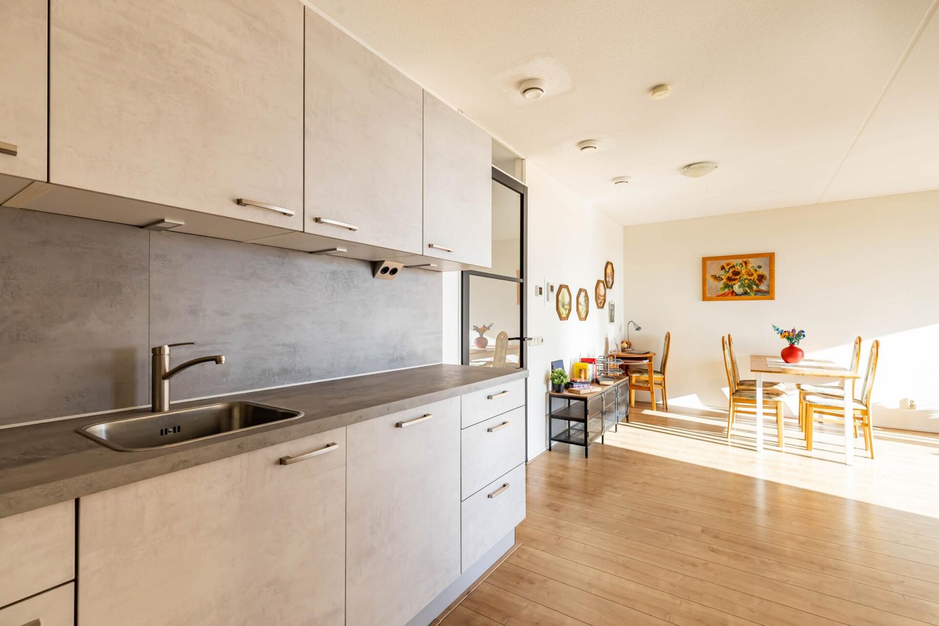 Galerij, entree, hal, toiletruimte (hangend closet), berging met wasmachineaansluiting, cv- en wtw-opstelling, heerlijk lichte woonkamer 37m² met open keuken en toegang tot het balkon. De open keuken is voorzien van een nieuwe, in lichte kleurstelling en complete keukeninrichting (2025) o.a. voorzien van inductiekookplaat, afzuigkap, combi-oven, koelkast en vaatwasser. Het appartement heeft twee slaapkamers van 14 en 12 m². Verzorgde badkamer met inloopdouche en wastafel.