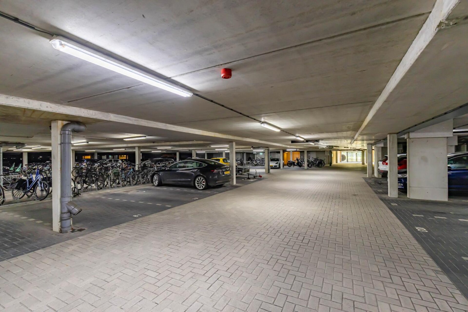 In de parkeerkelder bevindt zich een eigen parkeerplaats en naast de algemene ruimte voor fietsen is er een eigen inpandige berging aanwezig.