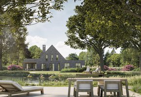 De ontwerpaanpak van Studio Piet Boon respecteert de lokale architectuur en is een perfecte mix van privacy en harmonie met de natuur. Gesitueerd op een royaal perceel van ruim 4000 m2 aan de rand van het charmante dorp Leek, ademt het een ongekende grandeur uit.